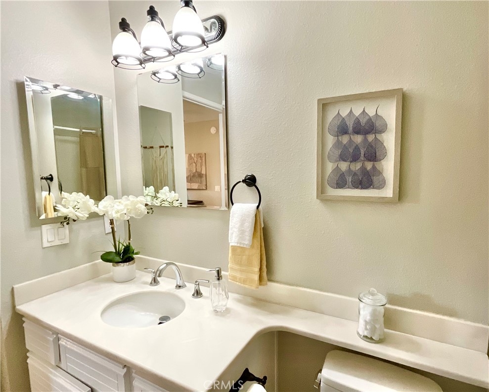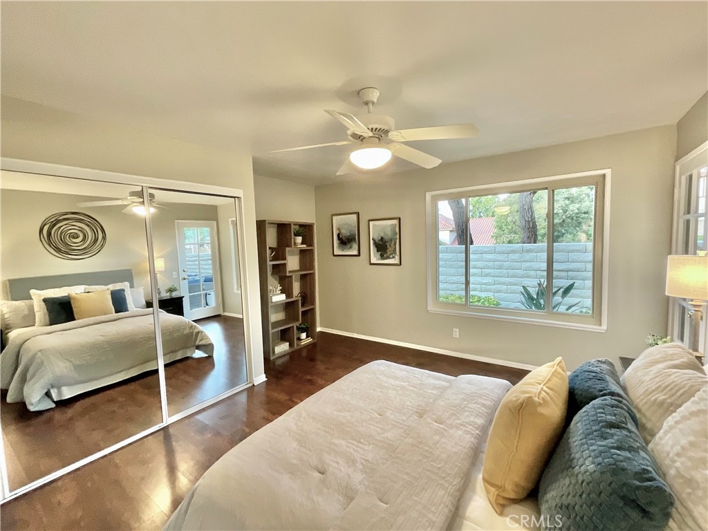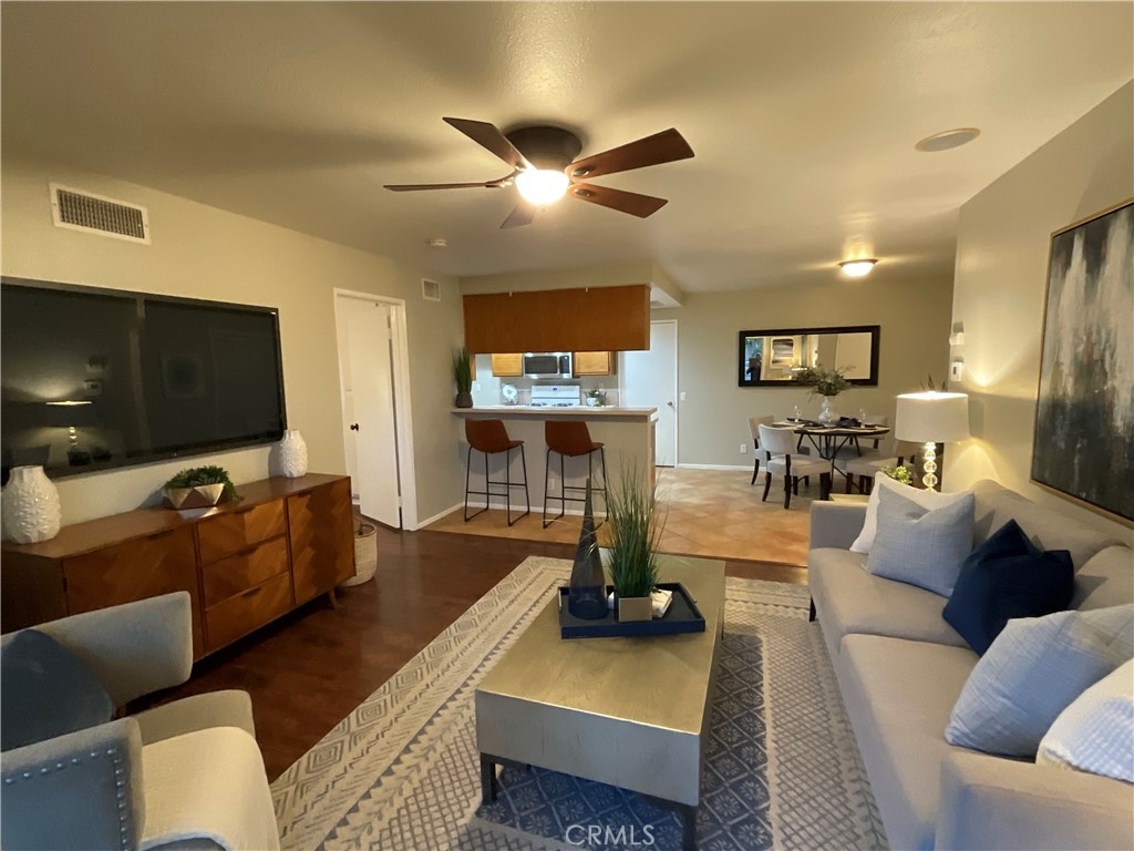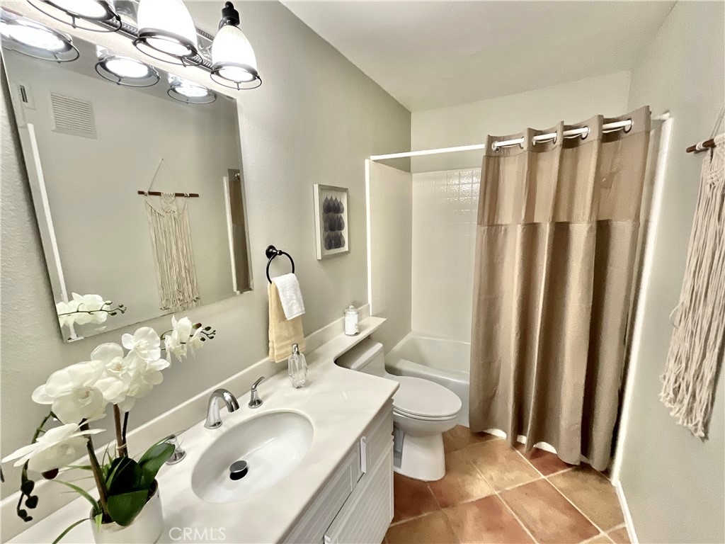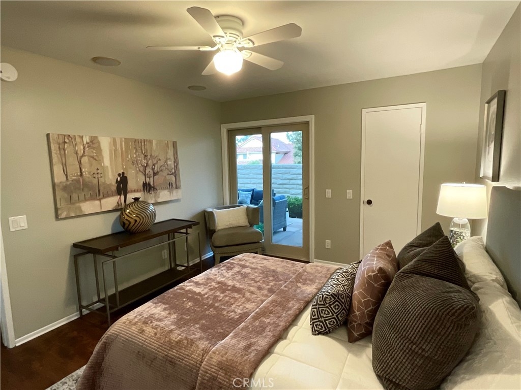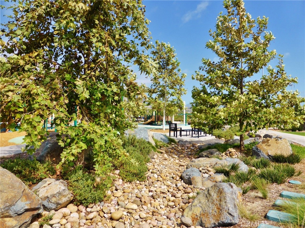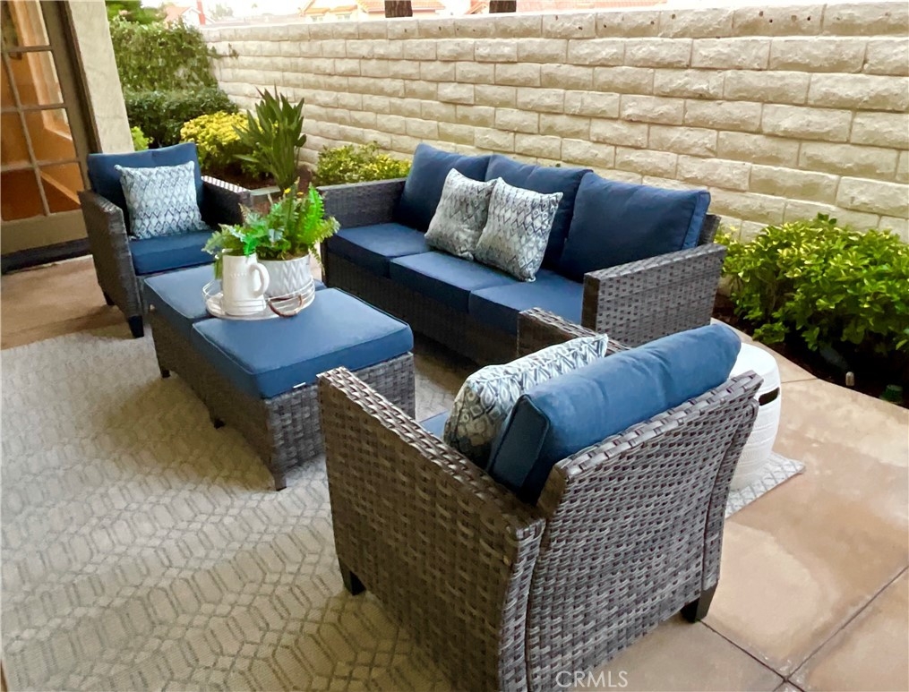Rare single story end unit on greenbelt! This unit has it’s own, private, fully enclosed yard featuring a relaxing above ground spa. The beautiful landscaping includes artificial turf, palm trees, plants & flowers, plus custom stone hardscape. This is a truly unique & private location. There are 2 bedrooms, 2 full baths, spacious living room and dining area. Both bedrooms and living room open out to a private patio area and yard. Kitchen has newer appliances, including a gas range, stainless steel sink, and breakfast bar. Upgrades include newer dual pane windows and sliders, new custom paint throughout, smooth ceilings, laminate and tile flooring, ceiling fans and recessed lights. There is a convenient inside laundry room and an attached single car garage, plus your own private driveway! The patio and spacious private backyard with bubbling spa offer a tranquil and private setting - just like a single family home. Located in Tierra Vista just steps from the community pool. This tract is located close to shopping, toll road, stables, and the Irvine Spectrum.