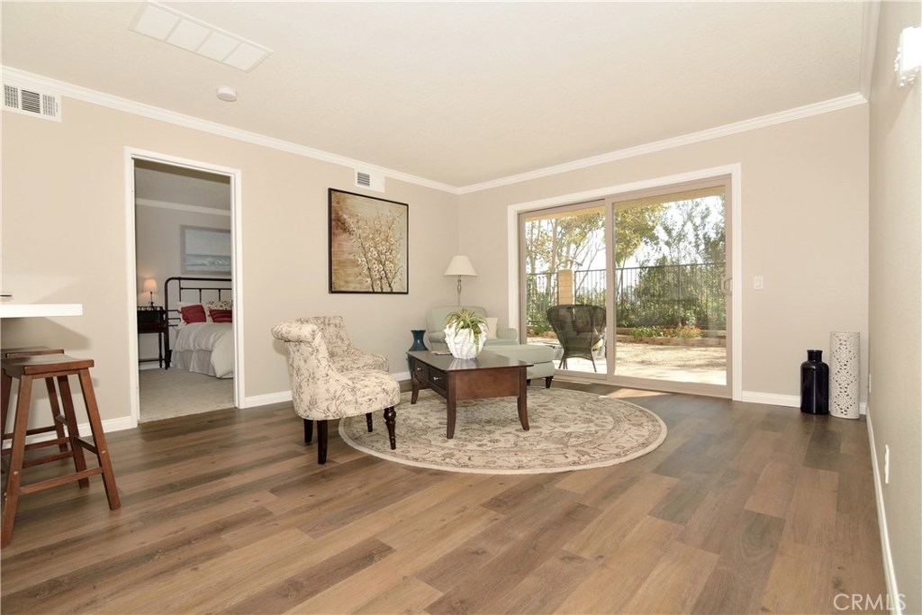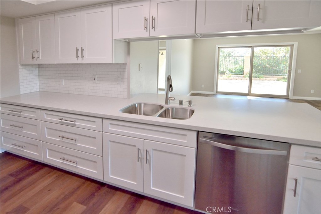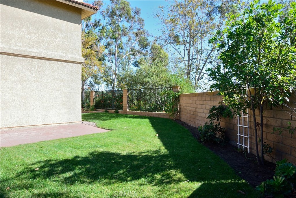 Lower end unit with a premium, super private location with a HUGE YARD! Located in the very back corner of the Tierra Vista community, this property has privacy like no other. Brand new renovation! New kitchen with custom white cabinets, quartz counters, sensor LED lighting and new stainless steel appliances. Remodeled bathrooms with quartz counters. Scraped and textured ceiling with crown molding throughout. New vinyl double paned windows and sliders. Newer HVAC. Walk-in closet in Master. New premium vinyl "wood" flooring. New carpets in the bedrooms. Step out on the covered patio and enjoy the trees and open view! Private front entry next to "front yard" greenbelt. Garage with a driveway and direct access to the home. Inside laundry room. Close walk to the community pool and spa. Short drive to Irvine business district and Irvine Spectrum with entertainment, dining and shopping. Lake Forest amenities: Parks, New sport park facility, nature trails and biking. Move-in ready!