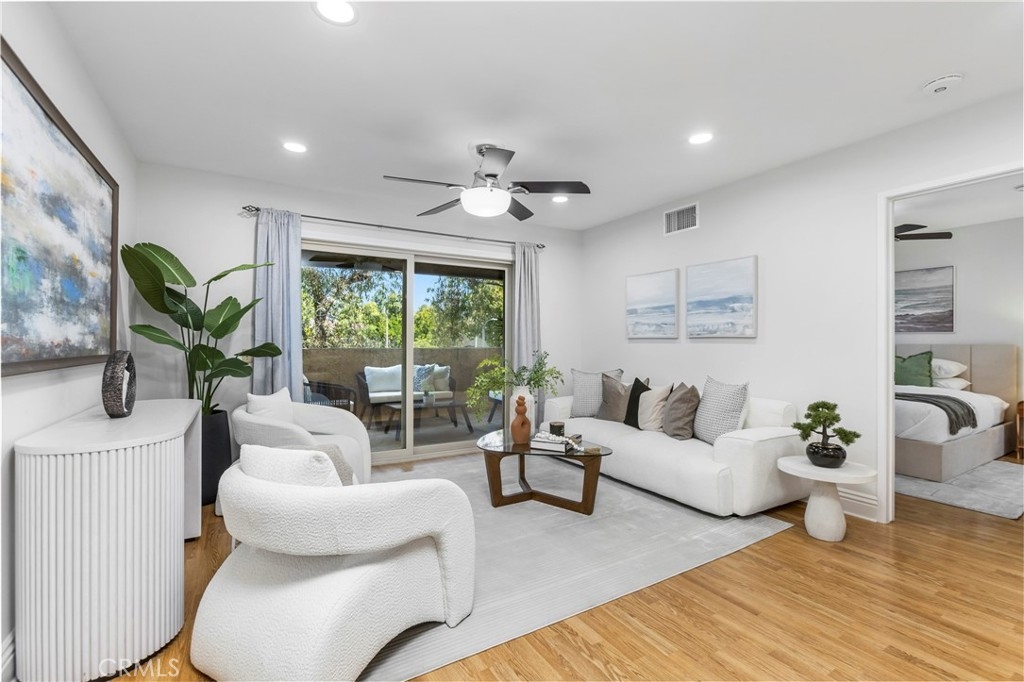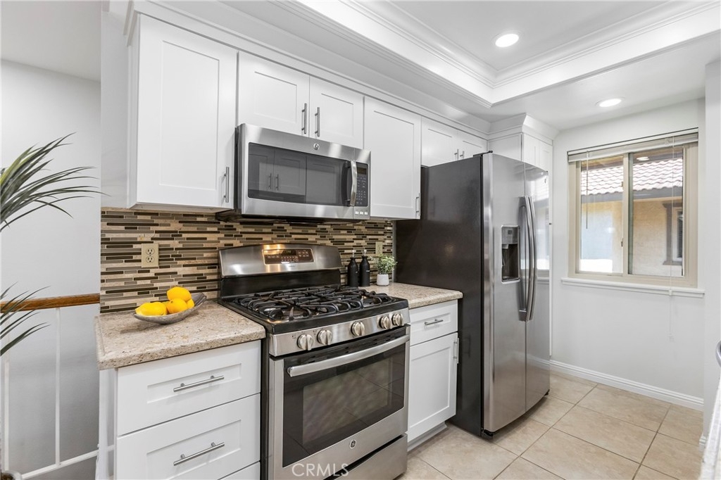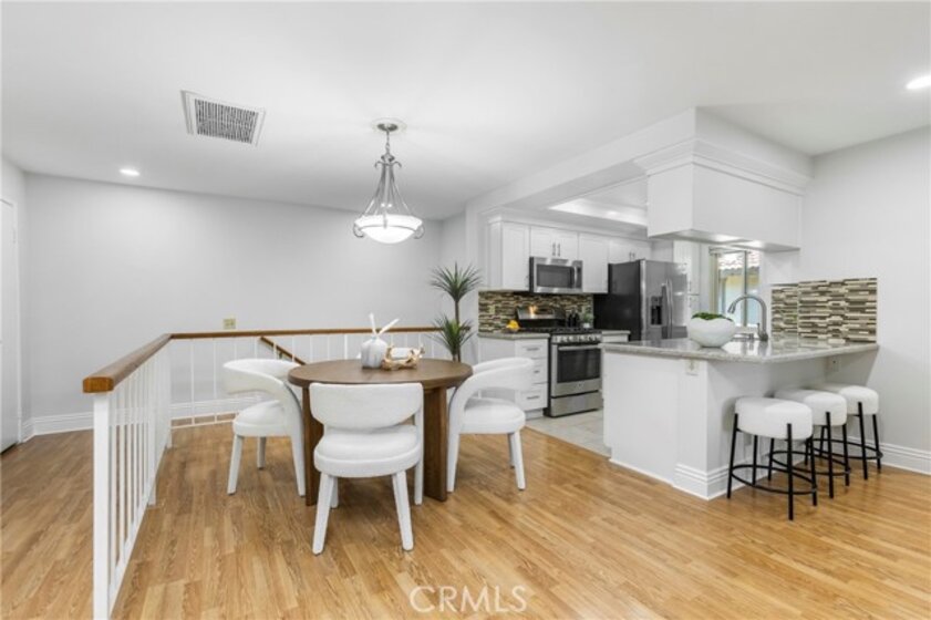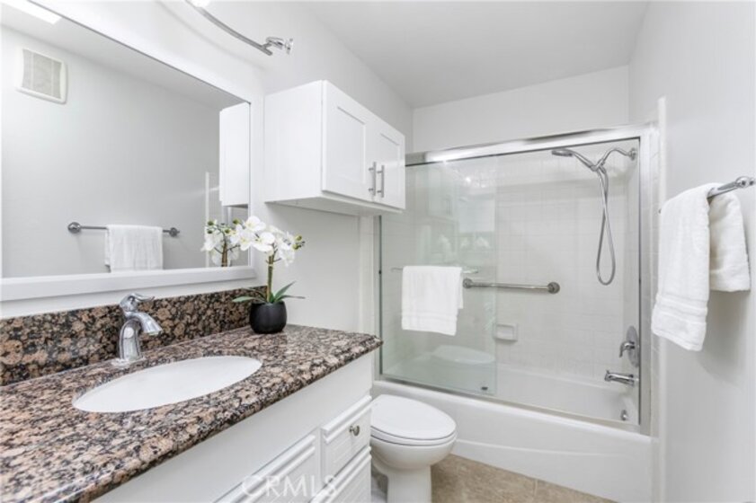 Tucked into a well-kept community, this renovated upper-level end-unit condo offers a rare blend of privacy, convenience, and modern design. The expansive open layout flows seamlessly through the kitchen, dining, and living areas, drawing your eye out to a full-length private balcony, creating a space that feels cohesive, connected, and easy to live in. The kitchen anchors the home with a clean, modern presence with Custom White Cabinetry with soft-close drawers, Quartz counters, and a suite of Stainless appliances that include Dishwasher, Refrigerator, Built-in Microwave, and a 5-Burner Gas Range w/Griddle, all complemented by a Tray Ceiling w/Recessed Lighting & Crown Molding detail that adds a layer of refined sophistication. What sets this home apart is its DUAL PRIMARY layout—two private bedroom suites positioned for comfort and separation, each with its own en-suite bath and direct access to the balcony. One suite features a walk-in closet wi/built-in cabinetry, while the other offers a wall of mirrored wardrobes plus a secondary closet, providing exceptional storage. The layout delivers flexibility without compromise. Both updated baths have granite counters and clean finishes that mirror the tone of the home. Behind the scenes, the major systems have been thoughtfully addressed - including updated HVAC (Sep '20), Dual-Pane Windows & Sliding Doors (Aug '21), Water Heater Feb '22), and PEX Re-piping with the downstairs neighbor (Aug '22) - removing much of the typical uncertainty and allowing you to enjoy the space from day one. Interior details include laminate wood flooring, 4" baseboards, recessed lighting w/dimmers, fresh paint, and energy efficient Ecobee smart thermostat (w/App control). A spacious main level laundry room w/an abundance of storage cabinets ensures everyday ease, while the ATTACHED 1-car DIRECT ACCESS Garage w/Built-in Storage adds a layer of everyday safety & convenience. Steps to 2 Community Pools/Spas and a short stroll to walking trails, Peachwood Park & Tamarisk Sports Park w/Playground, Basketball Court, Baseball Field, Walking Path, & Picnic areas - spaces that extend the lifestyle beyond the front door. With close proximity to Lake Forest Sports Park & Recreation Center, Irvine Spectrum & Irvine Great Park, the location supports both activity and ease. HOA fee includes trash. With the major improvements already completed, this is a rare opportunity to step into a home that’s been thoughtfully updated and ready to enjoy.