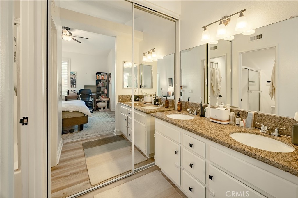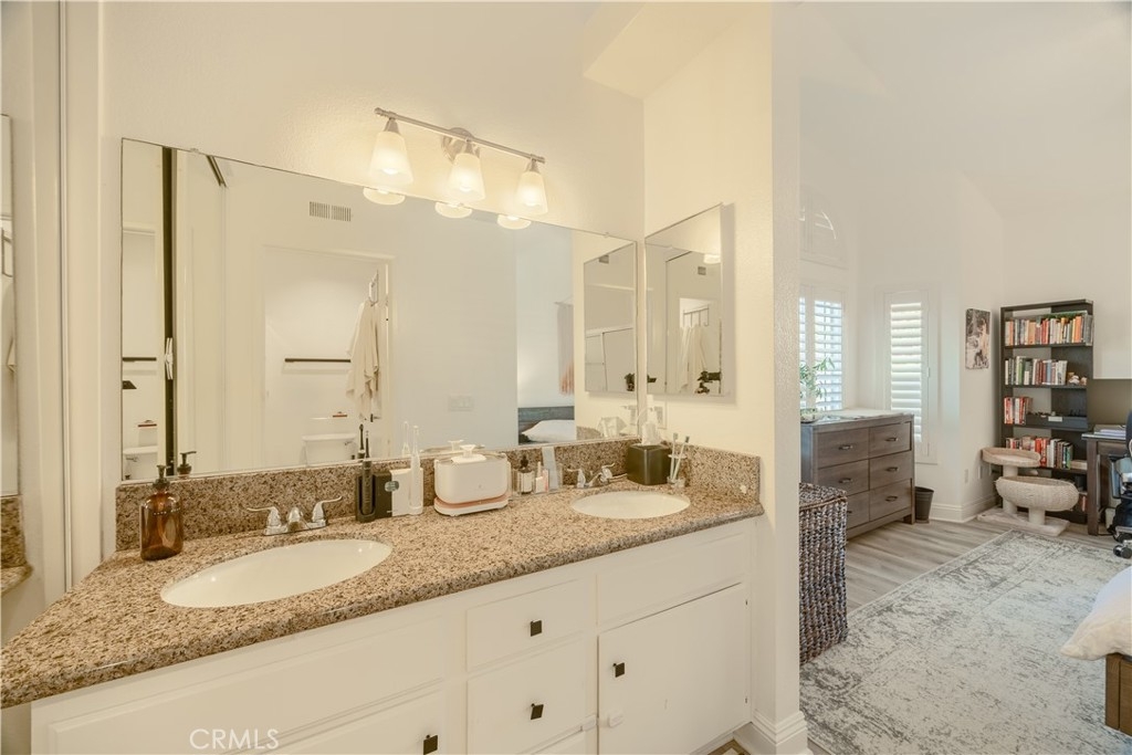 FINANCING AVAILABLE! Welcome to Tuscany Condominiums in Foothill Ranch. Step into this light filled two bedroom, two bath residence designed for both relaxation and stylish entertaining. The home showcases brand-new luxury vinyl plank flooring, fresh plantation shutters, and a new air conditioning system paired with an ecobee smart thermostat for modern comfort. The sleek kitchen is a true highlight, featuring stainless steel appliances, granite countertops, and updated receptacles, all thoughtfully consistent with the home’s contemporary upgrades. The spacious primary bedroom is your personal sanctuary, complete with an en-suite bathroom featuring a double vanity and luxurious finishes. An additional full bathroom ensures comfort for you and your guests. High ceilings and an open floor plan create an airy, expansive feel throughout, while the neutral color palette serves as a canvas for your personal style. Parking is abundant with an enclosed Garage directly below and an additional two spaces. Embrace the California indoor-outdoor lifestyle with large windows that flood the home with natural light, creating a bright and uplifting atmosphere. Association amenities include, EV Charging stations, Pools, Spas, Putting Green, Tennis Courts and more! Located in the desirable Foothill Ranch area, this home offers the perfect balance of suburban tranquility and urban convenience. Your journey to an inspired lifestyle begins here! Don't miss this opportunity to make this exceptional space your own!