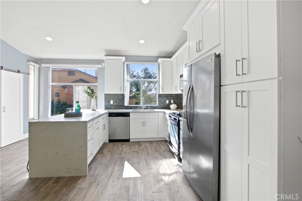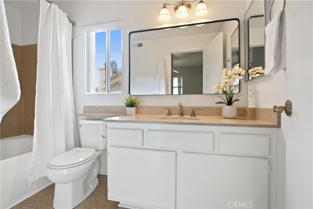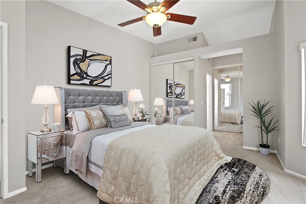 Step inside to discover an inviting living area featuring an open floor plan, vaulted ceilings, and an abundance of natural light. The remodeled kitchen is a chef's dream, with updated cabinets, quartz countertops, stainless steel appliances, and a convenient breakfast bar. The interior has been updated with new paint, new carpet, and luxurious wood plank porcelain tile in the living area, creating a modern and stylish ambiance. This 2-bedroom property boasts not just one, but two primary suites, offering flexibility and privacy. With 1048 square feet of living space, this unit stands out as there are no units above or below, and only one shared wall, providing a sense of tranquility and privacy. Outside, the large private patio is perfect for enjoying the beautiful California weather complete with a dwarf lime tree. There's even a private full-size washer and dryer closet for added convenience. Topping it off is a 1-car detached enclosed carport located under the unit, along with additional open parking for your convenience. The Tuscany community offers an array of amenities, including pools, spas, sports courts, gym, playground, and clubhouse, all within a gated environment for added security and peace of mind. Conveniently located near shopping, restaurants, and highways, this home offers easy access to everything you need while still providing a serene and private retreat. Don't miss the opportunity to make this exceptional property your own.