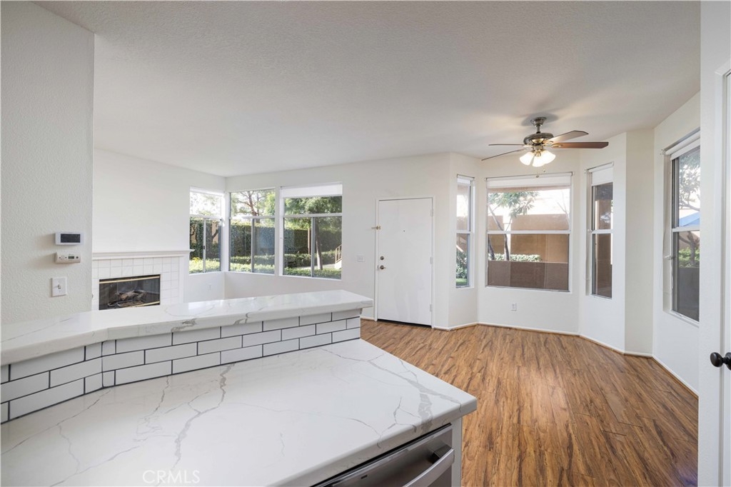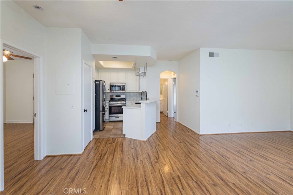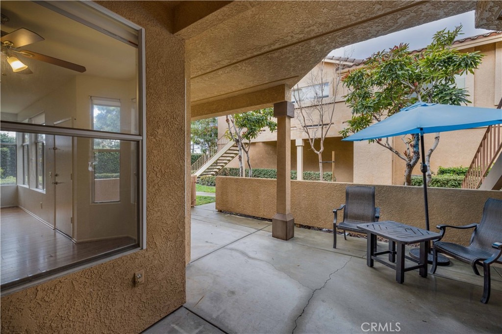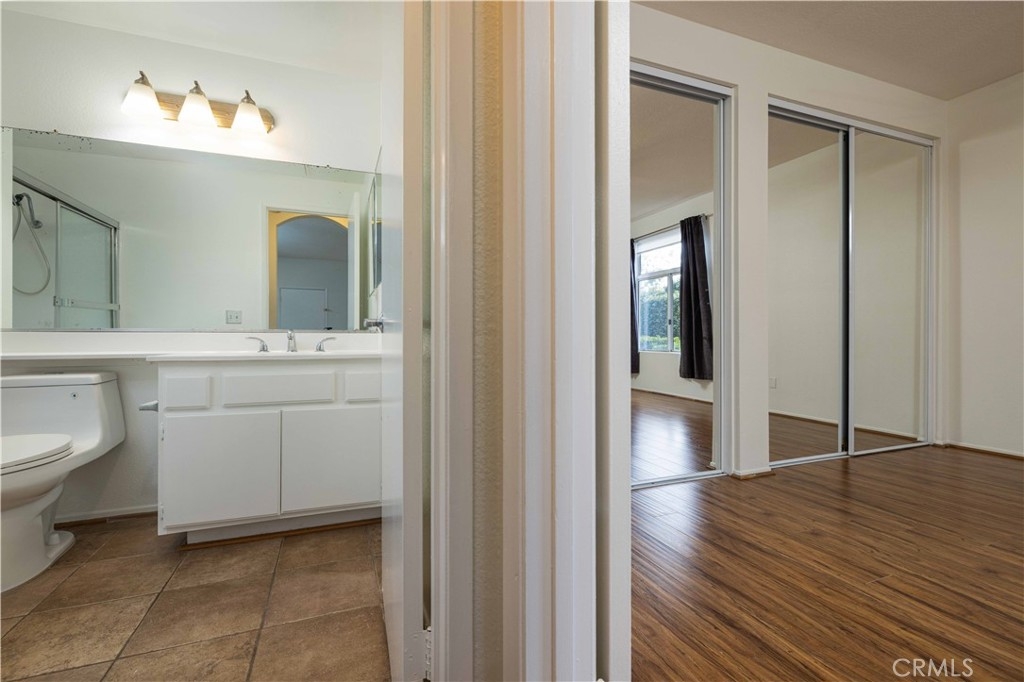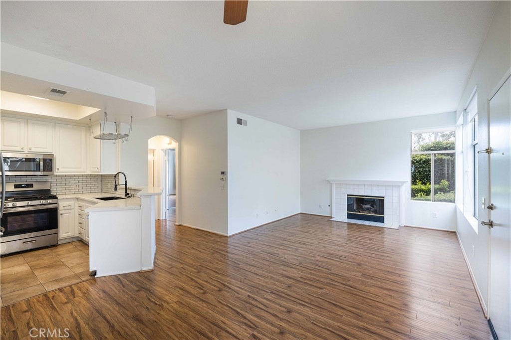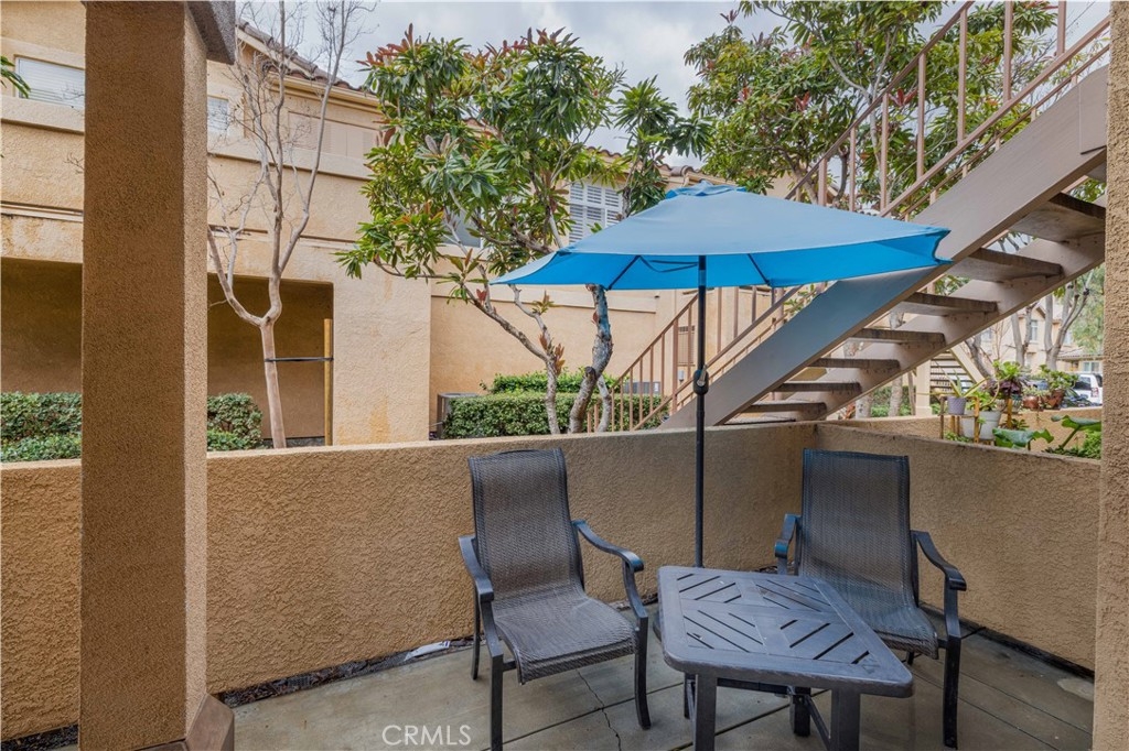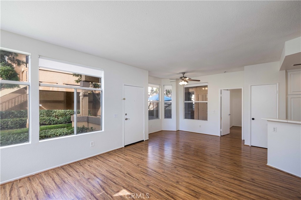 Welcome home to this beautiful condo nestled in an amazing community of Lake Forest! Enjoy this two bedroom, two bath home with an open flowing floor plan. The curb appeal is inviting with a beautiful front walkway leading to your personal front courtyard patio. As you enter, find the sizable living room and spacious dining area that are perfect for hosting family gatherings or entertaining friends. These rooms boast wood-like flooring, which gives this living space the perfect ambiance for your new home. The updated kitchen features newer dishwasher, gas range, microwave and refrigerator, along with custom cabinetry and countertops. The master bedroom has new paint, remodeled walk in closet and upgraded bathroom, complete with a new vanity, shower and custom sliding wood door. The secondary bedroom has newer glass closet doors and is located next to the guest bathroom. Other features include new paint throughout, updated kitchen lighting, new water heater and detached garage. Come explore everything this Lake Forest community has to offer including numerous parks, community pool, walking trails and tons of local shops and restaurants.