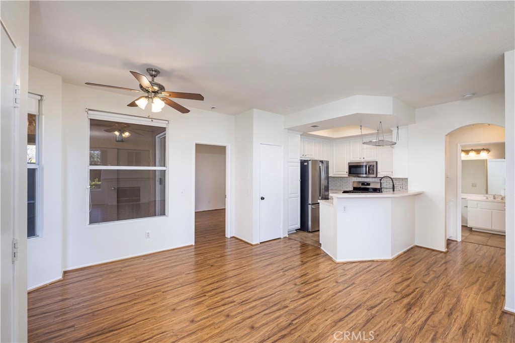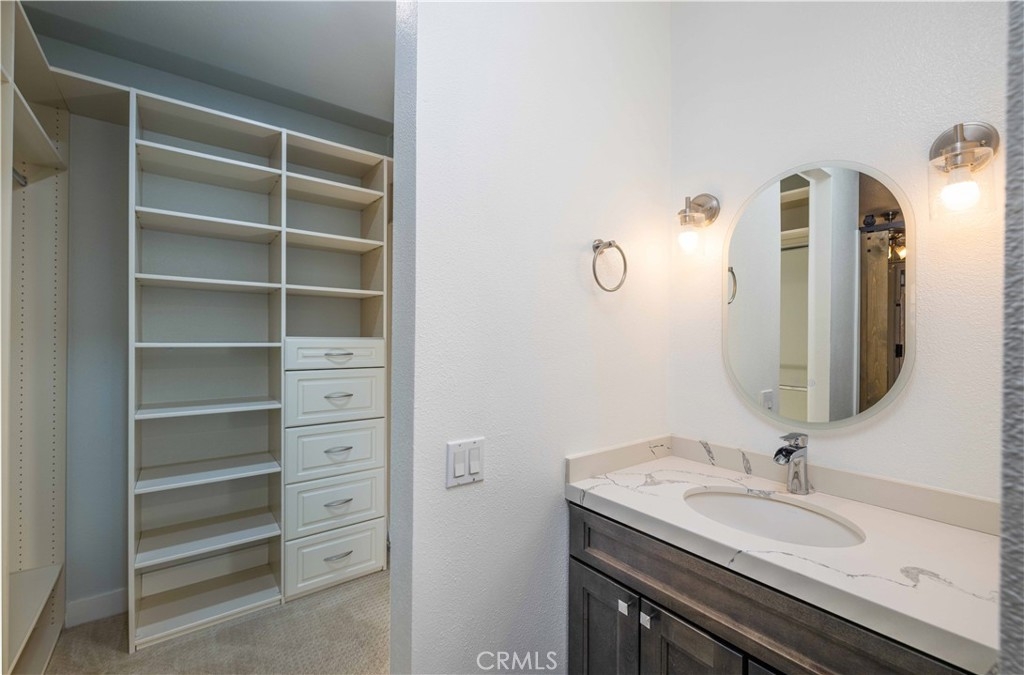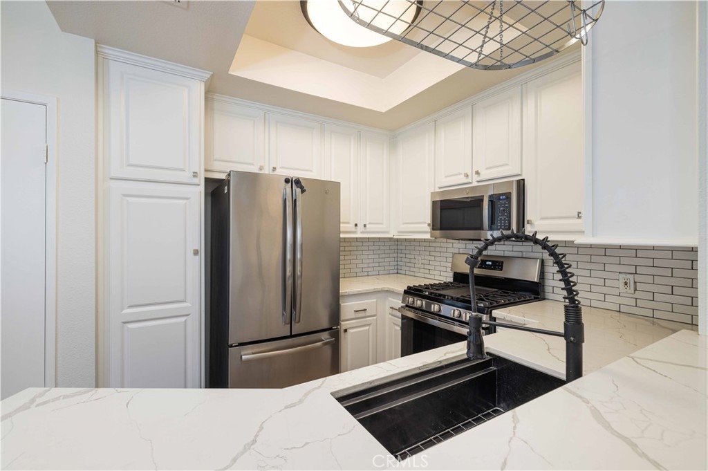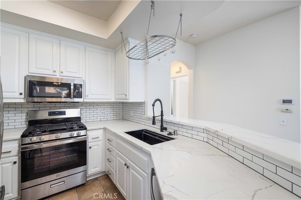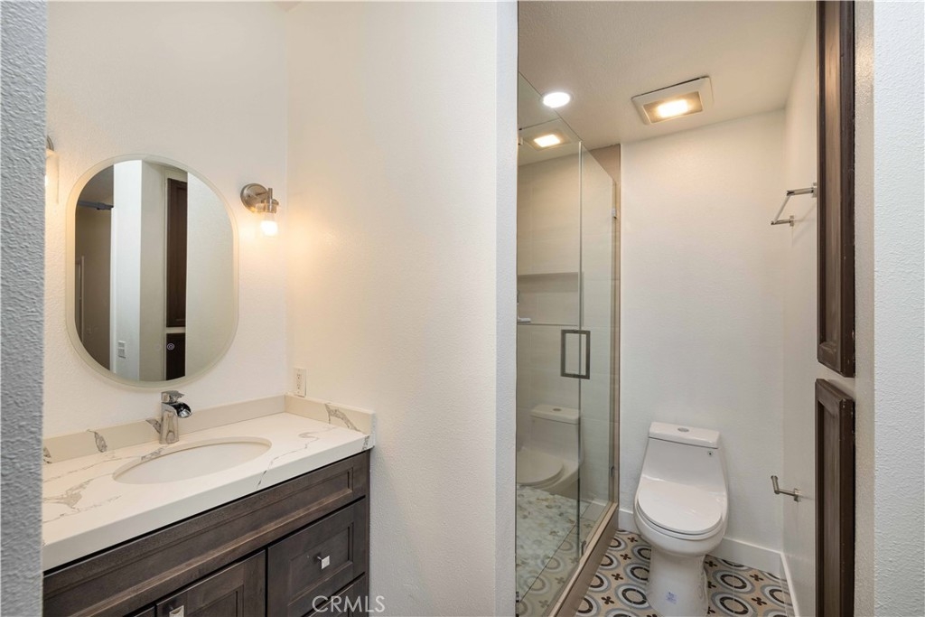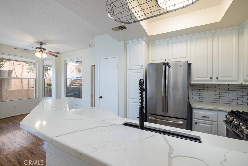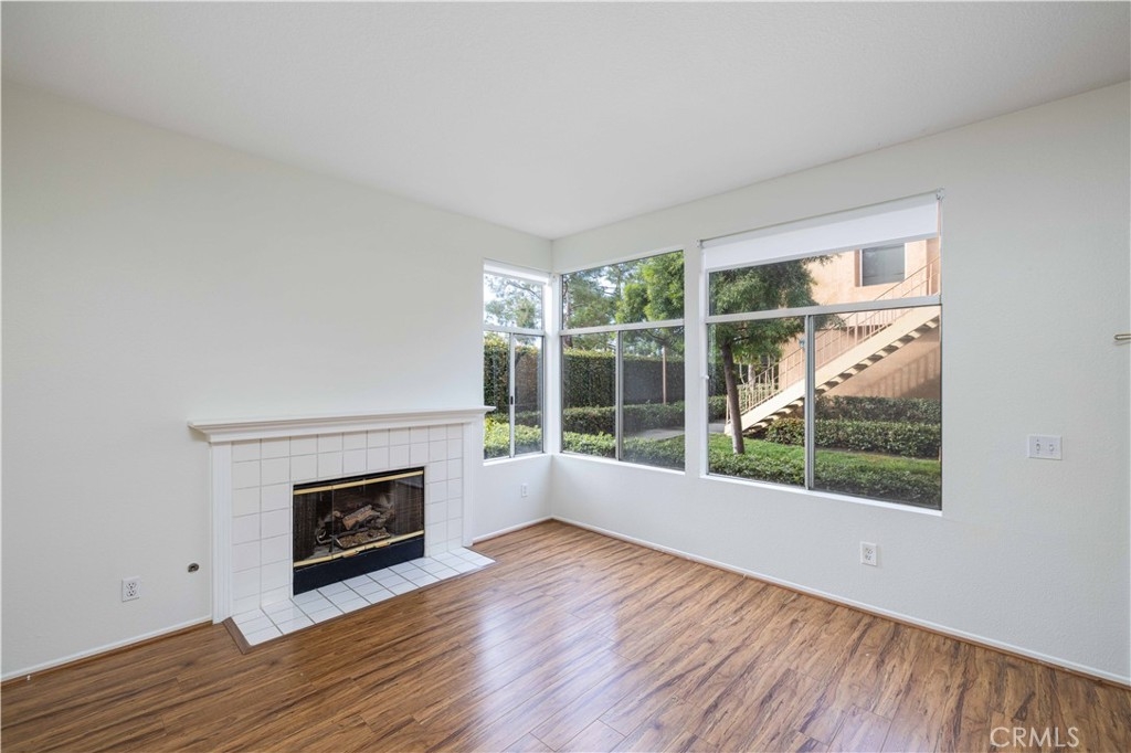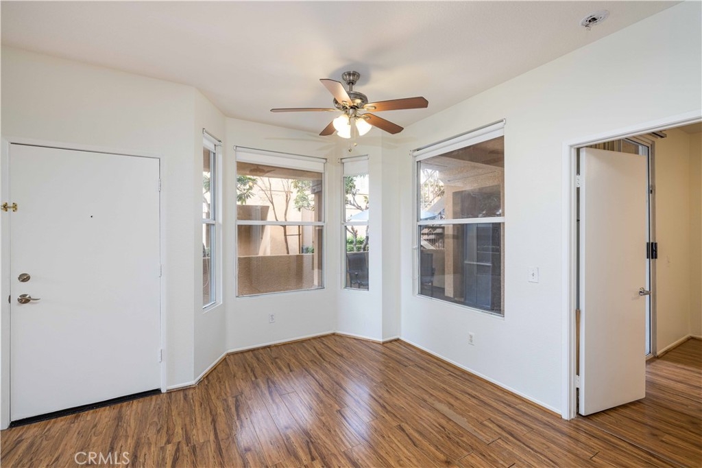 Welcome home to this beautiful condo nestled in an amazing community of Lake Forest! Enjoy this two bedroom, two bath home with an open flowing floor plan. The curb appeal is inviting with a beautiful front walkway leading to your personal front courtyard patio. As you enter, find the sizable living room and spacious dining area that are perfect for hosting family gatherings or entertaining friends. These rooms boast wood-like flooring, which gives this living space the perfect ambiance for your new home. The updated kitchen features newer dishwasher, gas range, microwave and refrigerator, along with custom cabinetry and countertops. The master bedroom has new paint, remodeled walk in closet and upgraded bathroom, complete with a new vanity, shower and custom sliding wood door. The secondary bedroom has newer glass closet doors and is located next to the guest bathroom. Other features include new paint throughout, updated kitchen lighting, new water heater and detached garage. Come explore everything this Lake Forest community has to offer including numerous parks, community pool, walking trails and tons of local shops and restaurants.