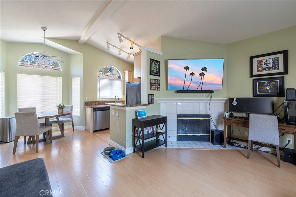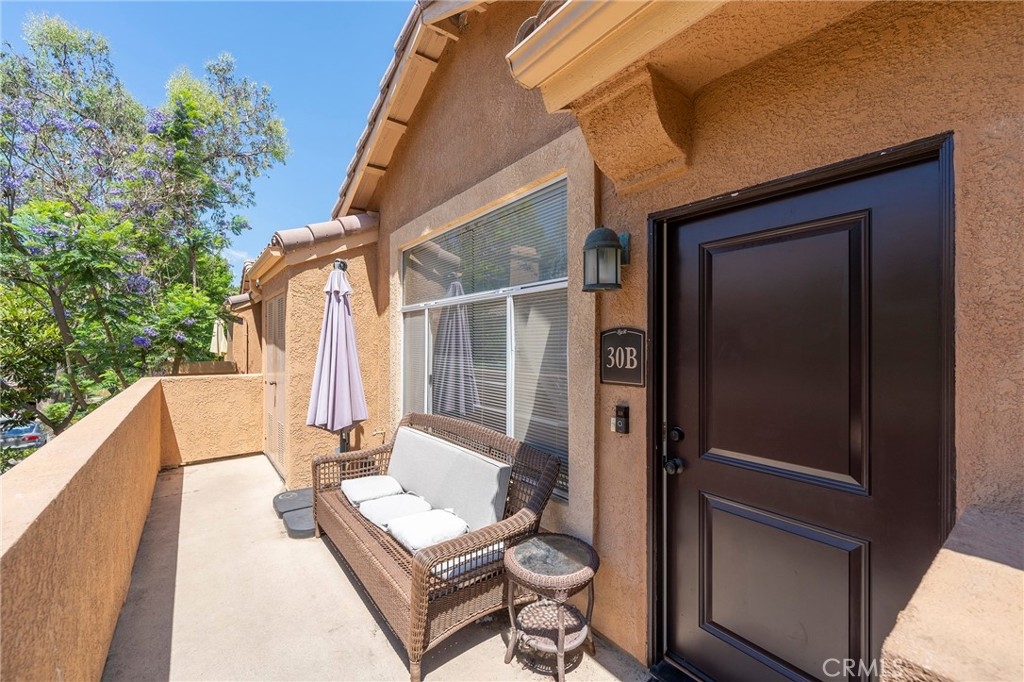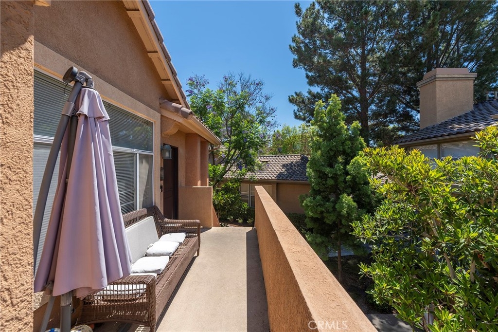 Introducing Tuscany in Foothill Ranch, an exquisite gated condo community nestled in the serene foothills of South Orange County. Embrace a lifestyle of luxury and convenience with an array of robust amenities both within and outside the community. Enjoy leisurely days at the community pool, stay active at the gym, and savor quality time at the inviting clubhouse. Step beyond the gates and discover a world of adventure with nearby biking, hiking, and shopping options. This captivating end unit awaits, basking in natural light through its plentiful windows. Relax and unwind on the south-facing front porch, while the vaulted ceilings create an airy and spacious ambiance. Revel in the allure of laminate flooring, and cozy up by the romantic fireplace on chilly evenings. The condo boasts two generous bedrooms, including a primary suite with a private bathroom, offering a retreat of your own. In addition to the primary bath, there is also a well-appointed hall bath for added convenience. What sets this unit apart is its unique positioning, with only one wall attached to a neighbor, ensuring enhanced privacy. As a bonus, enjoy the convenience of a garage for parking, located just below your unit. Seize this opportunity to call Tuscany in Foothill Ranch your home, where comfort, luxury, and scenic beauty harmoniously come together. Act now and make this dream condo yours!