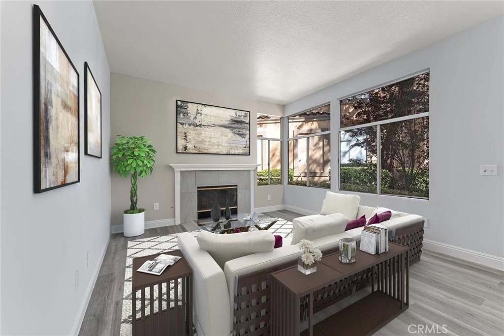 Enjoy resort-style community living in Tuscany at Foothill Ranch Condominiums. This spacious unit features HVAC, master suite, kitchen finished in white cabinets. Brand new floor, ceiling fans and paint! Open living room has fireplace and natural light. Unit is adjacent to pool house, gym & spa. Community features secure gated entry, designated 1 car garage w/ storage nook, putting green, tennis court & plenty of guest parking available. Located within proximity of the 241 freeway, local shopping, schools and parks.