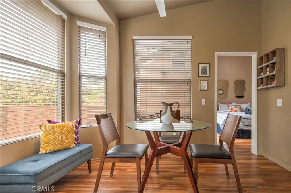 Welcome to this Lovingly Maintained, 2 bd, 2bth, Spacious home! Located in the Gated, Resort-Style Community of Tuscany in Foothill Ranch! A Light and Bright Corner home offering Single-Level Living with an Inviting and Functional Floor Plan! Enjoy the Great Room feeling with the Open Kitchen, Living and Dining areas with Vaulted Ceilings, Tons of Windows and Natural Light! Perfect for enjoying Family Time in front of the Beautiful Fireplace or for Entertaining! You will love the Privacy and Tree Top Views too! During their ownership the sellers have made numerous upgrades sure to be appreciated by any discerning buyer! Some of these include the Easy to Maintain and Beautiful Vinyl Plank Flooring Throughout (in 2017), A New HVAC with Hydronic Heating (in late 2020) and A New Water Heater (in 2014)! They have updated the Dishwasher, Stove and Microwave and modernized the Bathrooms with New Mirrors and Lighting, as well! The Spacious Master Suite features a Sliding Door to the Patio, a Large and Deep Closet, a Dual Vanity and room for a retreat area! The Secondary Bedroom easily rivals most master bedrooms in size and has a Wall-to-Wall Mirrored Closet and a Wonderfully Picturesque Window with a Built-in Bench! The conveniently located Patio Laundry closet also offers extra storage space! All this plus a detached Garage with room for more storage! Tuscany’s Resort Style Features include 2 Pools, both with Spas, A Fitness Center, Putting Green, Sport Courts and Much More. The Foothill Ranch HOA just remodeled their pool and clubhouse! If you have an electric car, never fear, there are EV Charging Stations available as well! You’ll also love the easy access to Great Shopping, Dining, Parks, Biking & Hiking, Schools and 241 Freeway! No Mello Roos and a Low Tax Rate make this home a Must Have!