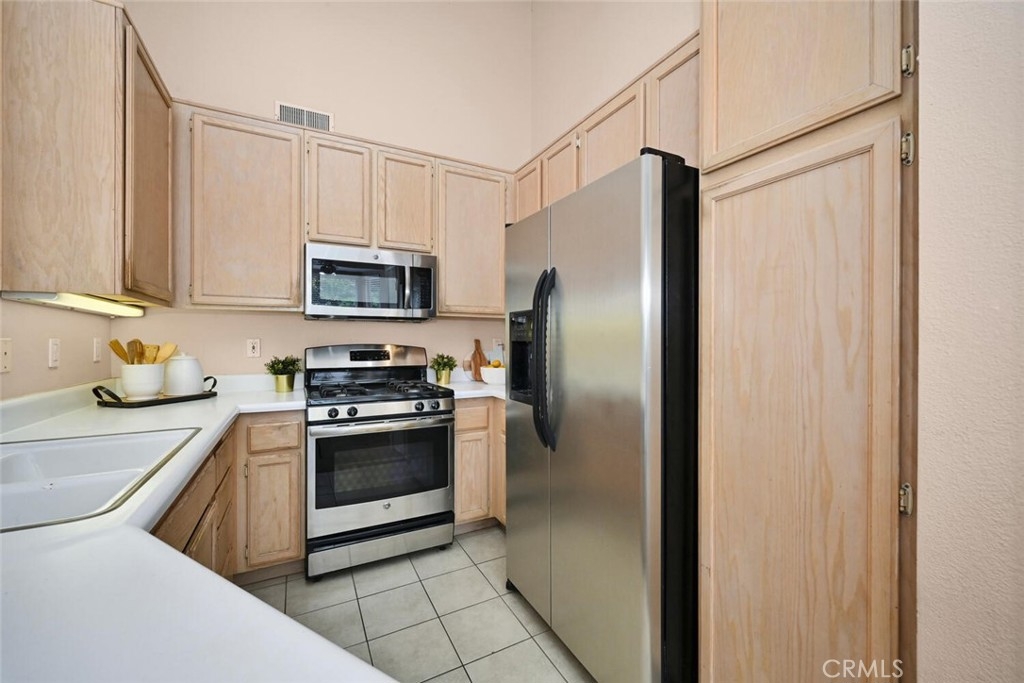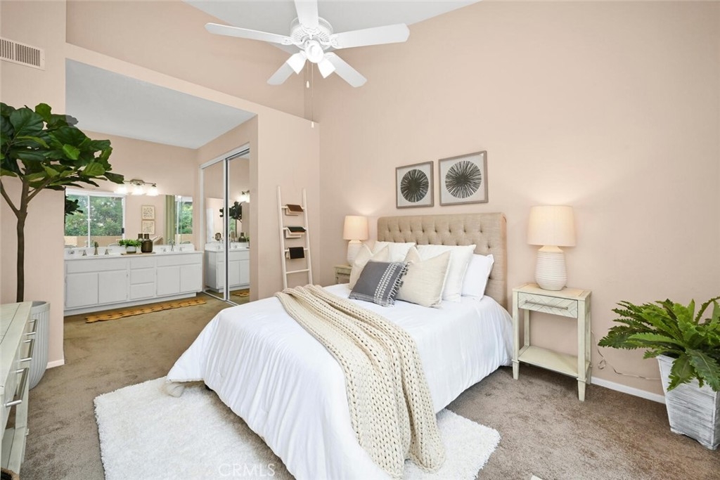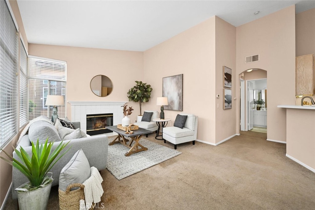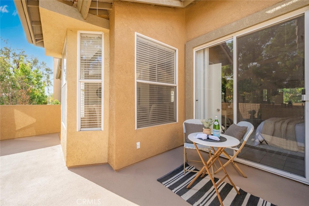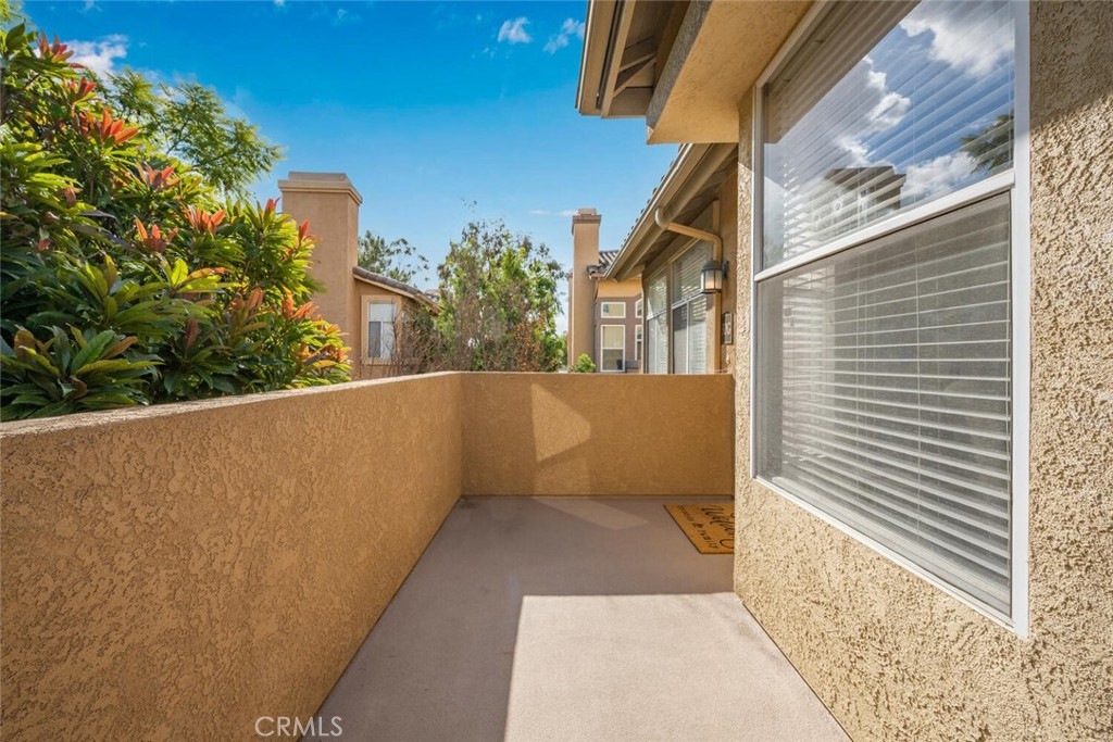 Opportunity knocks! This is your chance to own a resort-style, brightly lit 2-bedroom, 2 full bath in this upper corner unit with tons of privacy. Features a modern, open floor concept. Once you open the door, you are invited in by a cozy living room with a fireplace. Adjoining windows surround the eating corner and is a lovely spot to enjoy a meal. The extra high cathedral ceilings in the living room, kitchen and bedroom make this unit such a roomy and relaxing space with tree top views from every window. Large master bedroom has the extra space for a retreat-like space. It also features an oval tube, dual sinks and half-way walk-in closet with mirrored doors. The 2nd bedroom is large and also has mirrored closet doors. Plenty of sunlight comes in from the large windows of the cozy sitting area of the bedroom. Another bathroom also has a larger oval shaped bathtub. A useful linen cabinet is available. Just off the bedroom there is a private Laundry area on the porch. This unit has endless possibilities to become an estate-like setting with a little bit of upgrades of your style. Unit comes with one carport that has a small closet. Drop your gym membership as this community offers a fitness center, 2 pools with spas, tennis court & a putting green. Unbelievably this community also has electric car charging station & designated self-carwash area. Close to shopping, Whiting Ranch Wilderness Park and the toll road. Low tax rate & no Mello Roos. So many reasons to come & make this special place your home.