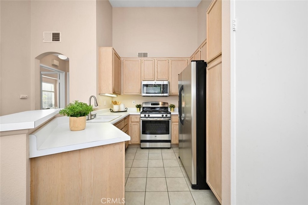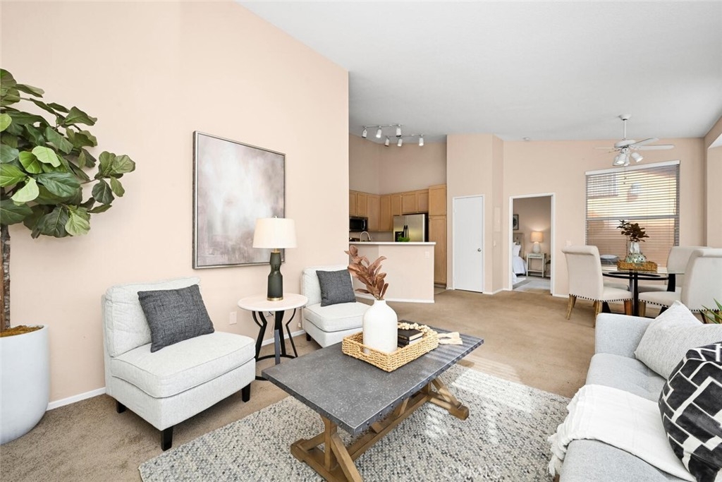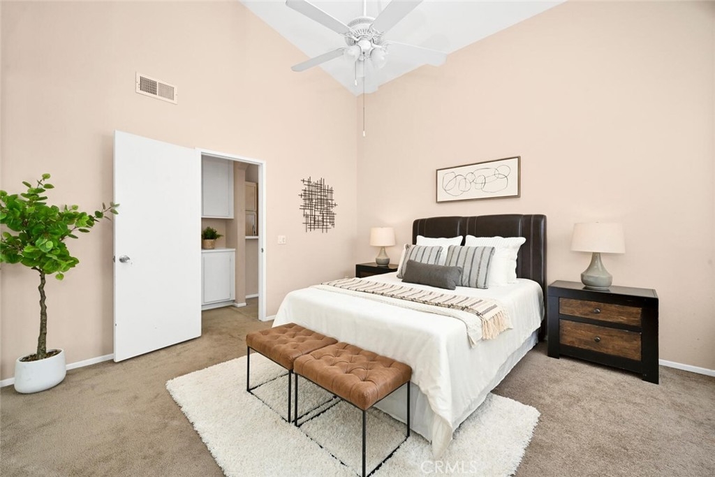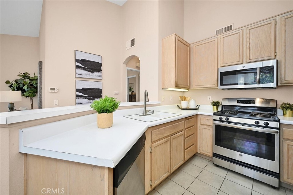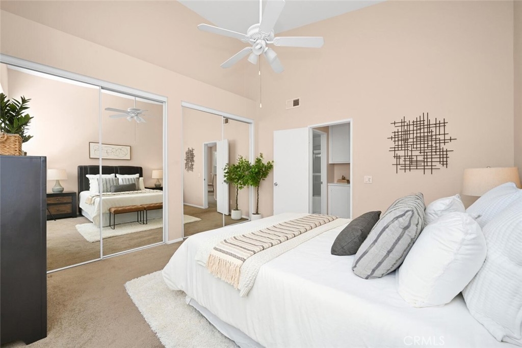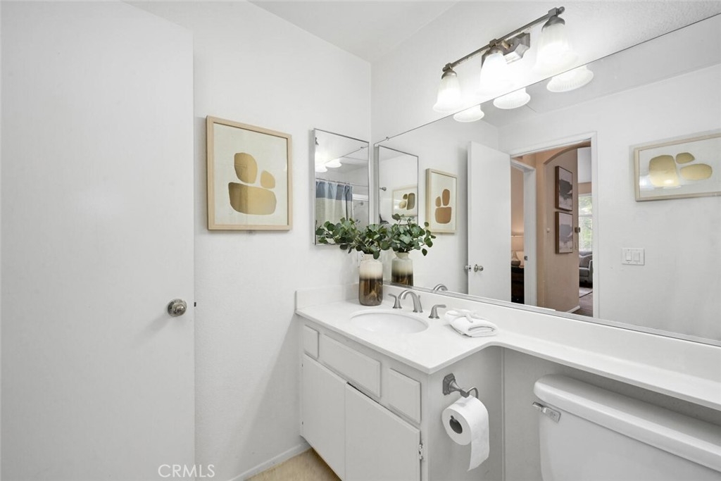 Opportunity knocks! This is your chance to own a resort-style, brightly lit 2-bedroom, 2 full bath in this upper corner unit with tons of privacy. Features a modern, open floor concept. Once you open the door, you are invited in by a cozy living room with a fireplace. Adjoining windows surround the eating corner and is a lovely spot to enjoy a meal. The extra high cathedral ceilings in the living room, kitchen and bedroom make this unit such a roomy and relaxing space with tree top views from every window. Large master bedroom has the extra space for a retreat-like space. It also features an oval tube, dual sinks and half-way walk-in closet with mirrored doors. The 2nd bedroom is large and also has mirrored closet doors. Plenty of sunlight comes in from the large windows of the cozy sitting area of the bedroom. Another bathroom also has a larger oval shaped bathtub. A useful linen cabinet is available. Just off the bedroom there is a private Laundry area on the porch. This unit has endless possibilities to become an estate-like setting with a little bit of upgrades of your style. Unit comes with one carport that has a small closet. Drop your gym membership as this community offers a fitness center, 2 pools with spas, tennis court & a putting green. Unbelievably this community also has electric car charging station & designated self-carwash area. Close to shopping, Whiting Ranch Wilderness Park and the toll road. Low tax rate & no Mello Roos. So many reasons to come & make this special place your home.
