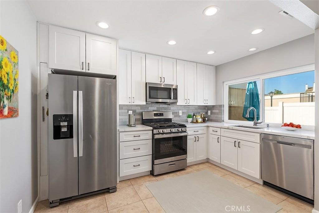 TURNKEY end unit with bountiful natural light, private patio and 2-car garage. Boasting upgrades throughout, this 3 bedroom open concept home will not last. From the quartz countertops to the stainless-steel appliances/sink, this kitchen is made for entertaining. Other notable features include recessed LED lighting along with plantation shutters that accent each bedroom. The remodeled bathrooms, which are very large, have been upgraded with marble countertops, new tub enclosures/sinks/faucets, vanity lighting and low-flow Kohler toilets. The private, enclosed patio area has undergone a complete landscape renovation with remote sprinkler access and outdoor lighting. In addition to countless upgrades in the home, the garage floor has been epoxied along with new fluorescent light fixtures. Convenient to street parking on Cherry Avenue apply with the association for an additional parking pass. The community pool & clubhouse are in very close proximity to the home. NO MELLO ROOS!!!