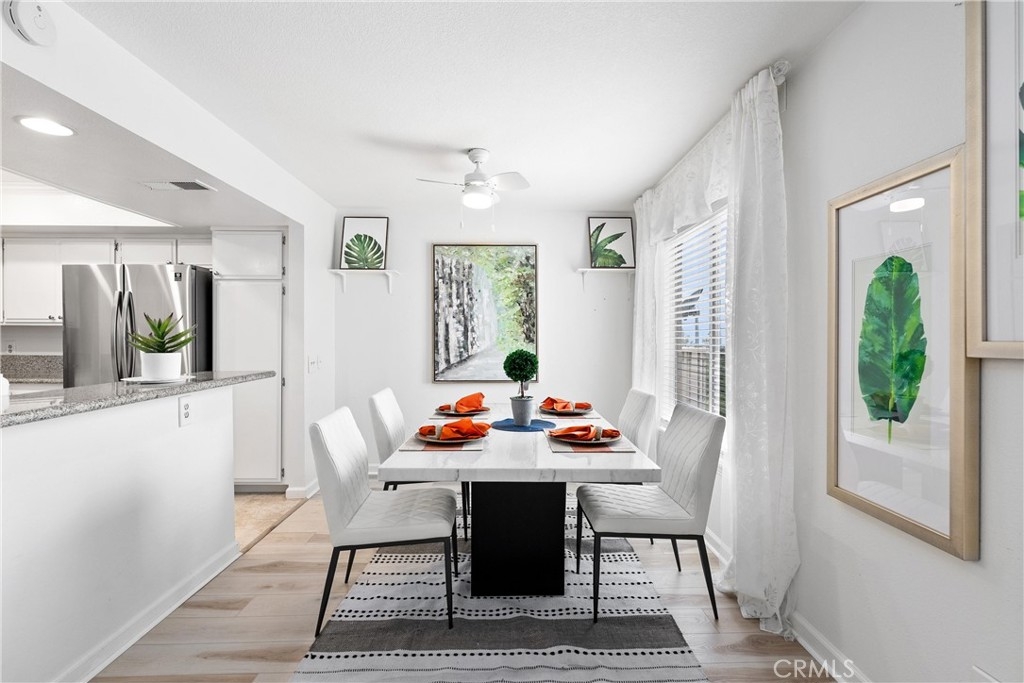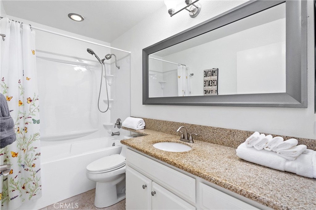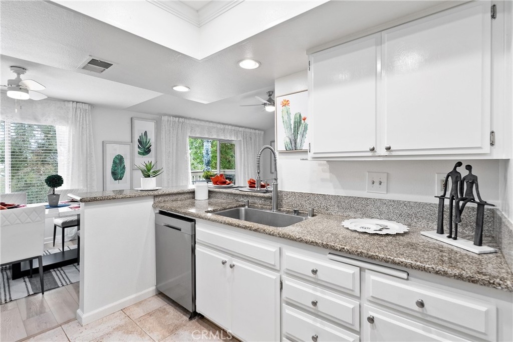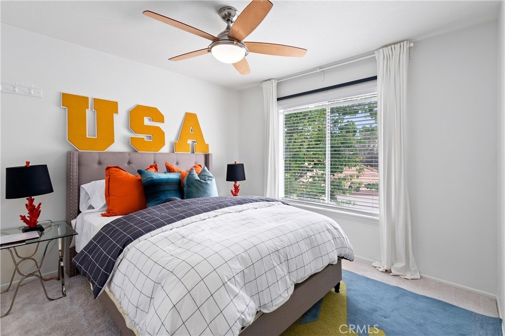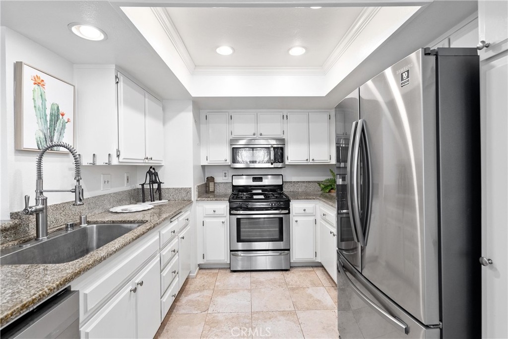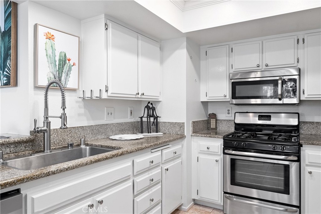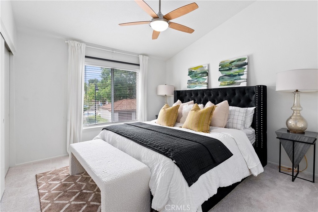 Welcome home to this fresh upper end unit, in the heart of Lake Forest, CA! It offers breathtaking panoramic mountain and city light views and is nestled within a gated community with fantastic amenities. This newly updated 2-bedroom, 2-bathroom home offers a comfortable and elegant living space. Step inside to discover an open floor plan, a spacious living room with fireplace under a vaulted ceiling, and a dining room with a view. Recent updates include whole house paint, flooring, carpet, kitchen cabinet hardware, stainless steel appliances, and a water filtering system for pure convenience. The whole property is repiped this year adding peace of mind. The bathrooms have been tastefully upgraded with new toilets and bidets, adding a touch of luxury to your daily routine. Enjoy the convenience of having a washer and dryer in the unit on the balcony, and air conditioning for those warm California days. The beautiful balcony outside of the living room with amazing views is perfect for relaxing after work or enjoying your morning coffee or weekend brunch. The community features a crisp pool and spa, guest parking, and a barbecue/picnic area perfect for entertaining friends and family. The unit comes with an assigned garage and two additional permitted parking spots. Located close to parks, schools, sports facilities, highways and the Whiting Ranch Wilderness Park, as well as shopping, dining, and entertainment at the Foothill Town Center, this home offers the true blend of comfort and convenience. Don't miss out on this incredible opportunity to live in a beautifully updated home with breathtaking views in a prime location!