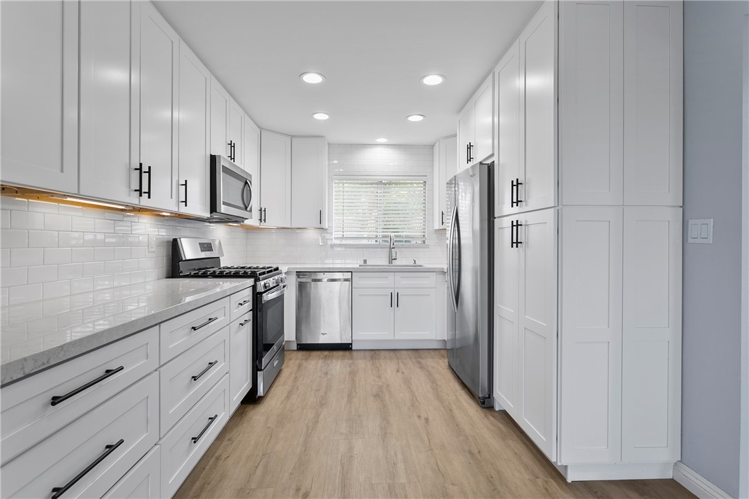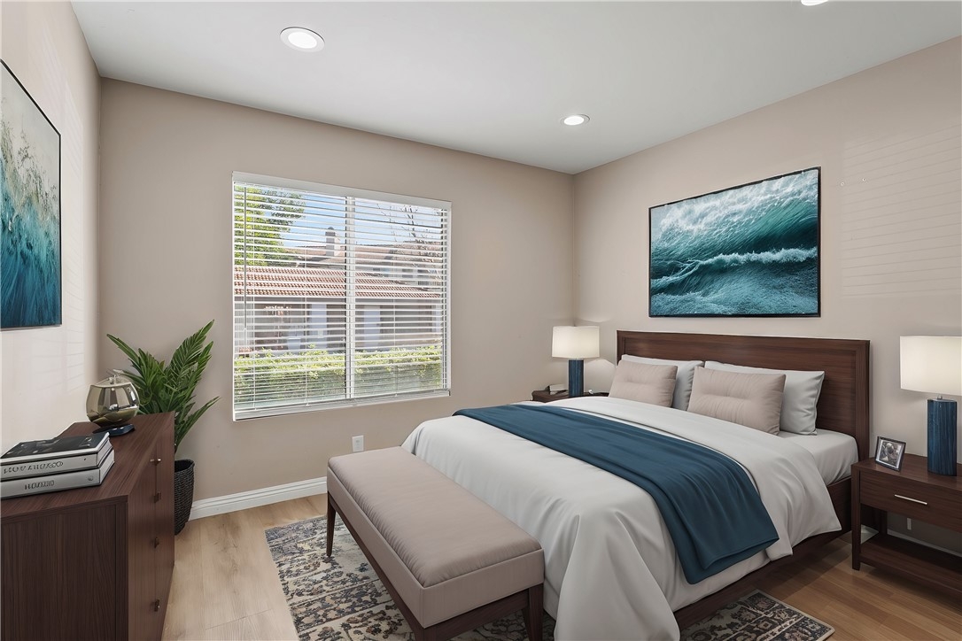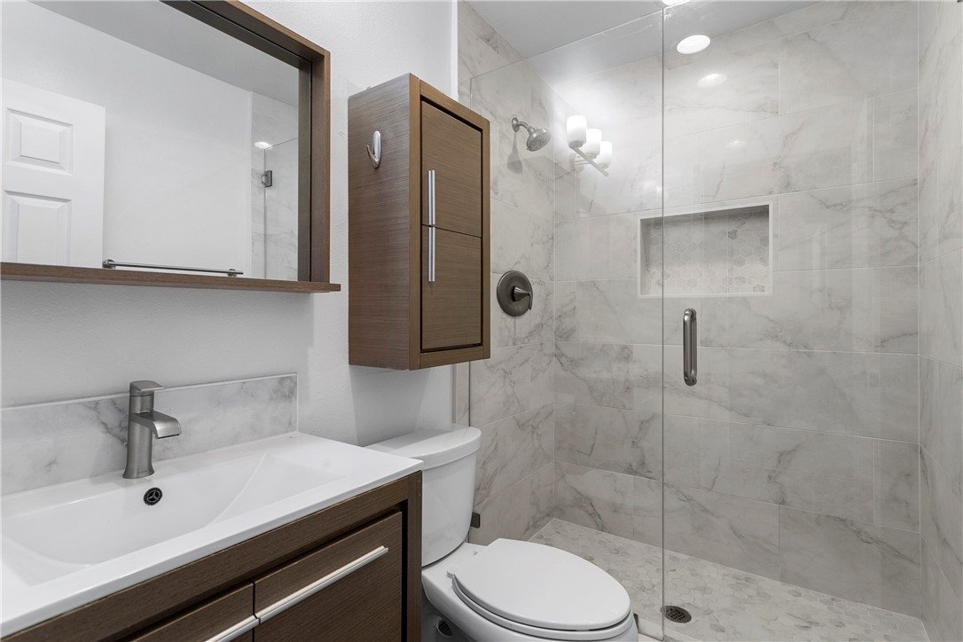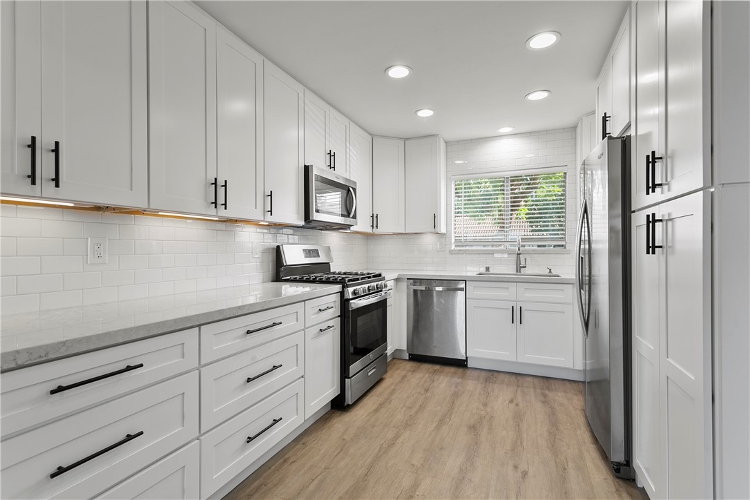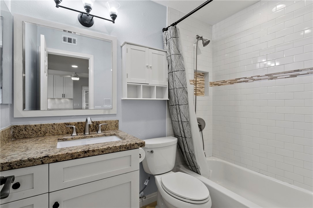 Welcome to the peaceful gated Villorio community! This light and bright single level condo offers an open floor plan with 2 bedrooms and 2 bathrooms. Upon entering, you will be greeted by a tastefully remodeled kitchen, complete with ample cabinet space, soft close cabinet doors and drawers, sleek quartz countertops, under-cabinet lighting, appliances, and a stylish ceramic tile backsplash. This home boasts a cozy fireplace and luxury vinyl flooring throughout. The primary bathroom has been revamped with newer flooring, cabinetry, and a modernized shower. Additionally, PEX plumbing was installed in 2023. Enjoy the private patio, great for entertaining guests, sipping morning coffee, or relaxing and enjoying the view! Plus, a single-car garage with plenty of storage is conveniently located near the unit, with additional open parking. This condo is nestled in a prime location, with close proximity to the 241 Toll Road, shopping, plenty of restaurants, schools, and scenic trails—offering the perfect balance of privacy and convenience.