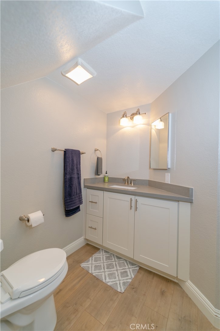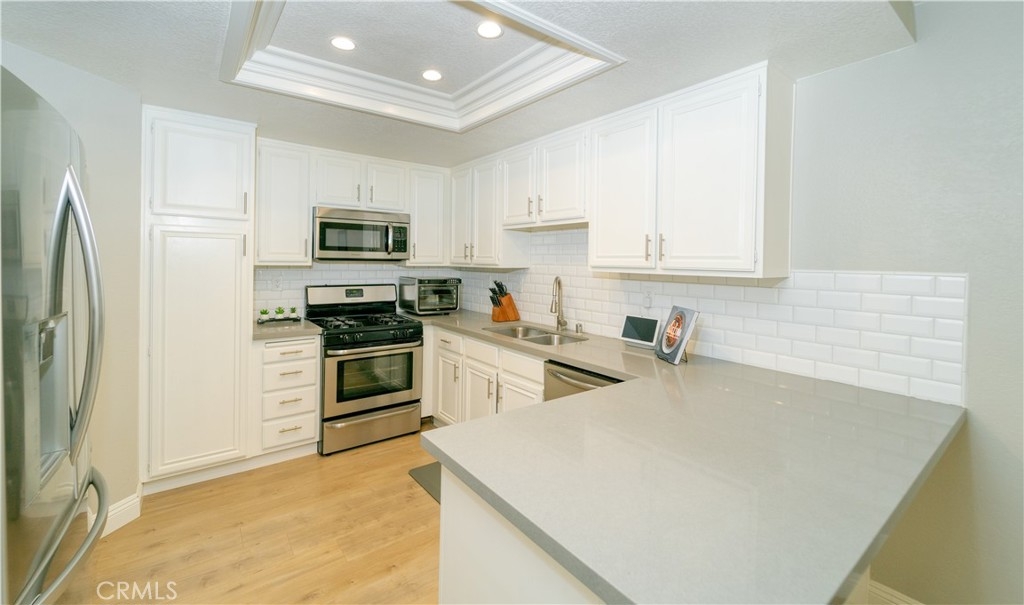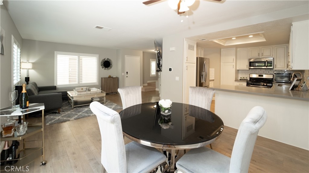 Highly desirable end unit in the beautifully maintained Vista Del Flores community, with no one above or below. Stunning remodeled two-story home with dual Master Bedrooms upstairs. Kitchen remodeled with grey quartz countertops, newly finished cabinet, new bright white subway tile backsplash, new kitchen faucet and sink, and all new stainless steel appliances. Living room fireplace for cozy nights. Dining area off kitchen. New distressed flooring on the first level and new low pile carpet upstairs. Half bath downstairs with matching grey quartz countertops. Both Master Bedrooms upstairs are generously sized and offer full bathrooms with grey quartz counters, new faucets, new light fixtures, and mirrored closet doors. Additional upgrades include plantation shutters installed throughout the home, a new garage door, a Tesla gen two wall connector with a new sub-panel, and an upgraded 100 amp main breaker. This unit has upgraded PEX pipe plumbing and a new roof done this year (2022). The open floor plan of the home is excellent for entertaining. The patio off the dining area provides perfect space for summer bbqs. Enjoy local shopping and entertainment nearby. Short drive to the Great Park, Irvine Spectrum, and several highly ranked schools!