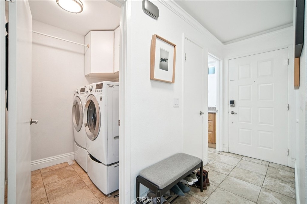 Privacy, light, and space take center stage in this corner-unit Vista Verde standout. With no one above you and an end-unit position that lets the light pour in, 22235 Vista Verde lives big across 1,414 square feet and two thoughtfully designed levels. Downstairs is all about easy flow and everyday comfort: tile floors underfoot, a spacious living room that opens to dining and kitchen, a convenient half bath, and a dedicated laundry room (because real life happens here). The kitchen checks all the right boxes with granite countertops and stainless steel Samsung appliances—ready for weeknight dinners or weekend hosting alike. Slide open the doors and the living space spills onto a private patio framed by mature trees. Morning coffee, evening BBQs, or a quiet moment with a book—this is your own little outdoor escape. Upstairs keeps things cozy and practical. Both bedrooms are thoughtfully tucked away, including a generous primary suite complete with a walk-in closet, dual-sink bath, and an enclosed office/work area that makes working from home feel like a perk, not a compromise. The second bedroom is spacious and bright, paired with a full hallway bath that’s perfect for guests or everyday use. And then there’s the lifestyle bonus: HOA perks include two parking spaces and all the benefits of a membership to the Lake Forest Beach & Tennis Club. Think pool days, spa nights, gym sessions, pickleball matches, tennis rallies, basketball games, and weekends by the lagoon—without ever leaving the neighborhood. Low-maintenance living, high-reward amenities, and a home that feels far more like a house than a townhome. Vista Verde may sound like a dream… but this one’s very real.