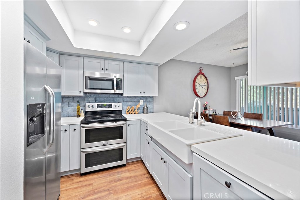 Located in the highly sought after community of Vista Verde, this renovated home boasts two bedrooms and three bathrooms with no one above or below. The floor plan includes an inviting personality and delights with newer low maintenance flooring in all living areas, kitchen cabinets, counter tops and farm style sink and is finished with two balconies to take in the expansive and unobstructed views of the trees. The home is finished with newly updated bathrooms, dual pane windows for energy efficiency and vaulted ceilings in the bedroom. The home is set in a community with well-maintained grounds and is pet friendly with plenty of guest parking. The HOA association fees include access to the Lake Forest Beach and Tennis Club with all of its amenities. The exterior of the buildings will be getting a facelift at the end of the year, so this is your opportunity to experience Lake Forest living at its best.