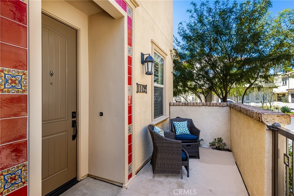 Luxurious 2-bedroom 2.5-bath turnkey townhome with an attached two-car garage located in the wonderful hillside community of Foothill Ranch. Enjoy living in the highly sought-after gated RESORT STYLE, Spanish- inspired village of El Paseo, with low HOA and NO MELLOS ROOS! This two-level townhome has so much to offer! As you walk into the unit, you are welcomed by an outdoor patio, a lovely area for your morning coffee. You will love the inviting open floor plan, with the kitchen open to the living area. The amazing kitchen boasts quartz countertops, a glass-tiled backsplash, rich wood cabinetry, stainless steel appliances, and luxury wood vinyl flooring. Enjoy reading/relaxing, and watching TV in the living room with abundant light from large windows with plantation shutters. The main level also features a coat closet, an indoor laundry closet, a half bath, and access to the two-car garage. The second level features the primary and secondary bedrooms, both having their own on-suite bathrooms! The primary suite with custom bathroom has a single vanity, custom tile shower enclosure, and a large walk-in closet with access to an attic that has TONS of storage. The second bedroom has a spacious closet, and an on-suite bathroom that has a single vanity, and shower in tub. Custom upgrades include: recessed lighting, baseboards, plantation shutters, and ceiling fans. Enjoy the resort-style amenities of El Paseo which include: a pool, spa, playground area, and clubhouse. Just walking distance away is entertainment, restaurants, grocery stores, department stores, hiking trails, and mountain biking trails.