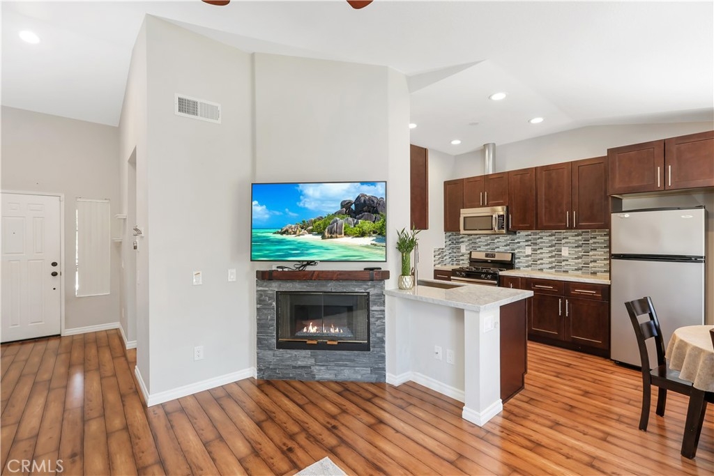 This inviting one-bedroom, one-bathroom condominium located in Lake Forest offers comfort and convenience. Situated on the second floor, this unit boasts high ceilings and a private balcony, perfect for enjoying your morning coffee or unwinding after a long day. The spacious layout features the open living area that flows seamlessly to the kitchen. There is an easy-to-use gas fireplace in the living room that provides a cozy atmosphere and turns on with the flick of a switch. The unit also has an updated Nest thermostat, offering convenience and ease. The bedroom is spacious and there is your own private laundry in unit. There is a separate assigned one-car garage that is just a few steps from the unit. Enjoy the benefits of condo living with access to well-maintained community amenities including the pool, spa, clubhouse and BBQs, perfect for socializing and enjoying the So Cal sunshine. The unit is just a short drive to grocery stores, retail stores and the Foothill Ranch Towne Center which includes shops like Target, Home Depot and countless restaurants including including In n Out and Chick-Fil-A. There is also an abundance of trails and parks to explore, like Whiting Ranch Wilderness Park. This home is an excellent opportunity for those seeking a low-maintenance lifestyle in a well-established neighborhood. Don't miss out on this charming condo in beautiful Lake Forest!