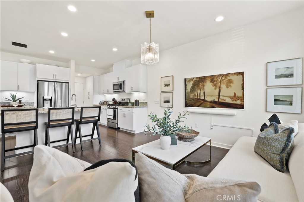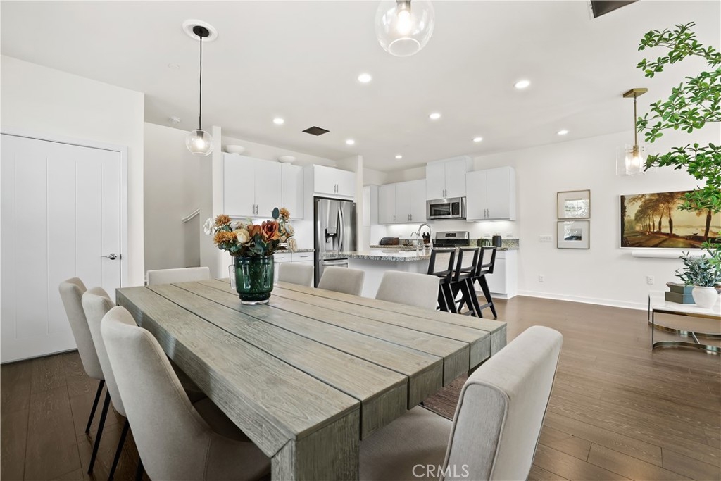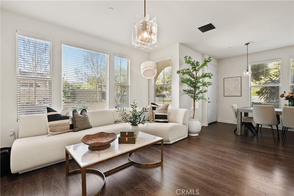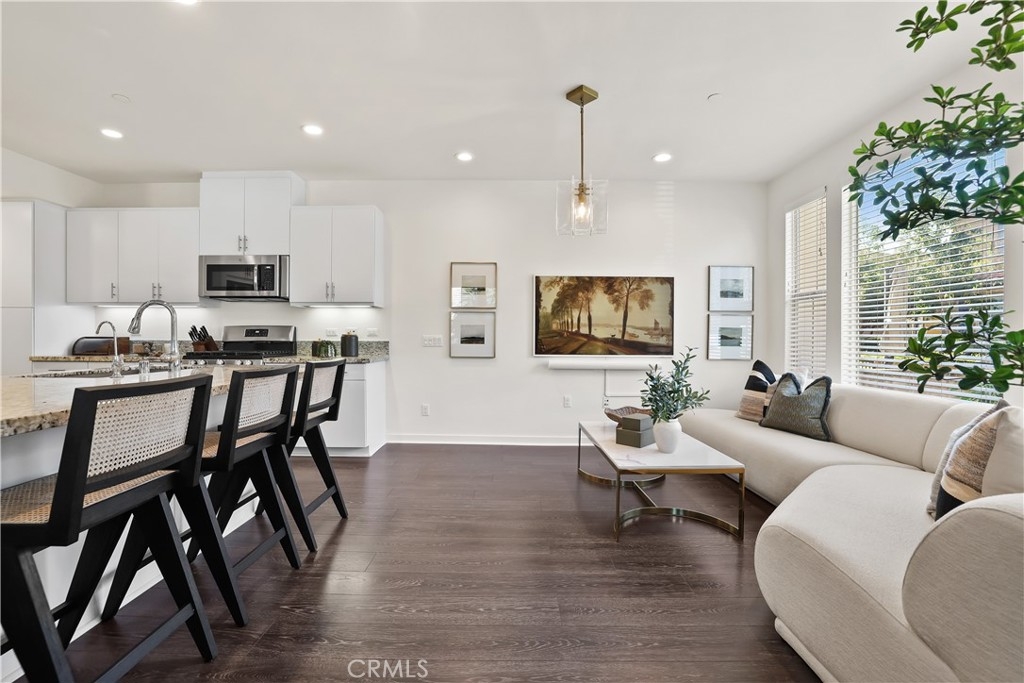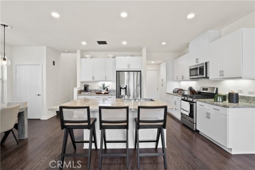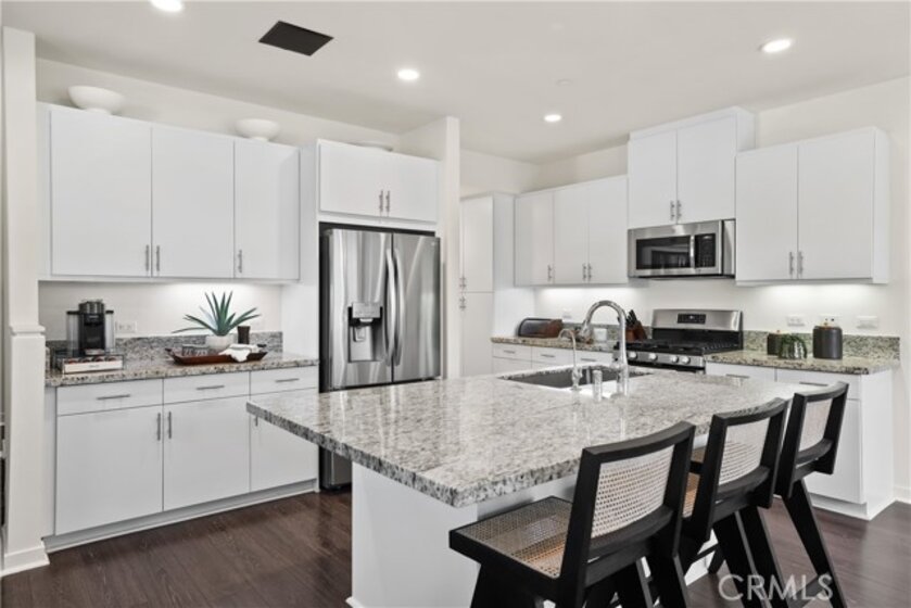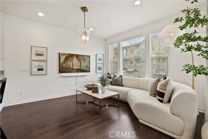 Located in the Coveted Resort-Style Community of Baker Ranch, 12 Prominence is a Beautiful 3 Bedroom 2.5 Bathroom End Unit Residence Featuring a PREMIUM OVERSIZED Extended Front Patio. Curated for the Modern Day Buyer as the Ultimate At Home Sanctuary this home Blends Gorgeous Design Features with Supreme Functionality. As you enter the Exquisite Details impress with Wood Look Luxury Vinyl Flooring, Recessed Lights, Custom Designer Light Fixtures and a Light & Bright Interior with Multiple Windows and incredible natural light. The Gourmet Kitchen is a Chef's Dream...Fully Upgraded with Stainless Steel Appliances, White Cabinets, Neutral Granite Center Island w/bar seating and Walk-In Pantry. Ideal for Entertaining, the Designated Dinning Area is Spacious Enough to Accommodate All Your Guests while Overlooking The Tranquil Front Yard Views! On the second floor you will find all 3 Bedrooms, 2 Bathrooms and the Convenient Upstairs Laundry Room. Start your New Wellness Routine in the Primary Suite Retreat w/a Light & Bright Interior Overlooking Picturesque Mountain Views. The Tranquil Spa Like Primary Bathroom features a Restorative Glass Shower, Dual Vanities and a Spacious Walk In Closet. Discover The Front Patio provides the perfect space for Indoor/Outdoor Living. Located on a Picturesque Tree Lined street offering Supreme Privacy the Location of this home can not be overlooked! Additional Features of this residence include a Spacious 2 Car Garage, Tankless Water Heater and Water Filtration System. The Elevated Location of this home enjoys easy walking distance access to Exclusive Resort Style Baker Ranch Amenities including 3 Swimming Pools, Tennis Courts, 8 Parks, Hiking and Biking Trails, Numerous Sports Courts, Dog Park, Clubhouse, etc..No Mello Roos and Low HOA… This One is Special…Do Not Wait To See it in Person!