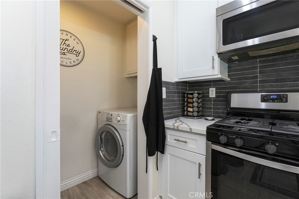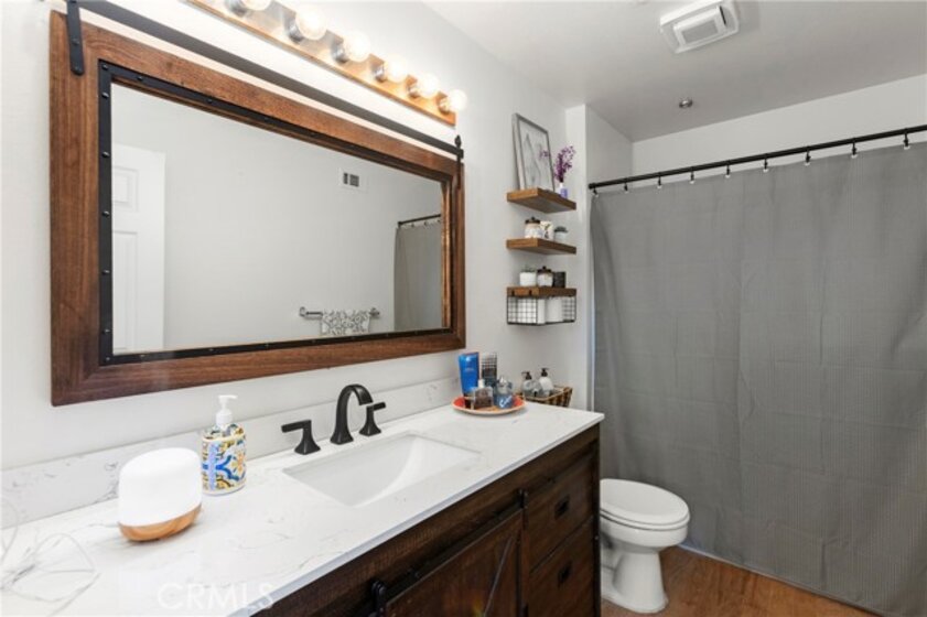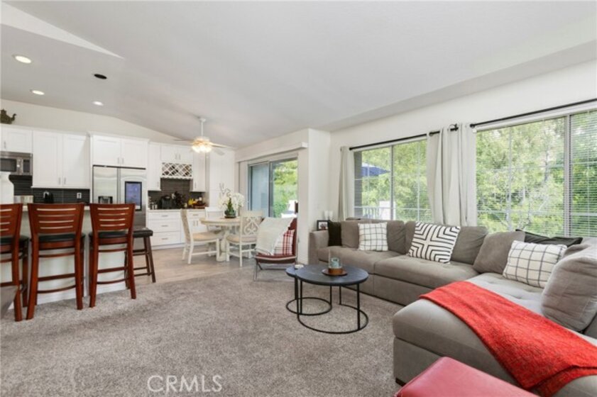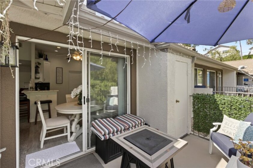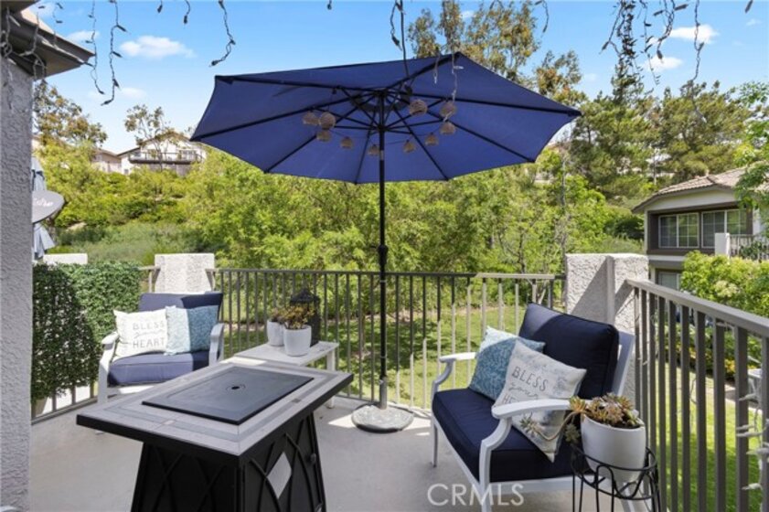 Welcome home to the perfect blend of comfort and sophistication in this beautifully renovated model D Napoli Salerno Foothill Ranch condominium. A private, upper end unit with a serene view of the greenbelt makes this condo especially desirable. Step inside and feel right at home in the spacious floor plan, featuring high ceilings and multiple windows that fill the home with loads of natural light. The living room is perfect for entertaining with it’s fireplace, large TV wall, and a sliding glass door to the patio. The dining room has space for a large table and is open to the kitchen. Wow, what a kitchen with tile flooring, white cabinetry, beautiful white marble counters, custom backsplash, farmhouse sink and stainless steel appliances. You will love the convenience of an indoor laundry room with space for a full-sized washer and dryer, concealed with a sliding pocket door. A large primary suite features high ceilings, a huge walk-in closet, and a full en-suite bathroom with a new vanity with quartz counters. A second full bathroom with new cabinetry and marble counters serves both guests and the large secondary bedroom. Enjoy the California indoor/outdoor lifestyle on your private patio with a view of the expansive greenbelt filled with mature trees, flowers, and manicured hedges, perfect for entertaining guests or a quiet morning coffee. Just steps from the home is the one-car garage with extra storage. The Salerno community offers wonderful amenities including a pool, spa, and BBQ area. The city of Foothill Ranch also offers it’s residents a community pool, spa, tennis courts, parks, sports courts, and scenic hiking and biking in the nearby Whiting Ranch.