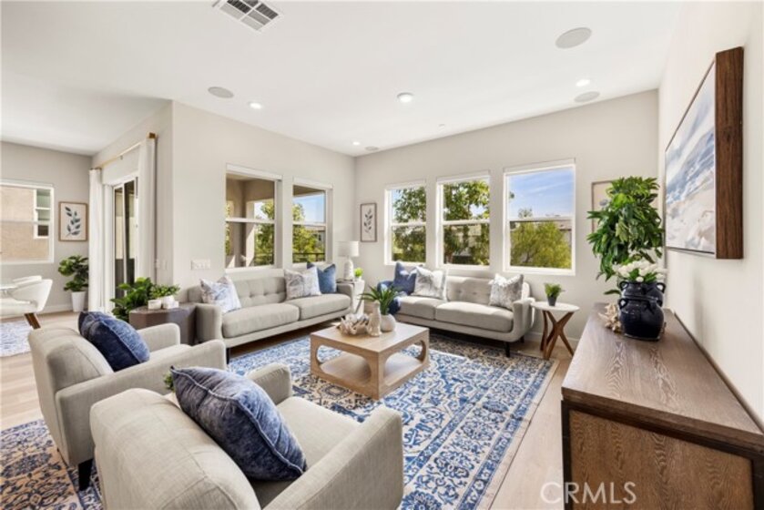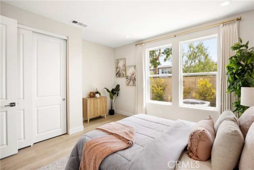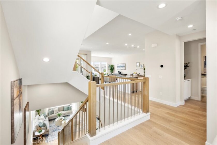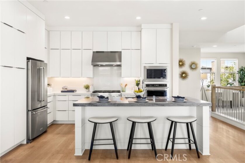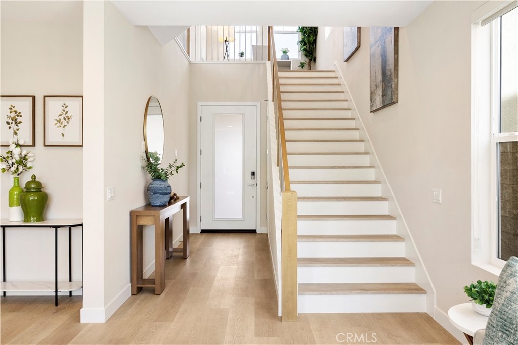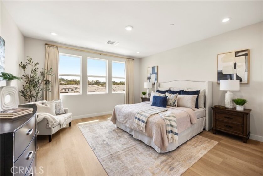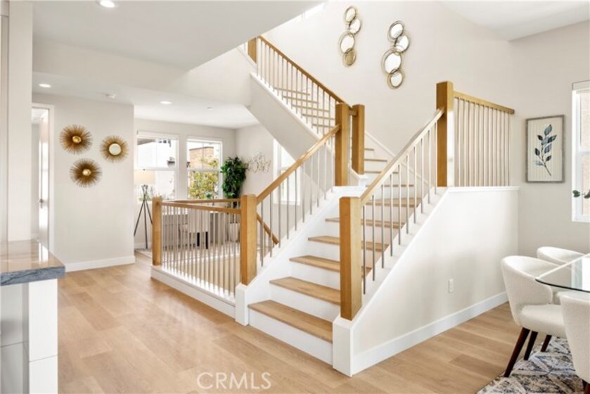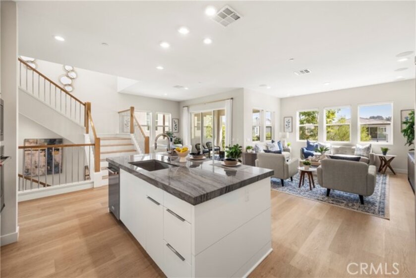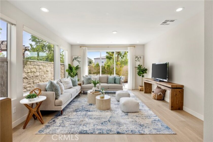 Welcome to your dream Parkland home located within The Meadows built in 2023 by Toll Brothers, a high-end community in Lake Forest! This resort-like luxury home boasts 5 spacious bedrooms and 4 bathrooms with a stunning open-concept floor plan and vinyl flooring throughout. As you enter the home you are greeted by an expansive living room with stacking glass sliding doors, filling the room with an illuminance of natural light. The backyard faces no neighboring houses, ensuring privacy. To the right is the downstairs ensuite bedroom paired with full bathroom. Modern wooden railing stairs lead to the second floor, featuring a loft area, a chef-inspired gourmet kitchen with quartz countertops, designer backsplash, ceiling-height cabinets, and a beautiful center island to finish the look. The living room and dining room also are located on this floor, with sliding doors that lead to the grand outdoor Balcony, seamlessly blending living and dining space. The master bedroom on the third floor boasts a large bathroom and spacious walk-in closet to serve all your fashion needs. Every detail of this modern home radiates sophistication and grandeur. The Meadows community itself offers a lifestyle of unparalleled luxury, boasting resort-like amenities. Enjoy the private clubhouse, two pools, two spas, cabanas, a lounge with a fireplace, and outdoor BBQs, community and neighborhood parks, two dog parks, sports fields, basketball, pickleball, and volleyball courts cater to every recreational desire. Immerse yourself in the nearby miles of biking, hiking, and walking trails, creating a perpetual vacation ambiance right at your doorstep. This residence is surrounded by convenience, with countless dining, shopping, and entertainment options such as a 24-hour fitness center, Home Depot, Foothill Ranch Town Center, and the nearby Irvine Spectrum shopping center. This meticulously designed residence is not just a home; it's a gateway to an extraordinary lifestyle.