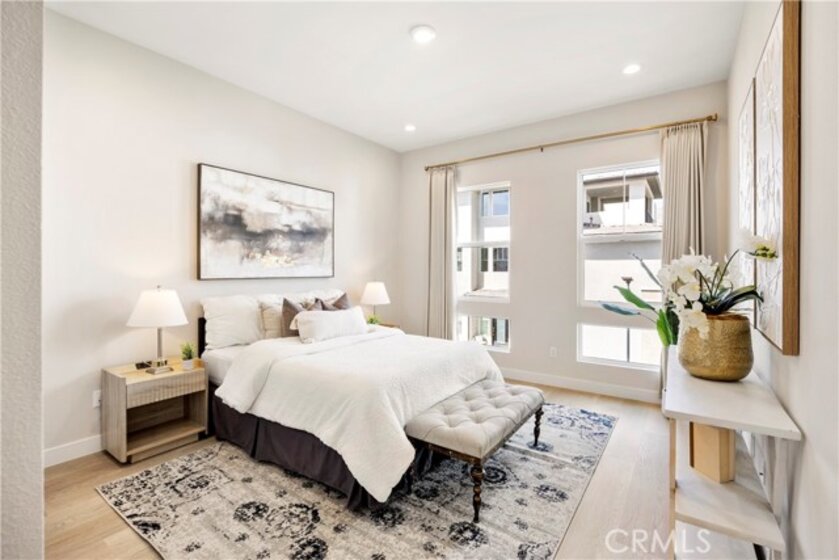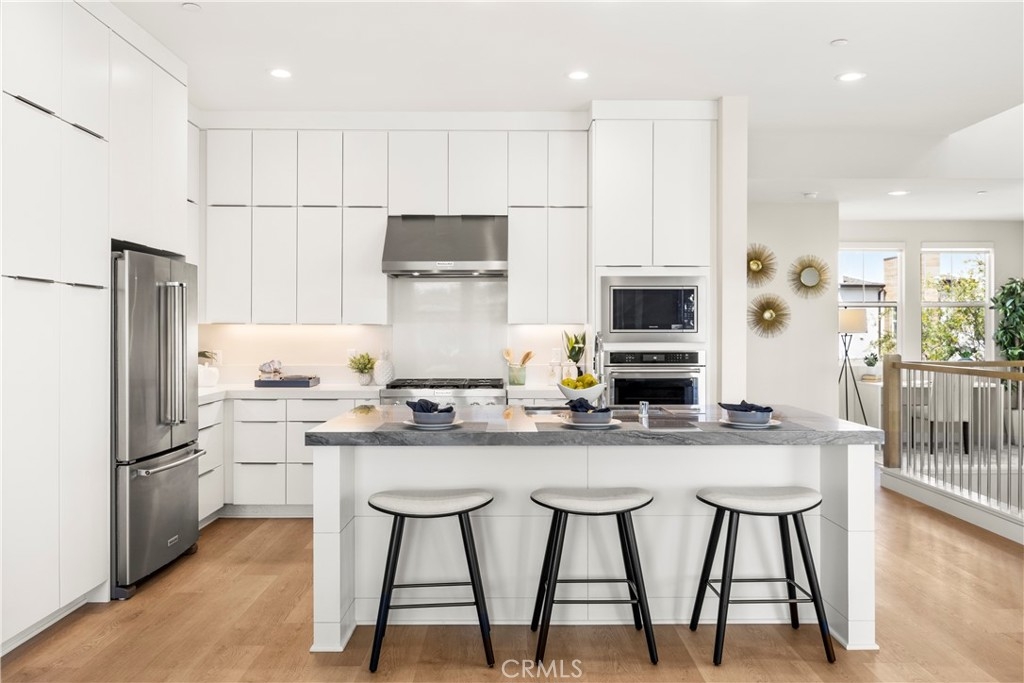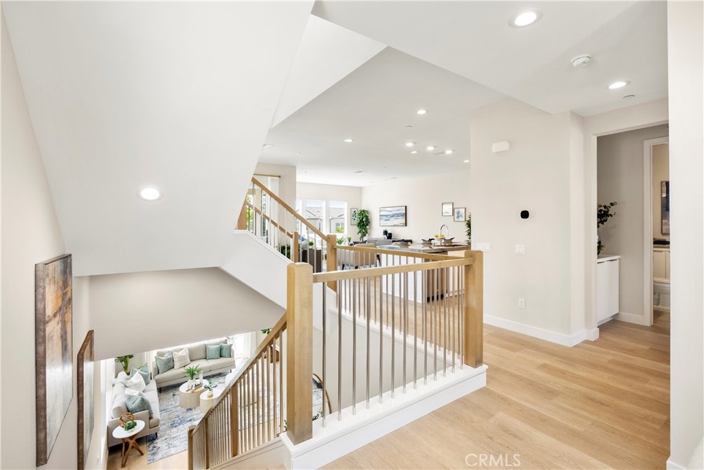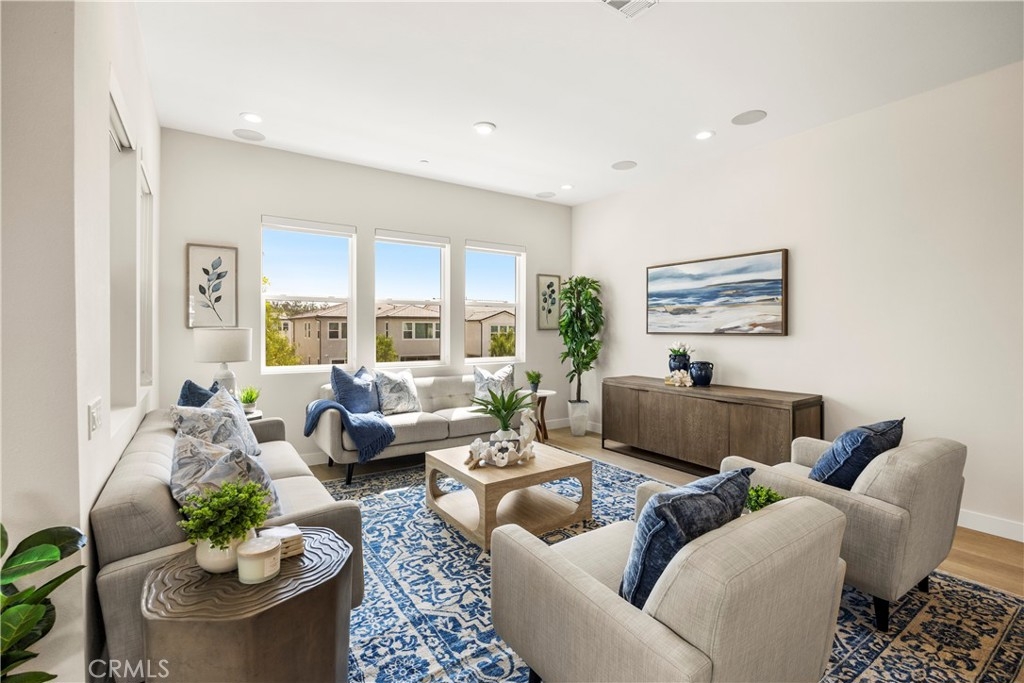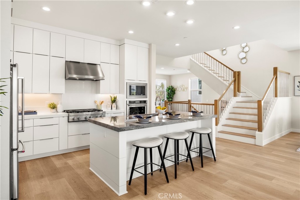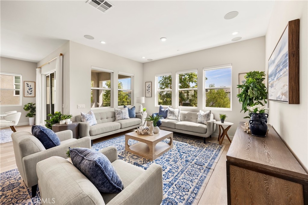 Welcome to your dream Parkland home located within The Meadows built in 2023 by Toll Brothers, a high-end community in Lake Forest! This resort-like luxury home boasts 5 spacious bedrooms and 4 bathrooms with a stunning open-concept floor plan and vinyl flooring throughout. As you enter the home you are greeted by an expansive living room with stacking glass sliding doors, filling the room with an illuminance of natural light. The backyard faces no neighboring houses, ensuring privacy. To the right is the downstairs ensuite bedroom paired with full bathroom. Modern wooden railing stairs lead to the second floor, featuring a loft area, a chef-inspired gourmet kitchen with quartz countertops, designer backsplash, ceiling-height cabinets, and a beautiful center island to finish the look. The living room and dining room also are located on this floor, with sliding doors that lead to the grand outdoor Balcony, seamlessly blending living and dining space. The master bedroom on the third floor boasts a large bathroom and spacious walk-in closet to serve all your fashion needs. Every detail of this modern home radiates sophistication and grandeur. The Meadows community itself offers a lifestyle of unparalleled luxury, boasting resort-like amenities. Enjoy the private clubhouse, two pools, two spas, cabanas, a lounge with a fireplace, and outdoor BBQs, community and neighborhood parks, two dog parks, sports fields, basketball, pickleball, and volleyball courts cater to every recreational desire. Immerse yourself in the nearby miles of biking, hiking, and walking trails, creating a perpetual vacation ambiance right at your doorstep. This residence is surrounded by convenience, with countless dining, shopping, and entertainment options such as a 24-hour fitness center, Home Depot, Foothill Ranch Town Center, and the nearby Irvine Spectrum shopping center. This meticulously designed residence is not just a home; it's a gateway to an extraordinary lifestyle.