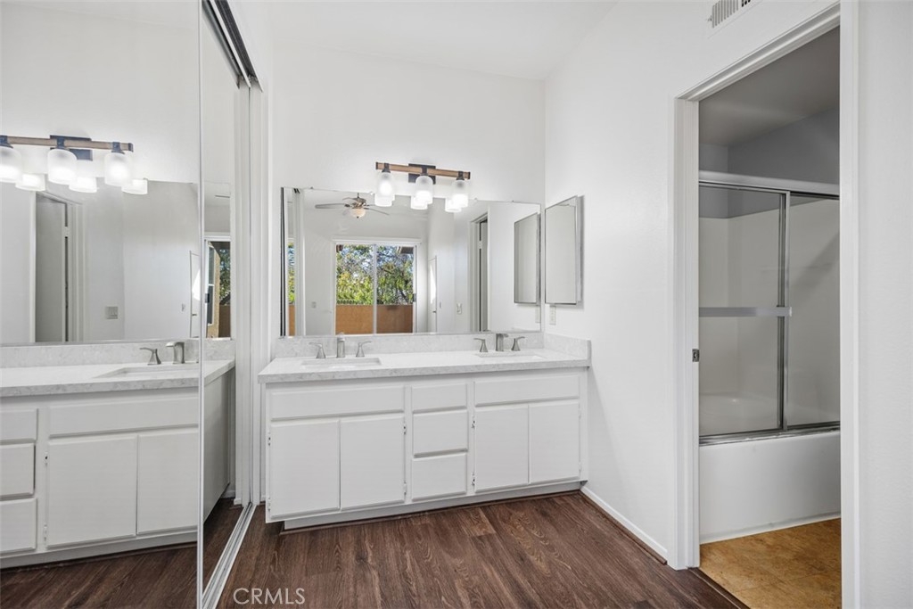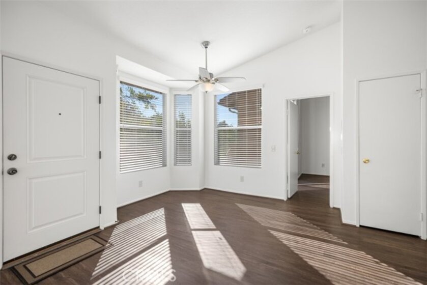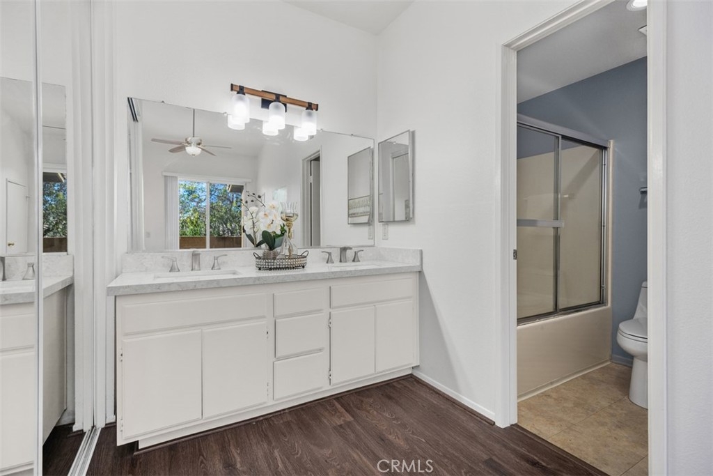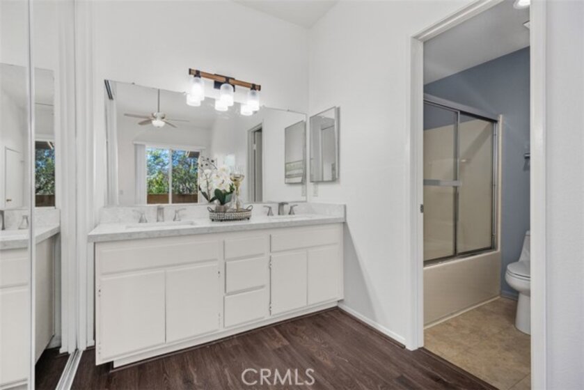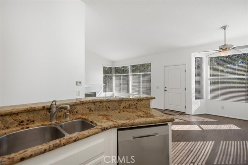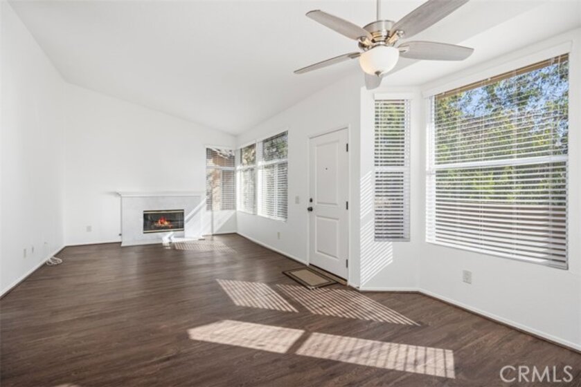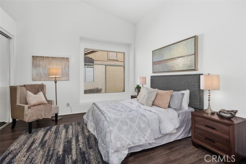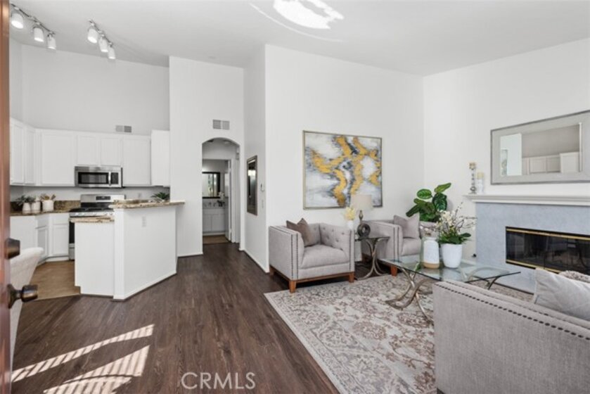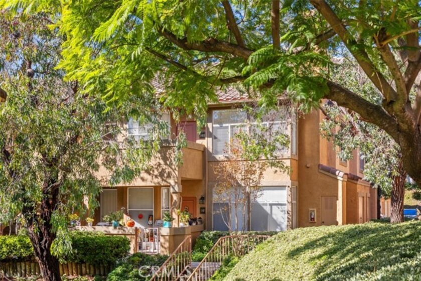 Gated, beautiful resort-like community, Tuscany in Foothill Ranch. Highly upgraded upper-level corner unit townhome. Open floorplan with vaulted ceilings. Very light and bright. Freshly painted. Kitchen is open to great room with fireplace and dining area. Two large bedroom suites at opposite ends of the unit affords privacy. Generous closet space. Two full baths. Double vanities. Kitchen is upgraded with granite countertops and stainless-steel appliances. Upgraded vinyl plank flooring. Large front patio. One car detached garage affords enclosed parking and extra storage. Tuscany's resort complex includes 2 pools, spas, clubhouse, tennis court. fitness and aerobic centers. Close to Irvine Spectrum with shopping, theaters and numerous restaurants. Easy access to 241 Toll Road. Enjoy miles of scenic hiking and bike trails.