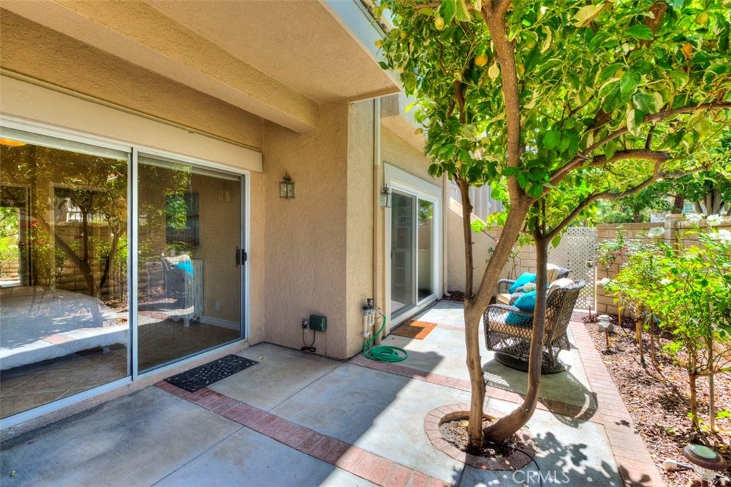 Welcome home to 18938 Canyon Hill. Enjoy all that Portola Hills has to offer with this upgraded, move in ready, end unit condo. Walk in to a bright and open floor plan. Cozy up next to your warm fireplace in the winter, and enjoy summers on your spacious landscaped patio, under the shade of your lemon tree. With travertine style ceramic flooring throughout, maintenance is a cinch. You won’t want to leave this kitchen with stainless steel appliances, convection oven, granite countertops, upgraded cabinetry, and roll out storage. Getting ready in the morning will be a breeze with a large slider to let in the fresh air, and a broad closet with convenient mirrored doors. The bathroom is an oasis with granite countertops and a completely remodeled travertine shower featuring a built-in bench, and custom niches. The attached garage has built-in shelving, finished floors, and provides direct access into the home. Additional features include central air and heat, newer AC, ceiling fans in bedroom, and dining room, custom built ins throughout the home, crown moulding, custom wiring for entertainment, screen doors, rose garden, large private patio, automatic garage door, driveway parking, and more! Centrally located near Concourse Park with walking, hiking, biking trails very close to popular Whiting Ranch. Rolling Hills offer beautiful vistas and a tranquil environment, even though you are close to every amenity imaginable. NO MELLO ROOS and LOW PROPERTY TAXES!