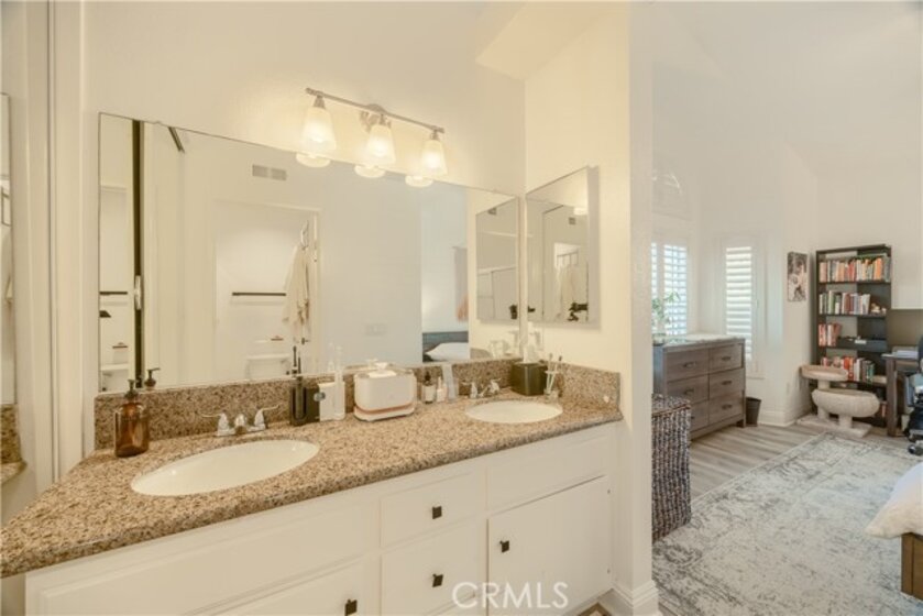 FINANCING AVAILABLE! Welcome to Tuscany Condominiums in Foothill Ranch. Step into this light filled two bedroom, two bath residence designed for both relaxation and stylish entertaining. The home showcases brand-new luxury vinyl plank flooring, fresh plantation shutters, and a new air conditioning system paired with an ecobee smart thermostat for modern comfort. The sleek kitchen is a true highlight, featuring stainless steel appliances, granite countertops, and updated receptacles, all thoughtfully consistent with the home’s contemporary upgrades. The spacious primary bedroom is your personal sanctuary, complete with an en-suite bathroom featuring a double vanity and luxurious finishes. An additional full bathroom ensures comfort for you and your guests. High ceilings and an open floor plan create an airy, expansive feel throughout, while the neutral color palette serves as a canvas for your personal style. Parking is abundant with an enclosed Garage directly below, an assigned carport as well as first come, first serve spaces right in front of the unit. Embrace the California indoor-outdoor lifestyle with large windows that flood the home with natural light, creating a bright and uplifting atmosphere. Association amenities include, EV Charging stations, Pools, Spas, Putting Green, Tennis Courts and more! Located in the desirable Foothill Ranch area, this home offers the perfect balance of suburban tranquility and urban convenience. Your journey to an inspired lifestyle begins here! Don't miss this opportunity to make this exceptional space your own!