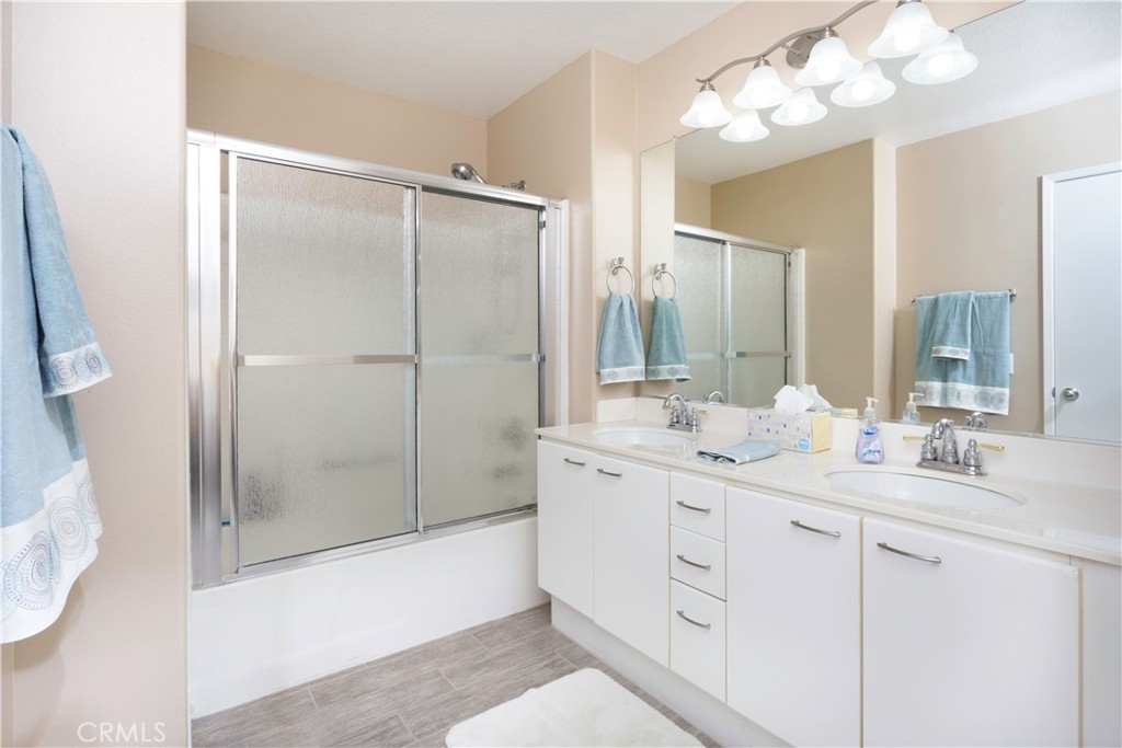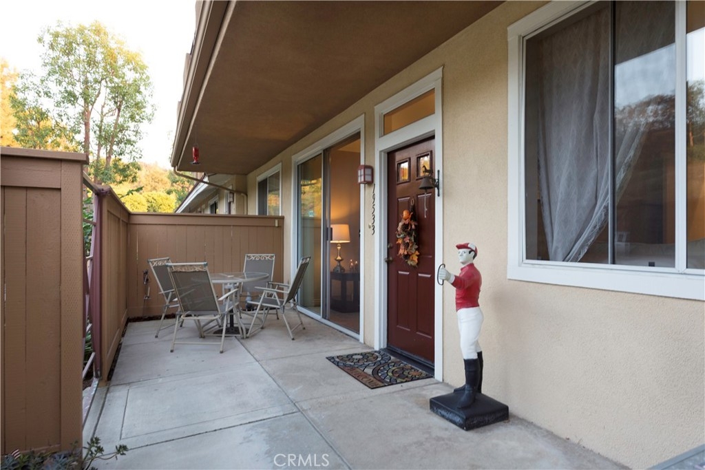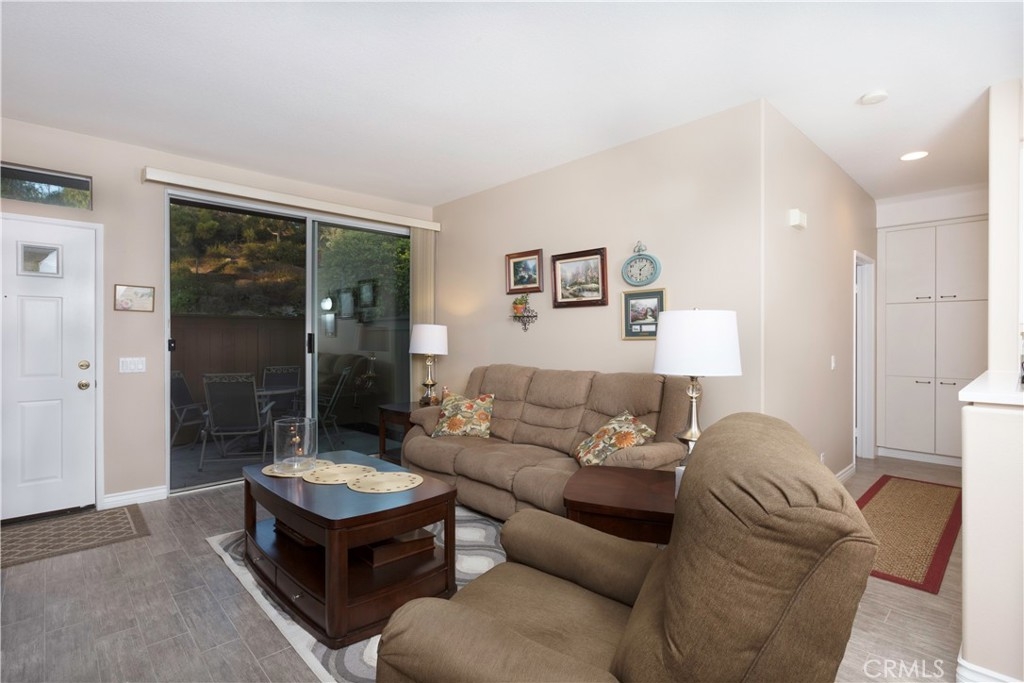Lovely ground floor, single level, 2-bedroom, 2 full bathroom condo with 2 car direct-access garage located in the highly sought-after community of Bella Palermo in Portola Hills! This spacious, light, and bright home boasts an open concept floor plan with a wonderful tranquil front patio that is perfect for outdoor living space and summer barbecues. It features central a/c, newer wood-type porcelain tile flooring throughout, high ceilings, designer paint, high baseboards, and smooth ceilings. It includes a living room with slider that opens to the private patio, a dining area with ceiling fan, and a charming kitchen with tile countertops, euro-style clean white cabinetry, gas cook top, microwave, oven & dishwasher. The master suite has his & hers closets and an en-suite bathroom with dual sinks and a tub/shower combo with glass enclosure. Spacious secondary bedroom and guest bath also with tub/shower combo. The laundry hook-ups are located in the attached garage. Enjoy the association amenities: resort-style pool, spa, clubhouse, gym, children's playground, picnic & bbq area, lush greenbelts, and walking paths. Award-winning Portola Hills elementary school is just around the corner, as well as concourse park and Whiting Ranch Wilderness Preserve with its hiking, biking, and running trails. Added bonus to this already fabulous unit are: no mello-roos, low tax rates, and super low hoa dues. Close to shopping, wonderful restaurants, movie theaters and the 241 toll road.