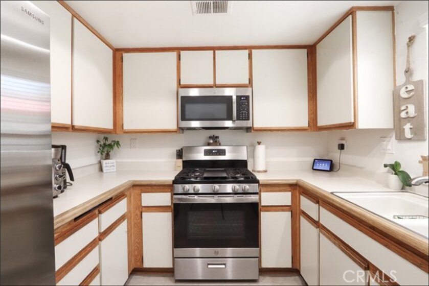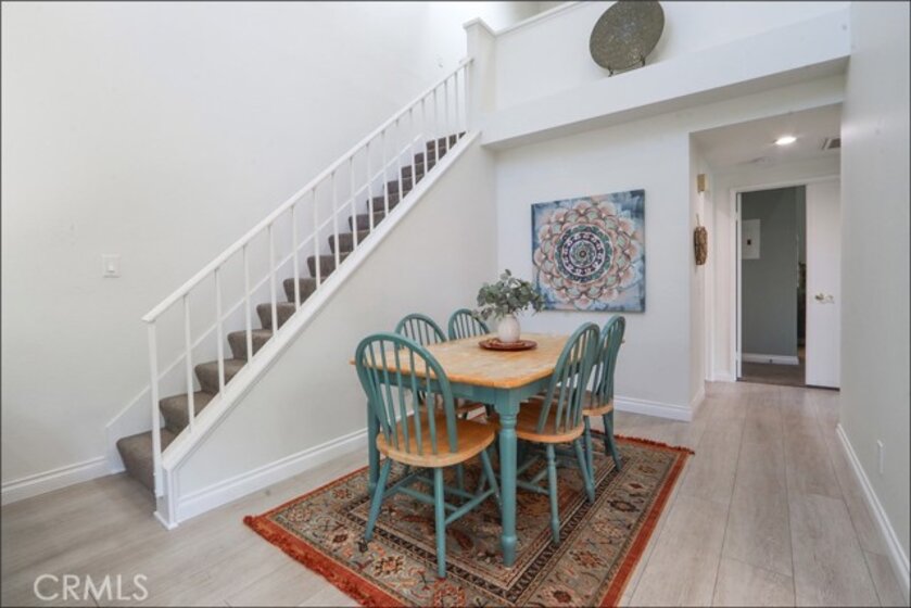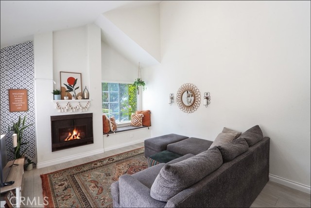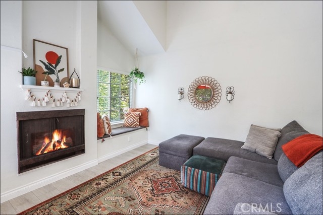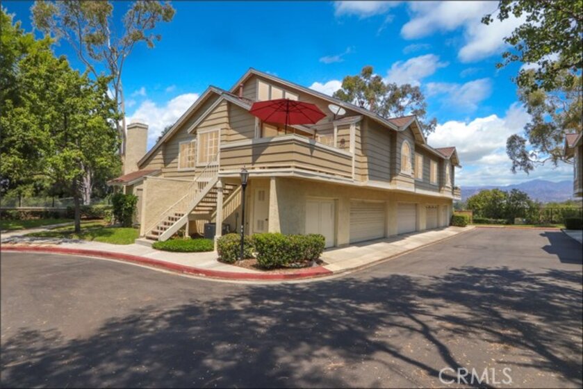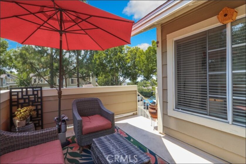 EXCEPTIONAL END UNIT LOCATION WITH VIEW, CARRIAGE STYLE FLOOR PLAN OFFERING 2 BEDROOMS PLUS LOFT WITH HIGH CEILINGS AND GARAGE! Large living and dining room with two story ceilings, delightful kitchen with stainless steel appliances and window overlooking the large private deck and plenty of natural light! Loft is perfect as a large home office or can be the 3rd room. Master suite with walk-in closet and upgraded master bathroom with marble vanity, upgraded walk-in shower with frameless glass enclosure and upgraded fixtures, large 2nd bedroom and full second bathroom. Conveniently located inside laundry area, upgraded laminate wood flooring, Private deck is perfectly positioned to enjoy the views and your outdoor entertainment. Community pool and spa and lush greenbelts nearby. Excellent proximity to nearby shopping, easy toll road (241) and freeway access (via Bake Parkway), Irvine Spectrum with shops, restaurants and entertainment and nearby hiking, biking and nature trail!