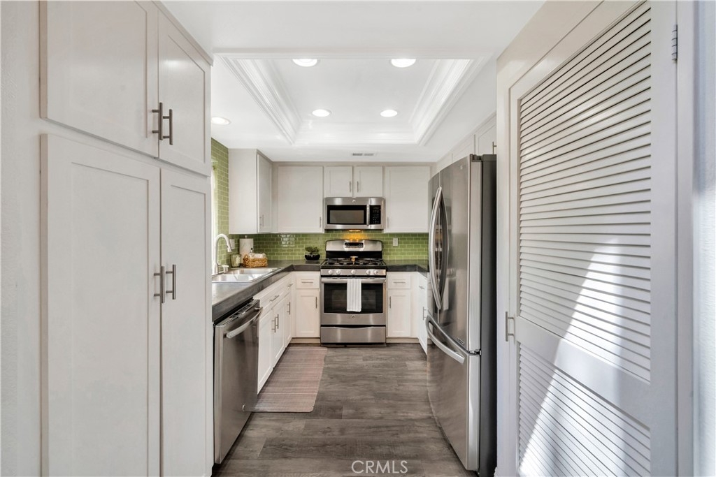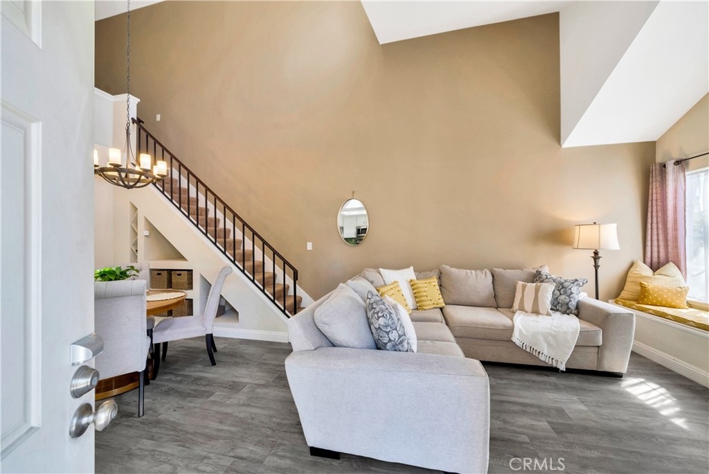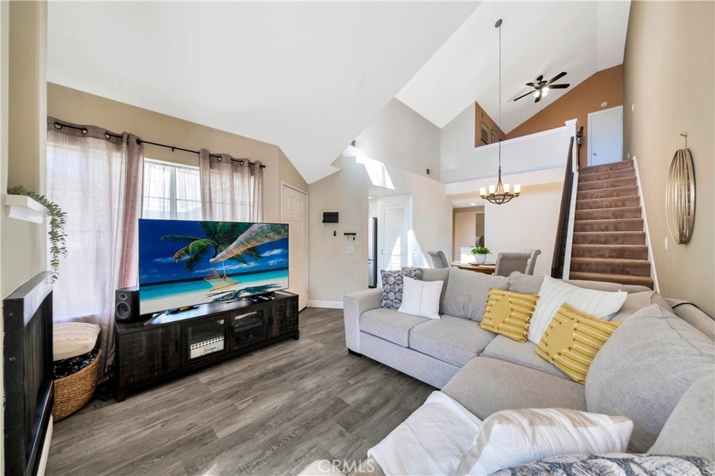 Discover this beautifully updated end-unit condo in the highly sought-after Whispering Hills Community of Lake Forest! This charming 2-bedroom, 2-bath home offers the perfect blend of comfort, style, and privacy, with no neighbors above or below. A spacious loft provides a versatile space—ideal for a home office, gym, or cozy retreat. Step inside to soaring cathedral ceilings and an abundance of natural light that fills the open-concept living area, complete with a cozy fireplace—perfect for relaxing evenings. The well-appointed kitchen boasts stainless steel appliances, ample cabinetry, and a seamless flow into the dining space, making it ideal for entertaining. The primary suite is a true sanctuary, featuring a generous walk-in closet and an en-suite bath. Outside, the private front patio offers a tranquil setting to sip your morning coffee or unwind after a long day. Additional highlights include in-unit laundry for ultimate convenience and a private one-car garage directly below for easy access. Enjoy peace of mind with recent updates, including a new roof and repiping completed around 2021. Residents of this vibrant community have access to resort-style amenities, including a sparkling pool, relaxing spa, and a playground. Located just minutes from shopping, dining, top-rated schools, and major freeways, this home perfectly balances convenience and comfort. Don’t miss out on this rare opportunity—schedule your private tour today!