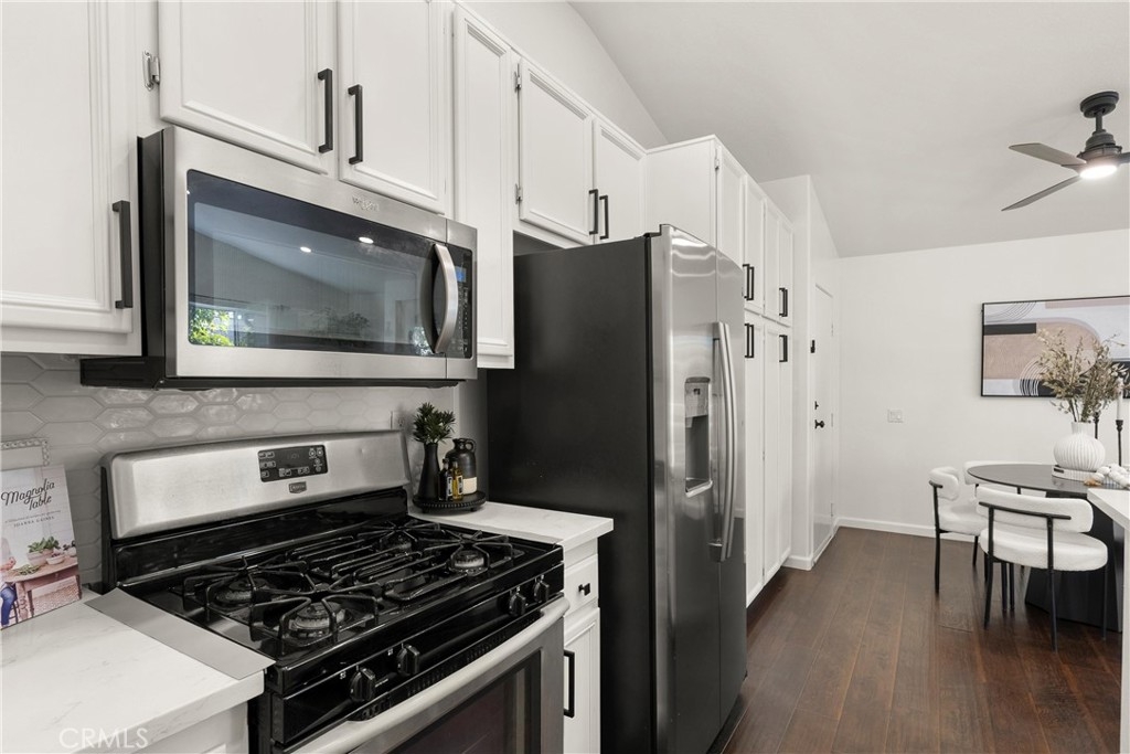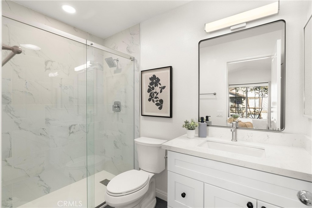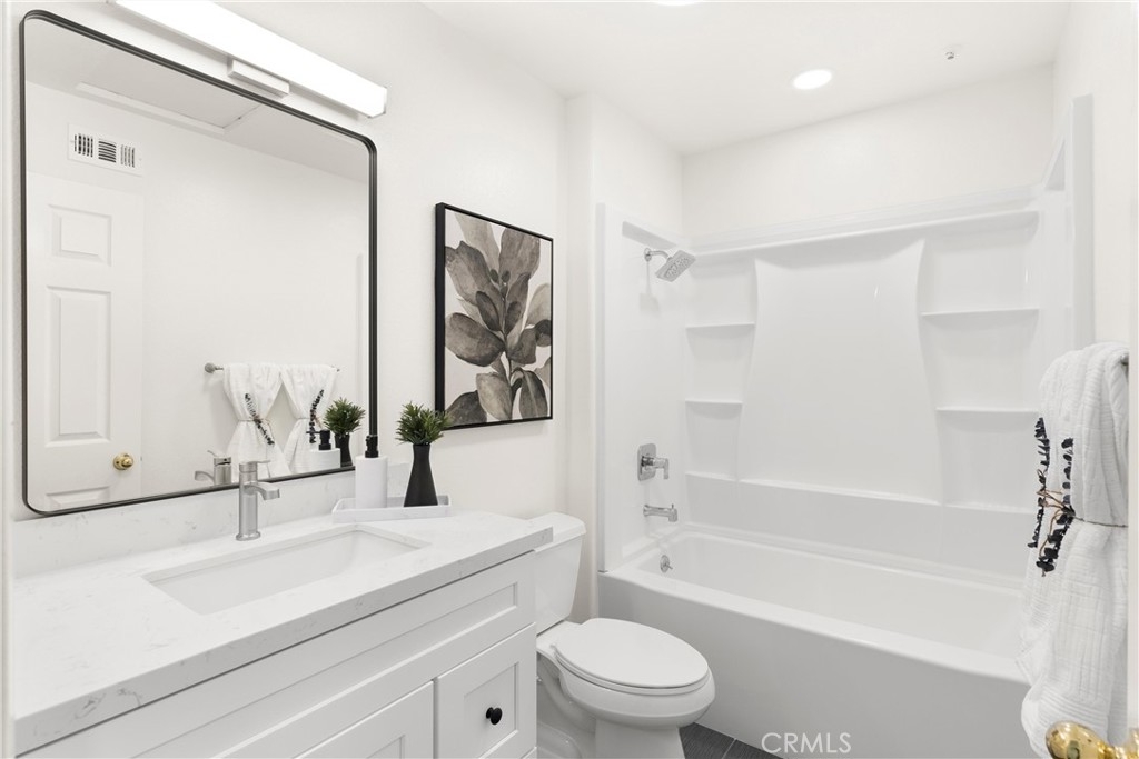 Beautifully renovated 3-bedroom, 2-bathroom condo located in the desirable Salerno community of Foothill Ranch. Offering over 1,150 square feet of thoughtfully designed living space, this second-level end unit is move-in ready and waiting for you to call it home. This light and bright condo features recessed lighting, new water heater, renovated floor, and an abundance of windows that fill the space with natural light. The modern kitchen is equipped with sleek quartz countertops, white cabinetry, and a reverse osmosis water system. The spacious renovated primary bedroom includes a massive walk-in closet and separate bathroom with a large shower. and plenty of space for your furniture! Enjoy functionality with in-unit full-size laundry that adds convenience to your daily routine and a direct garage access. In addition to the garage you also have an additional assigned parking space! Step outside to a large front patio, perfect for entertaining or unwinding after a long day. Nestled in a prime location, this home is just moments from top-rated schools, premier shopping, and a variety of hiking trails, offering the perfect balance of convenience and outdoor adventure. Don’t miss the opportunity to own this beautifully updated home in the heart of Foothill Ranch.
