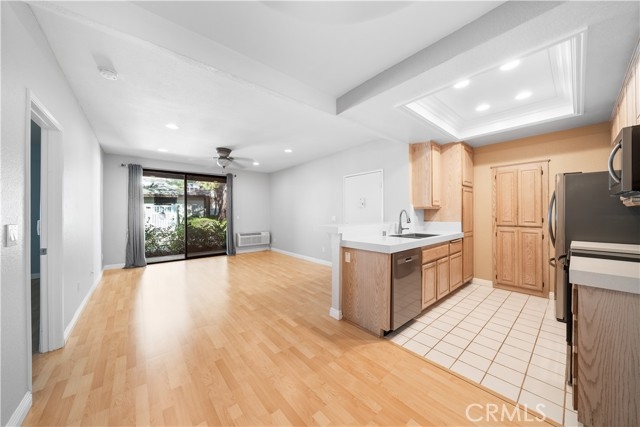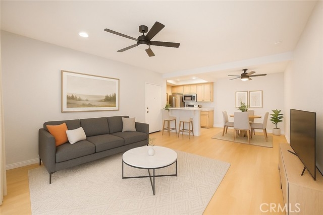 Gorgeous Remodeled Lower-Level Condo in Pheasant Creek – 686 Sq Ft Beautifully updated 1BD/1BA lower-level condo with 686 sq ft of living space, located in the highly desirable Pheasant Creek community. This move-in ready home features a fully remodeled interior, including quartz countertops, breakfast bar, recessed lighting, and newer kitchen appliances (approx. 1 year old) including refrigerator, stove, microwave, dishwasher, and updated sink/faucet. Additional upgrades include wood laminate flooring throughout, A/C, and ceiling fans in every room. The spacious bedroom features a walk-in closet with custom organizer. Full-size washer and dryer are included and conveniently located in the patio laundry closet. Enjoy a quiet, private interior location with tranquil stream views. This unit includes a one-car garage plus a rare additional parking permit. Community amenities include: 3 pools, 3 spas, tennis and basketball courts, peaceful ponds and streams, and ample guest parking. HOA covers water, trash, and exterior maintenance. Prime location close to shopping, parks, hiking/biking trails, Saddleback Church, Irvine Spectrum, 24 Hour & LA fitness centers, major freeways, and the 241 toll road. This turnkey home is a must-see—schedule your showing today!