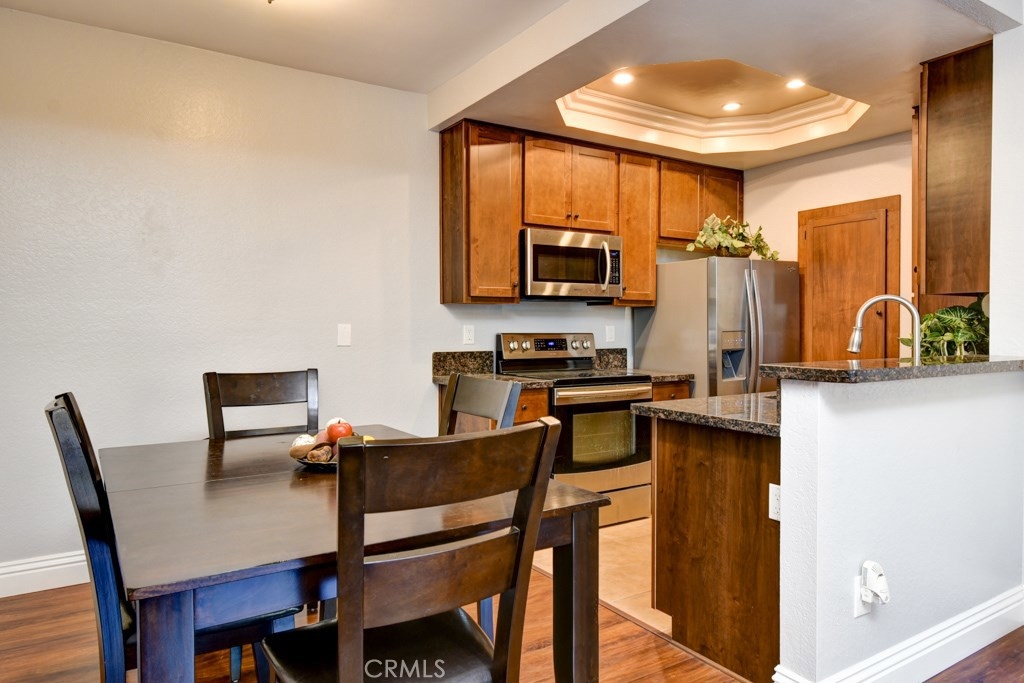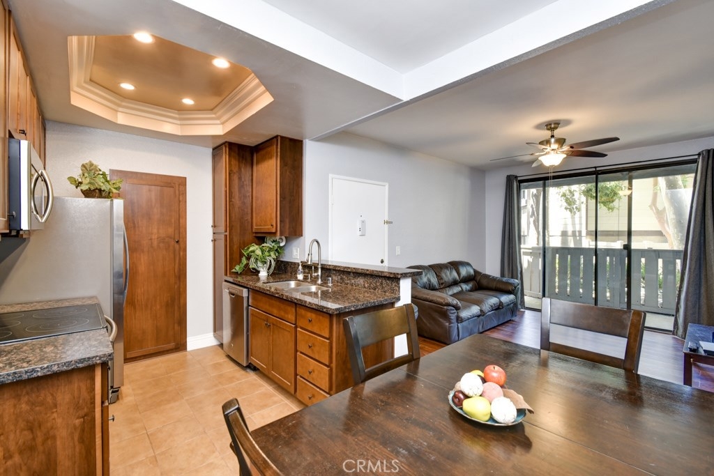 Fully upgraded home with a great end unit location, a large patio & one car garage. This beautiful condo features open floor plan, upgraded light fixtures, wide baseboards, scrapped ceilings, upgraded ceiling fans, interior custom paint, upgraded laminate and tile floors. Open Kitchen with upgraded cabinets, granite counter tops, custom ceiling with recess lighting, a breakfast bar, tile flooring, stainless steel appliances, sink and faucet. Spacious dining area & the living room are perfect for entertaining family & friends. Large master suite with walk-in & linen closets . Spacious walk-in closet with custom shelves. Remodeled bathroom with upgraded vanity,light fixtures, Mirror & toilet. Large private patio is perfect for relaxing and entertaining. Laundry closet located on patio. This condo is located in the Pheasant Creek complex with resort-like community amenities; lush walking paths, streams, ponds, pools,Tennis & basketball courts. Homeowner association pays for water, trash & outside maintenance. Low taxes. Close to schools, shopping, parks, Saddleback Church, Irvine Spectrum, Walking/biking trails and Sports Park! REFRIGERATOR,WASHER & DRYER INCLUDED!( Building # 23) This won't last!