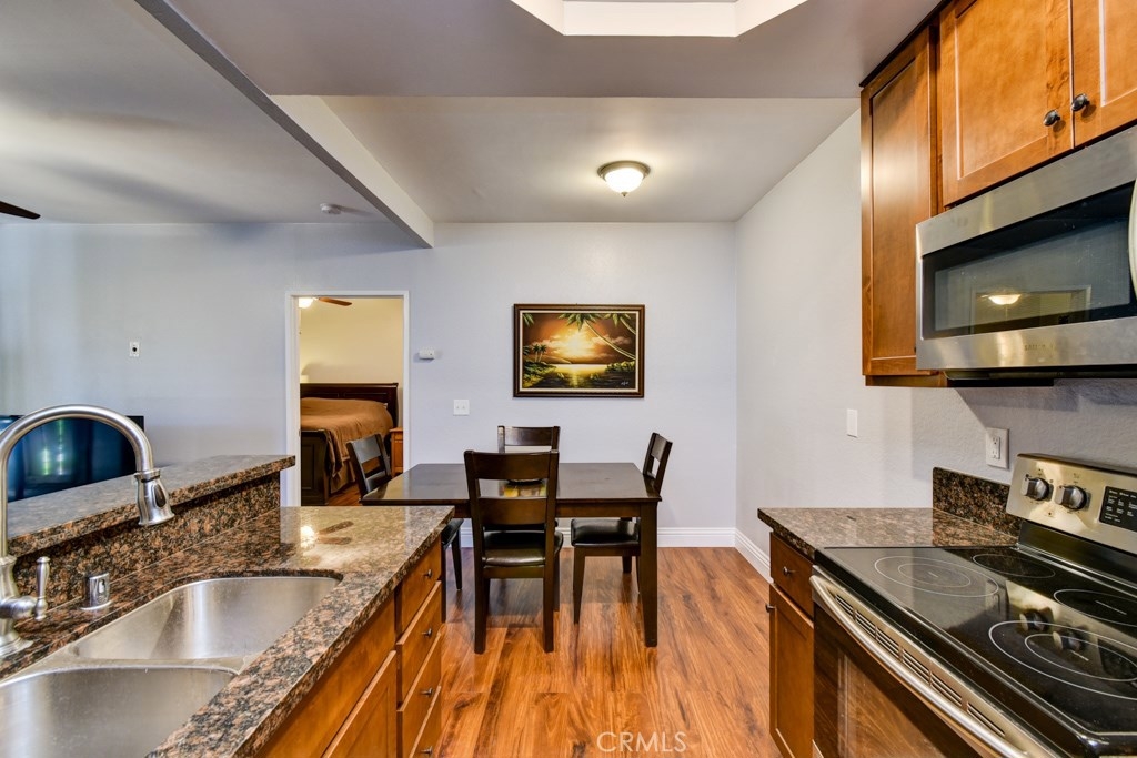 Fully upgraded home with a great end unit location, a large patio & one car garage. This beautiful condo features open floor plan, upgraded light fixtures, wide baseboards, scrapped ceilings, upgraded ceiling fans, interior custom paint, upgraded laminate and tile floors. Open Kitchen with upgraded cabinets, granite counter tops, custom ceiling with recess lighting, a breakfast bar, tile flooring, stainless steel appliances, sink and faucet. Spacious dining area & the living room are perfect for entertaining family & friends. Large master suite with walk-in & linen closets . Spacious walk-in closet with custom shelves. Remodeled bathroom with upgraded vanity,light fixtures, Mirror & toilet. Large private patio is perfect for relaxing and entertaining. Laundry closet located on patio. This condo is located in the Pheasant Creek complex with resort-like community amenities; lush walking paths, streams, ponds, pools,Tennis & basketball courts. Homeowner association pays for water, trash & outside maintenance. Low taxes. Close to schools, shopping, parks, Saddleback Church, Irvine Spectrum, Walking/biking trails and Sports Park! REFRIGERATOR,WASHER & DRYER INCLUDED!( Building # 23) This won't last!
