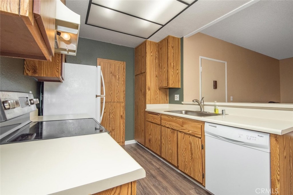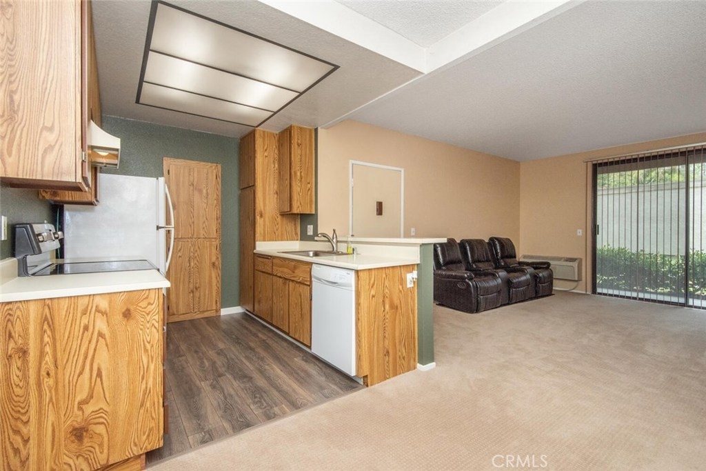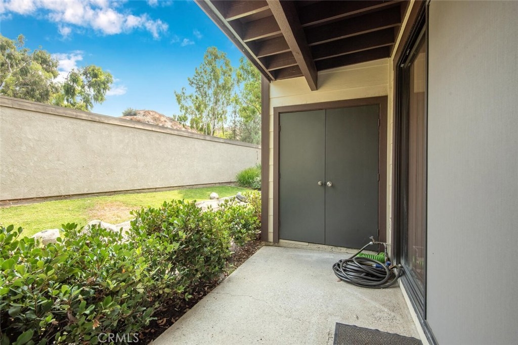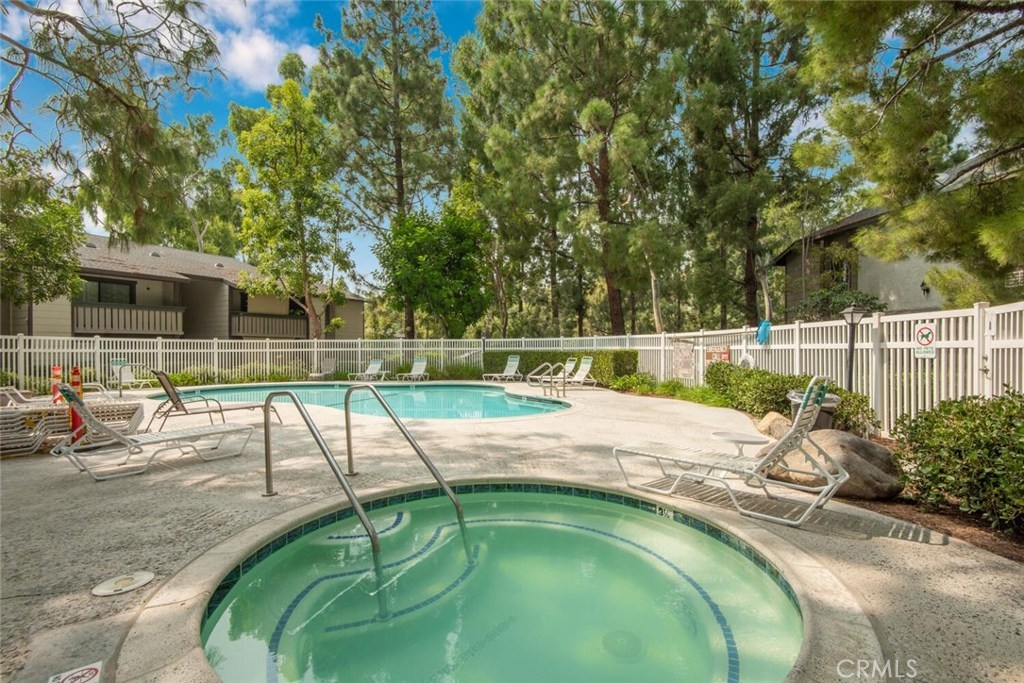 This move in ready 1 bedroom Ground Floor Unit (w/no steps) is located in the Beautiful Pheasant Creek Condo Complex...The grounds have a relaxing calm atmosphere and are filled with lush trees, ponds and creeks. Great features include an Open Concept Living Room, Dining Area w/ceiling fan & Kitchen (Refrigerator Included) new stainless steel sink & new garbage disposal, dishwasher & ceiling fan. Large Master Bedroom w/ceiling fan, walk-in closet, built-in linen cabinet, bath w/shower. Wall AC/Heater unit. Patio closet has full size washer & dryer (included). Patio has a soothing bubbling creek running in front of it & views of rolling hills. Comes with a 1 car garage with built-in shelving located close to the unit and 1 guest parking permit. Resort-like community amenities include; walking paths, streams throughout, ponds, 4 pools, lighted Tennis Courts & Basketball court. Located close to Toll Road, dining, shopping, churches & recreation. Association pays for water, trash, and outside maintenance. No mello-roos. Furniture in unit can be purchased.