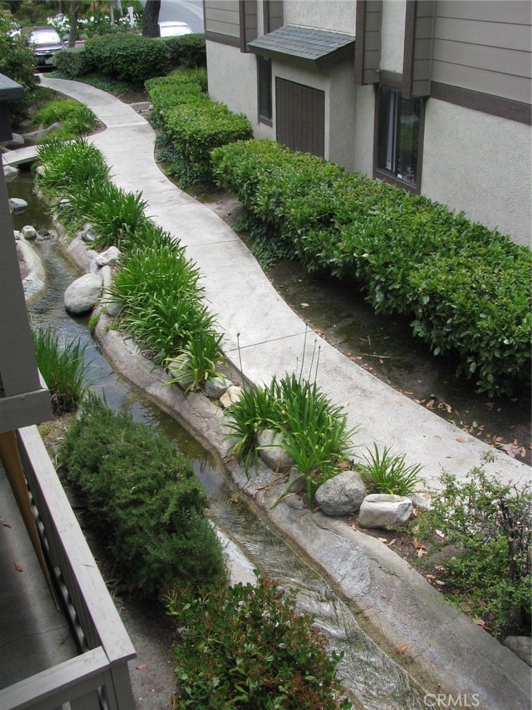 Mint Condition upper level unit with trees. privacy and streams with view of ducks from the large balcony, located at the upper side of complex. Very quiet. Open floor plan with Custom Paint throughout, Kitchen with built ins, granite counters, including Refrigerator, Tile floor, Dining area adjacent/ Ceiling Fan, Living room with Vaulted ceiling, Fan, Laminate flooring leading to sliding door and balcony for relaxing / washer and dryer hook ups available ! Both Bedrooms with ceiling Fans , Bathrooms with Tile Floors in Upgraded condition .One car garage with one assigned parking. The association does provide swimming pools. tennis courts which includes water, trash and landscaping ! This is an Immaculate unit and ready for occupancy !! Please see remarks for showing !!!