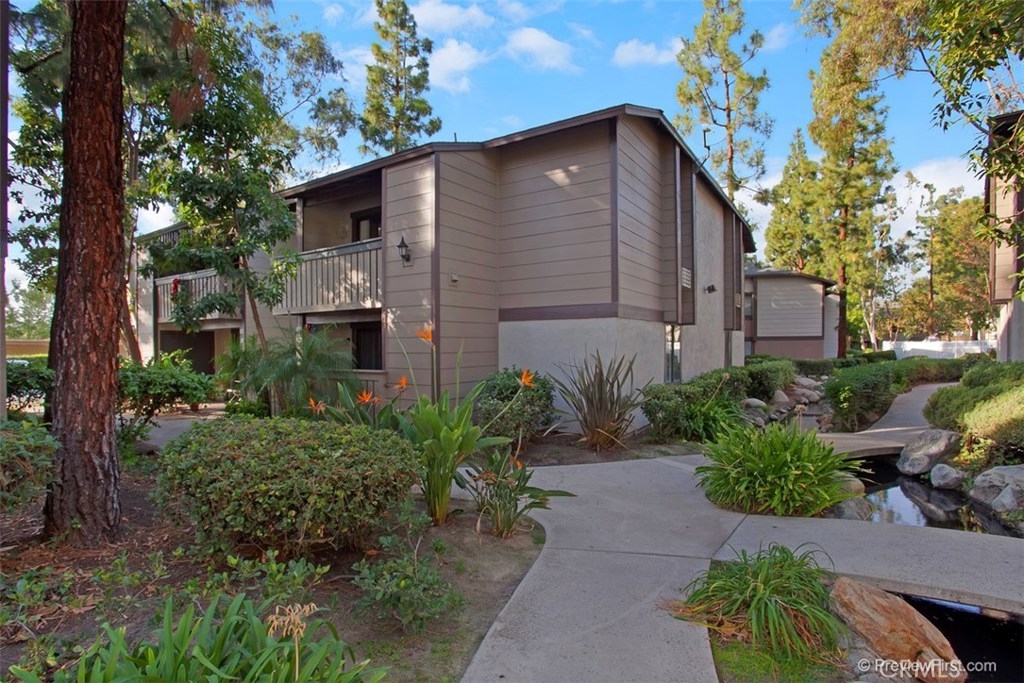 Upgraded Lake Forest upper level unit with one bedroom, one bath, balcony with laundry closet. Upgrades include: Laminate floors and newer paint throughout, newer sink, and counter tops in the kitchen, newer baseboards, newer vanity, mirror, tile, and shower door. Newer door installed in the bedroom. This condo includes a 1 car detached garage. Pheasant Creek has recently been re-paneled and painted on the exterior. Association offers a pool, spa, and sport court. Close to Toll Road. Watch VIRTUAL TOUR by clicking "VT" in the map frame.