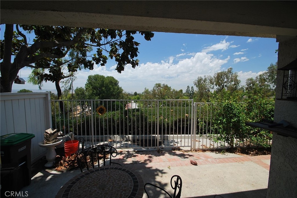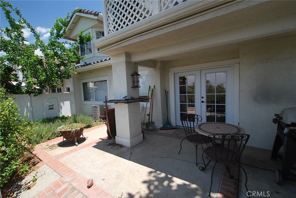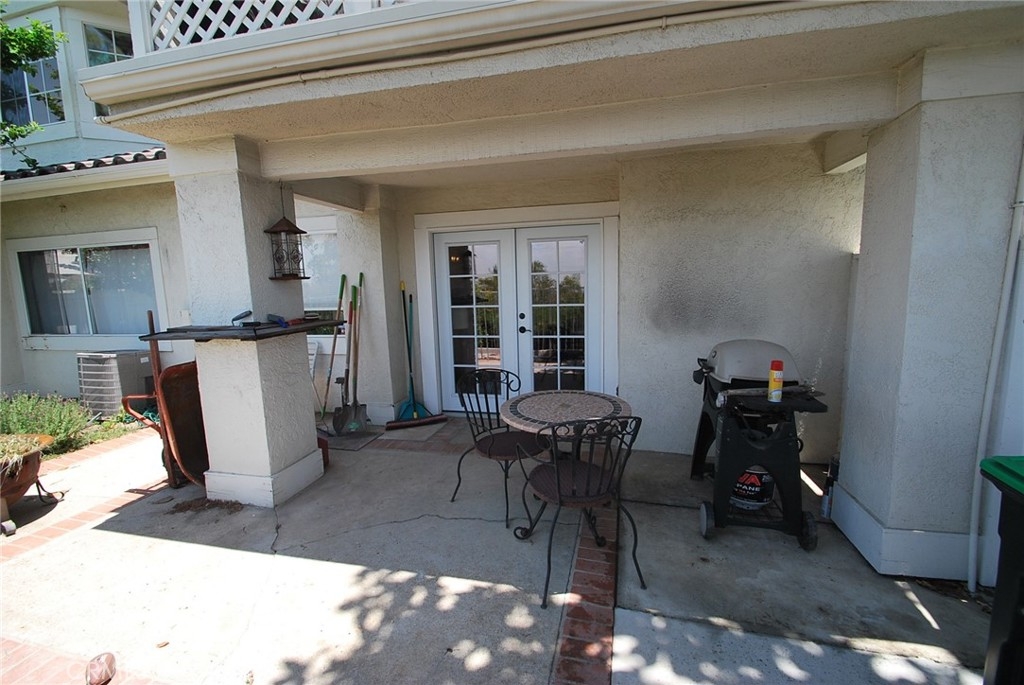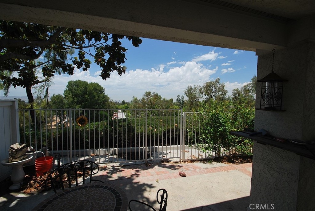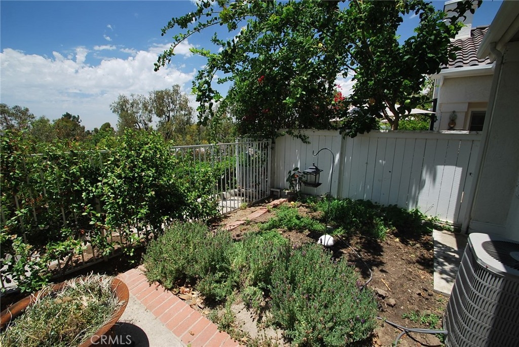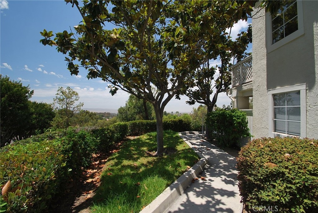 Beautiful city lights view condo in the desirable Willow Glen Serrano HOA. Rare single level, ground level condo with 2 bedrooms and 1.25 baths. Ideal location, end unit on a cul de sac. Nearby street parking plus an attached one car garage. Enter to a living room with a large sliding door and fabulous views to the south- see the Ferris wheel at the Irvine Spectrum in the far distance. The French doors lead to a large private patio with concrete slab deck and solid cover overhang. Plus a spacious private garden. Wrought iron fencing. Plenty of room for kids, pets, entertaining, and a barbecue grill. The dining room is next to the kitchen with a sit down bar. Built in microwave, dishwasher, gas range and oven. Down the hallway is access to indoor stacked laundry closet, 2 bedrooms, and direct garage access. Porcelain tile throughout the living areas and hallway. Paneled interior doors and smooth texture ceilings. The master suite has a private vanity area with sink and closet with mirrored sliding doors. From the vanity area a door opens to the full bathroom. Newer marble counter tops and white cabinets. The full bath can be accessed by guests without interruption to the master bedroom. Both bedrooms have city lights views and views to the back yard. HOA dues are $345 per month. Other dues bump up the monthly to appx $400 total. Includes fire insurance, exterior maintenance, community pool and spa, 4 tennis courts. You have access to the San Remo recreation center featuring a baseball diamond. Down the hill a short 2 minute drive to Peachwood Park. At the top of the complex are access to miles of hiking trails. Enjoy award winning schools and the good life that Lake Forest offers!