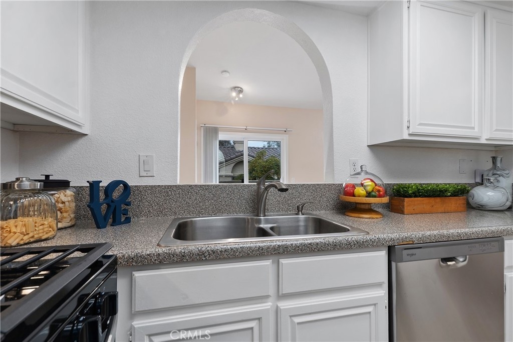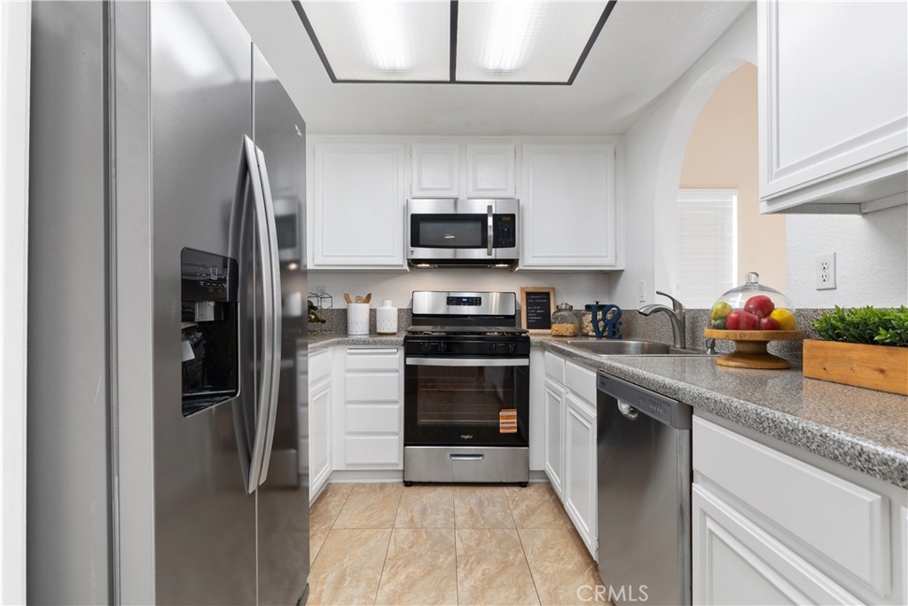 Welcome home to this bright and inviting home in the highly sought-after Vista Del Flores community. Filled with natural light and warm finishes, this end-unit offers the perfect blend of comfort, style, and convenience. Step into an open living space with high ceilings, laminate wood floors, and a cozy fireplace perfect for everyday relaxation. Large windows and a private balcony bring in peaceful greenbelt views, creating an ideal spot for morning coffee or evening unwinding. The kitchen features white cabinetry and all-new stainless steel appliances. The primary suite offers crown molding, neutral tones, and an impressive walk-in closet with custom storage. The second bedroom is generously sized with its own full bath. Great for guests, family, or a home office. Direct-access 2-car garage with plenty of storage and a washer and dryer. The community offers a pool, parks, and lush walking paths. Close proximity to shopping, dining, and top-rated schools. Move-in ready and well-maintained.