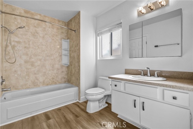 Discover this highly sought-after condo in the charming Vista Del Flores community of Lake Forest! This home features soaring vaulted ceilings, an open-concept layout, and a private balcony with serene greenbelt views. Enter from the ground-level 1-car garage with direct access and in-unit laundry. Upstairs, the sun-filled family room boasts plantation shutters, a tiled fireplace, and fresh vinyl flooring—plus, no one lives above or below for added tranquility. The kitchen impresses with stainless steel appliances, quartz countertops, and crisp white cabinetry. Retreat to the spacious master suite with double-door entry, mirrored closets with organizers, and an ensuite bathroom with tub/shower combo. Vista Del Flores offers beautifully maintained grounds, a sparkling pool, spa, park, and is close to top-rated schools, shopping, and dining.