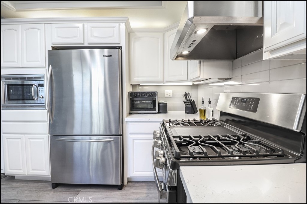 EXCEPTIONAL END UNIT TWO-STORY TOWNHOUSE STYE FLOOR PLAN PERFECTLY LOCATED ON THE PERIMETER WITH DRAMATIC SUNSET VIEWS! Spacious end unit floor plan offering a gated courtyard with tastefully landscaped planters. Large foyer leading to the spacious living room with two-story ceilings, fireplace and dining room with glass sliding door to the large patio with planters and plenty of outdoor space to enjoy the views and privacy of this amazing property. Awesome kitchen has been completely remodeled with designer cabinets, Quartz countertops, farmhouse sink, designer faucet and backsplash, stainless steel appliances including the high end exposed hood, recessed lighting and a large breakfast nook. Upgraded flooring and baseboards, upgraded dual glazed windows and sliding door, custom plantation shutters, upgraded HVAC system, added/upgraded lighting fixtures, bathrooms with upgraded Quartz countertops and upgraded fixtures including the master bathroom featuring a large vanity with dual sinks, upgraded Quartz countertop, totally remodeled walk-in shower with designer tile, frameless glass enclosure and upgraded fixtures. Oversized two-car attached garage with plenty of room for storage and an amazing end unit location, nearby parks and recreation and resort style community pool, spa, tennis, basketball, clubhouse, ..excellent proximity to shopping, easy freeway access to 5 and 405 via Bake Parkway and nearby hiking and nature trails!