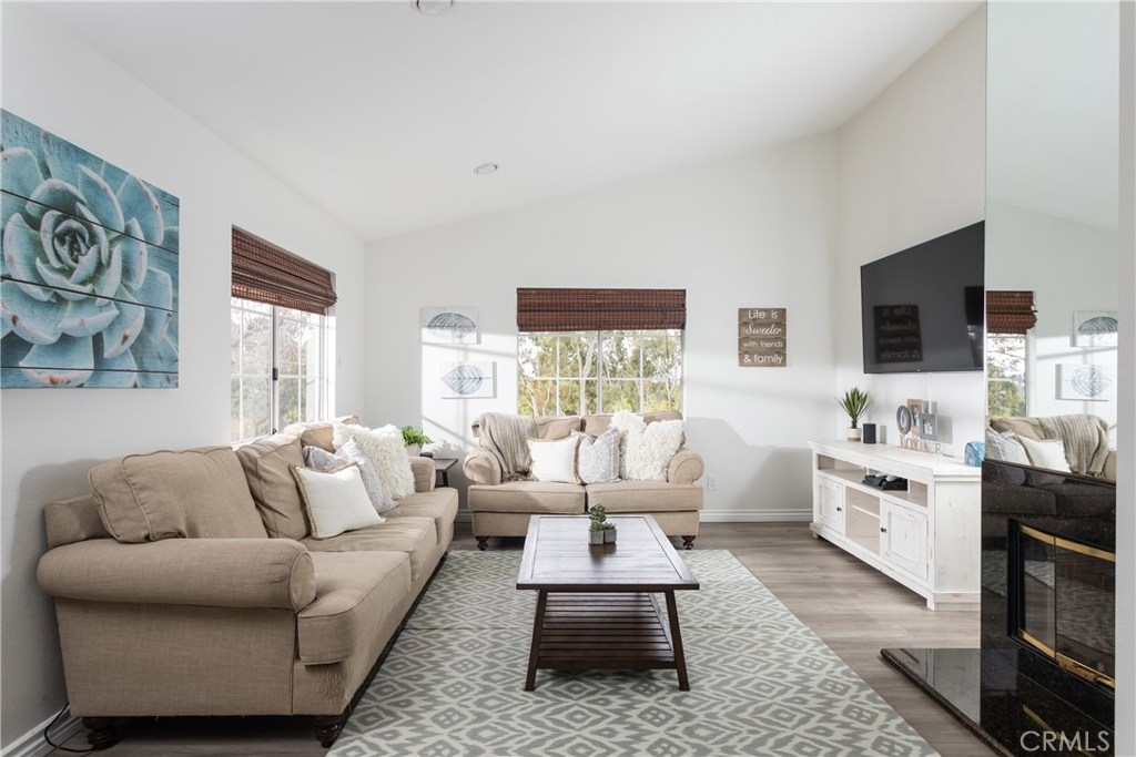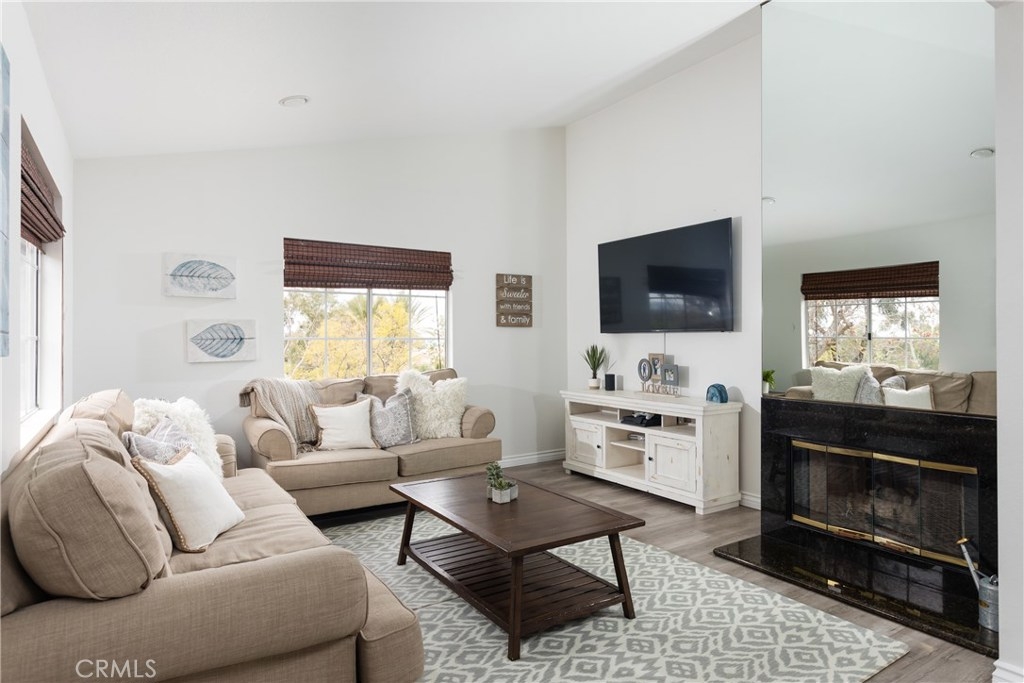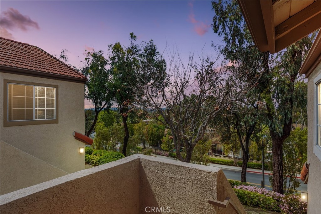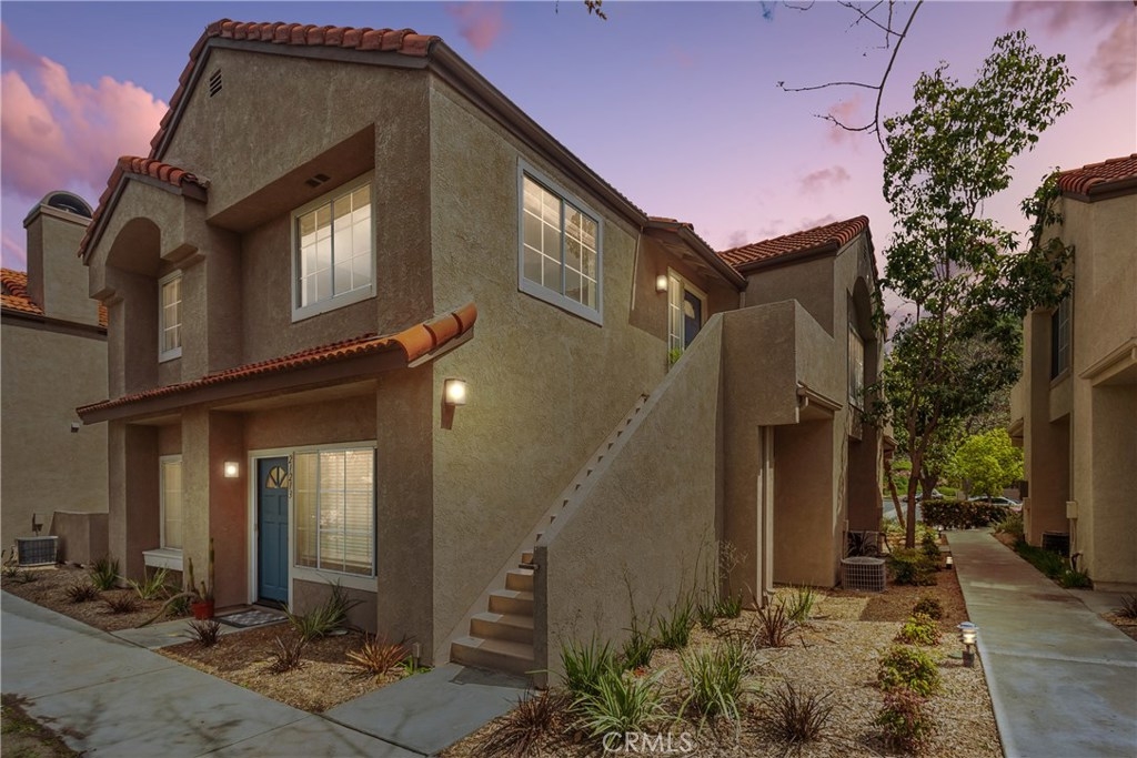 Magnificent corner unit with the most stunning views in the complex! Enter through the front door and notice the vaulted ceilings as you embrace the attractive living room. Relax in front of the fireplace that is highlighted with black granite and relish the serene views through the large windows off the living room. Make your way to the updated kitchen that also bolsters a sleek black granite counter top finish. Supplementing this updated kitchen is the charming breakfast nook that adds to this functional open floorplan. Through the corridor you find the stacked washer and dryer tucked away behind a closet. To your left is the second bedroom. The large window yields a light and airy feel while the room is elegantly finished with recessed lighting. The tastefully upgraded guest bathroom is just right outside this bedroom. At the end of the corridor you step into the master bedroom, boasting large, dual-mirrored closet doors. Next step into the updated appointed en-suite master bathroom. Adding additional charm to this master bedroom is your private balcony, which offers dual closet space for storage. Association amenities within the complex are the in-ground spa, kids play area, and paid water and trash services. No mello-roos and low property taxes top off this comfortable living space. Welcome home to your new private haven!