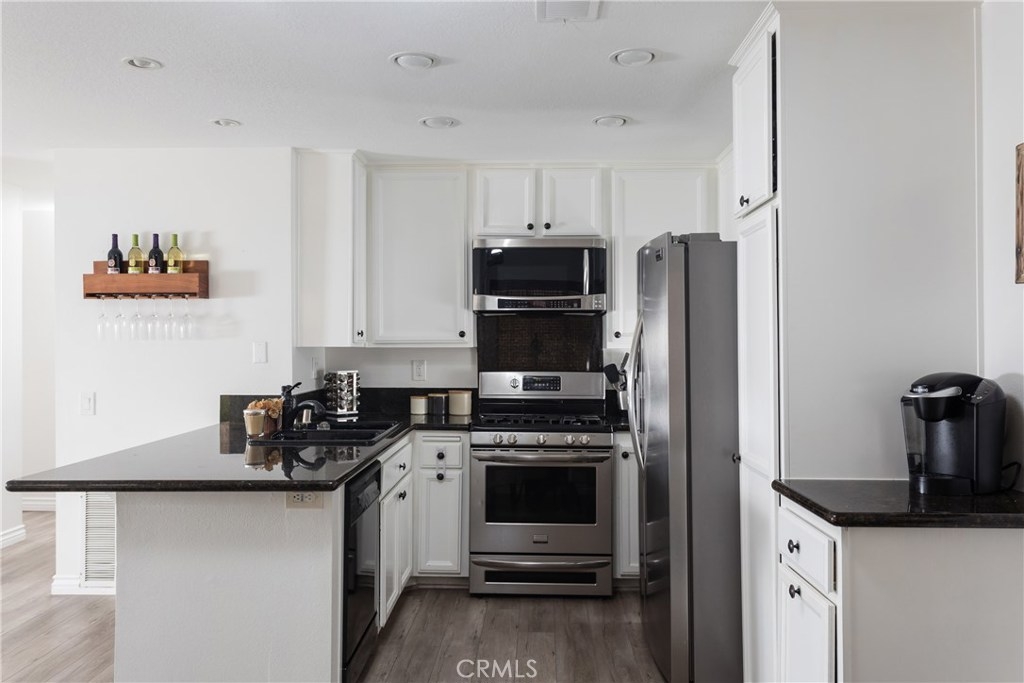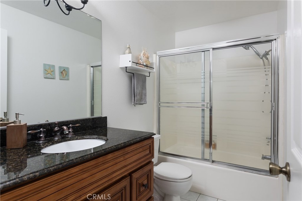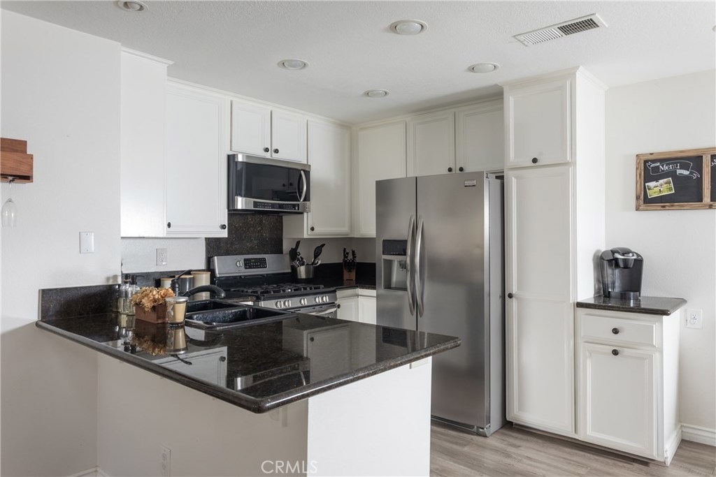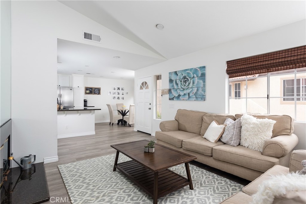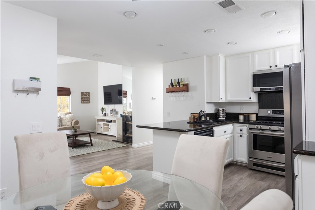 Magnificent corner unit with the most stunning views in the complex! Enter through the front door and notice the vaulted ceilings as you embrace the attractive living room. Relax in front of the fireplace that is highlighted with black granite and relish the serene views through the large windows off the living room. Make your way to the updated kitchen that also bolsters a sleek black granite counter top finish. Supplementing this updated kitchen is the charming breakfast nook that adds to this functional open floorplan. Through the corridor you find the stacked washer and dryer tucked away behind a closet. To your left is the second bedroom. The large window yields a light and airy feel while the room is elegantly finished with recessed lighting. The tastefully upgraded guest bathroom is just right outside this bedroom. At the end of the corridor you step into the master bedroom, boasting large, dual-mirrored closet doors. Next step into the updated appointed en-suite master bathroom. Adding additional charm to this master bedroom is your private balcony, which offers dual closet space for storage. Association amenities within the complex are the in-ground spa, kids play area, and paid water and trash services. No mello-roos and low property taxes top off this comfortable living space. Welcome home to your new private haven!