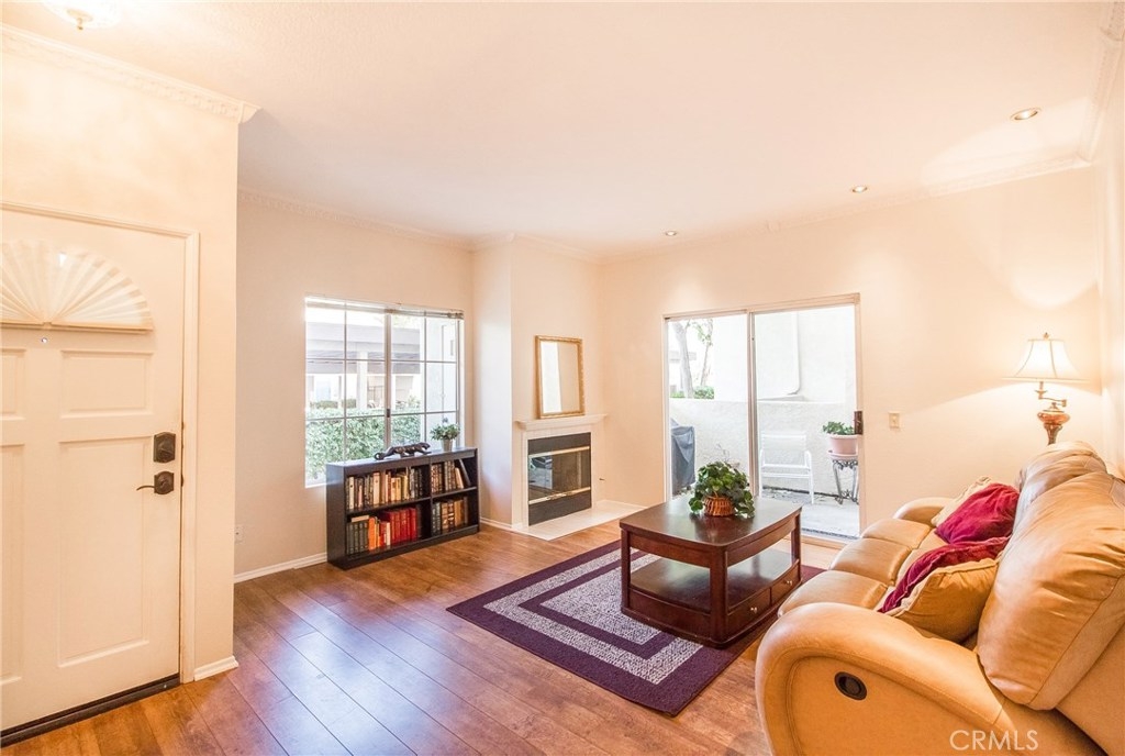 Best location!!! This innovative "Smart Home" has a coded entry, a smart thermostat that learns your temperature preferences and can be controlled remotely so your place is just perfect when you get home, plus a doorbell with camera for security monitoring while at home or away. Cute enclosed entry with an east facing green door for "feng shui" harmony. These contemporary designed 1-bedroom open floor plans on a lower level with 9 ft. ceilings rarely come on the market. The living room sliding door maximizes space by opening up to outdoor living on the patio with space for a BB-Que. Features include a gas or log fireplace, AC, custom crown molding, laminate flooring, ceramic tile, mini blinds, mirrored wardrobe closet, a breakfast bar and oak cabinets. Newer LG Energy Star washer & dryer stays, along with a microwave & refrigerator. First American Home Premier Warranty included. The home is even wheel chair accessible! Covered carport parking, #19, is steps away along with 2nd unassigned parking space, guest parking, handicap parking and a ramp nearby. Unique HOA with only 76 units is perched in the gently rolling foot hills of Saddleback Mountain! Serene with a walking trail, yet close to schools, best parks, the Irvine Spectrum, and easy access to the 405/5 frwy. Adjacent to Irvine, no mello roos and a low tax base.