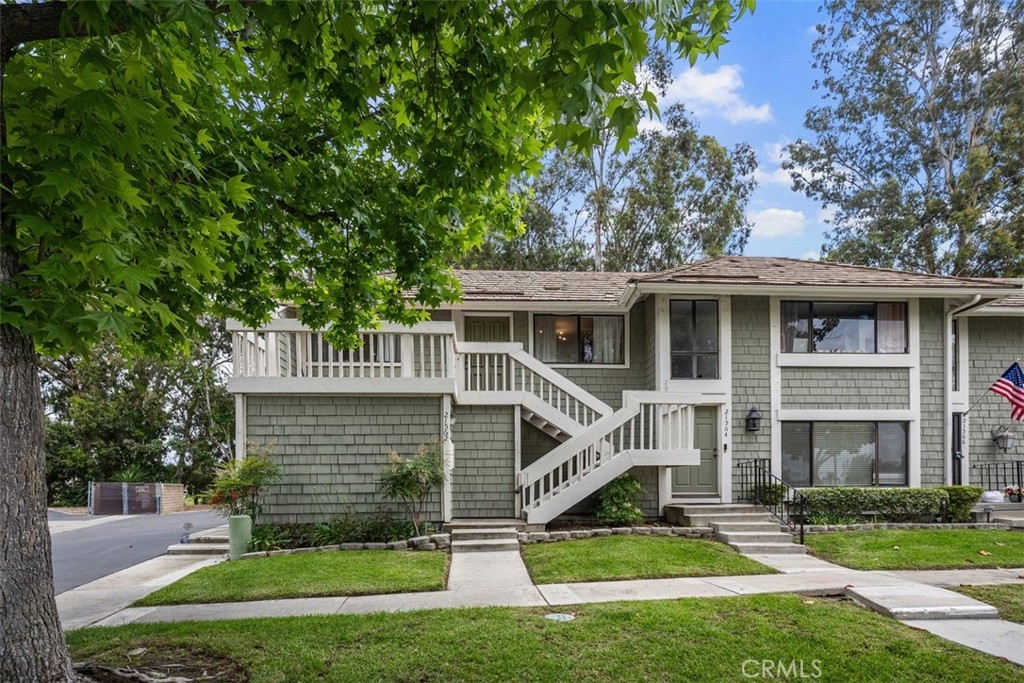 Fantastic private and quiet, end location! View of woods and trees! Completely upgraded. New decorator paint. New quality vinyl flooring thru out. New kitchen cabinets and quartz counter tops. New decorator lighting fixtures. Extended bar counter top. New stainless steel stove/oven and dishwasher. Stainless steel refrigerator (no warranty). Beautiful tree in front. End unit. No unit under or over. FHA and VA Approved Condo. Large open kitchen. Two bedrooms and one bath. Inside laundry. Attached garage. Beautiful Serrano Woods condo. View of trees and wooded area from upstairs bedroom windows. Enjoy the perks of living in Serrano Woods and the walking trails of Serrano Woods Park surrounded by mature Eucalyptus trees and flowing streams. Across from the Sun & Sail Club with elegant, large clubhouse, tennis courts, Pickleball courts, 34 acre lake, fishing, swimming pools, fitness center, numerous activities and holiday parties.. All the perks of a private country club! Located near walking trails of Serrano Creek Park with Eucalyptus trees and streams. Schools, shopping and restaurants close by.