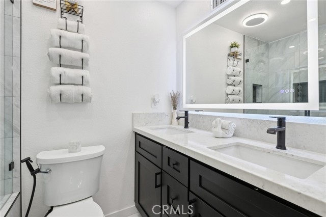 Welcome to 21711 Lake Vista Dr., a stunning TURN-KEY 4-bedroom, 2.5-bath home offering 1,608 square feet of perfection in the highly desirable Lakeside Park community of Lake Forest! This meticulously upgraded residence has been thoughtfully remodeled from top to bottom, making it truly move-in ready. The heart of the home features a completely remodeled kitchen with modern finishes, perfect for both everyday living and entertaining guests. Beautiful wood-style tile flooring flows throughout the downstairs living spaces, while newer laminate flooring adds warmth and style to the upper level. The home is bathed in natural light thanks to newer dual-pane windows, and modern recessed lighting has been installed on both floors to create the perfect ambiance. Elegant plantation shutters adorn the downstairs windows, adding a touch of sophistication. All bathrooms have been completely remodeled with beautiful, contemporary upgrades. The spacious primary suite is a true retreat, featuring a generous walk-in closet and a stunning en suite bathroom that has been completely remodeled with premium finishes. Step out onto your private balcony off the primary bedroom – the perfect spot for morning coffee or unwinding after a long day. Three additional well-sized bedrooms provide plenty of space for family, guests, or a home office. The full-size laundry room adds everyday convenience. This home has been extensively updated with modern systems for your complete peace of mind, including a newer AC system for year-round comfort, newer dual-pane windows for energy efficiency, a complete re-pipe of the entire home with PEX plumbing, a newer water heater, and newer bedroom doors throughout. The home does not have a garage but does have 2 covered parking spot right outside your back gate. Located in the coveted Lake Vista neighborhood within Lake Forest, you'll enjoy easy access to parks, scenic trails, top-rated schools, shopping, dining, and all the amenities this wonderful community has to offer. This is a rare opportunity to own a completely updated, move-in ready home in one of Orange County's most sought-after areas. Don't miss your chance to make this home your new address – schedule your private showing today!