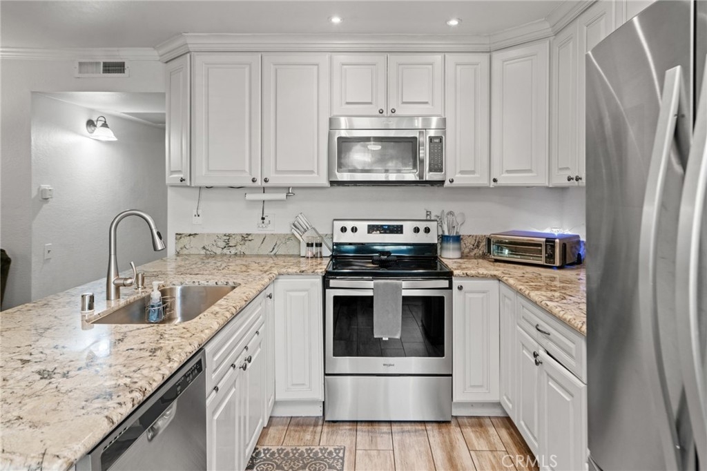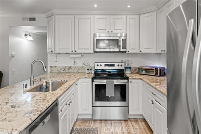Welcome to your new home at This updated and move-in ready two-bedroom, one-bathroom corner unit that offers plenty of privacy. Recently installed new dual pane windows, ceramic tile flooring throughout, and a private patio, you'll love the modern feel and ample natural light. Inside, you'll find open concept s living room and dining area that flow into the updated kitchen featuring Cortez countertops and stainless-steel appliances. And, with the convenience of a washer and dryer in-unit, laundry day just got a whole lot easier! The primary bedroom is generously sized and offers plenty of closet space with a built-in wall-to-wall closet for all your storage needs. The second bedroom as a sliding glass door that leads to the patio. The updated bathroom features modern finishes and a shower/tub combo. The complex is well-maintained and offers plenty of amenities and is next to Rimgate Park. Don't miss out on this amazing opportunity to own a beautifully updated home in the heart of Lake Forest. Schedule a tour today! All utilities except electric are paid as part of the HOA fee, UNIT E