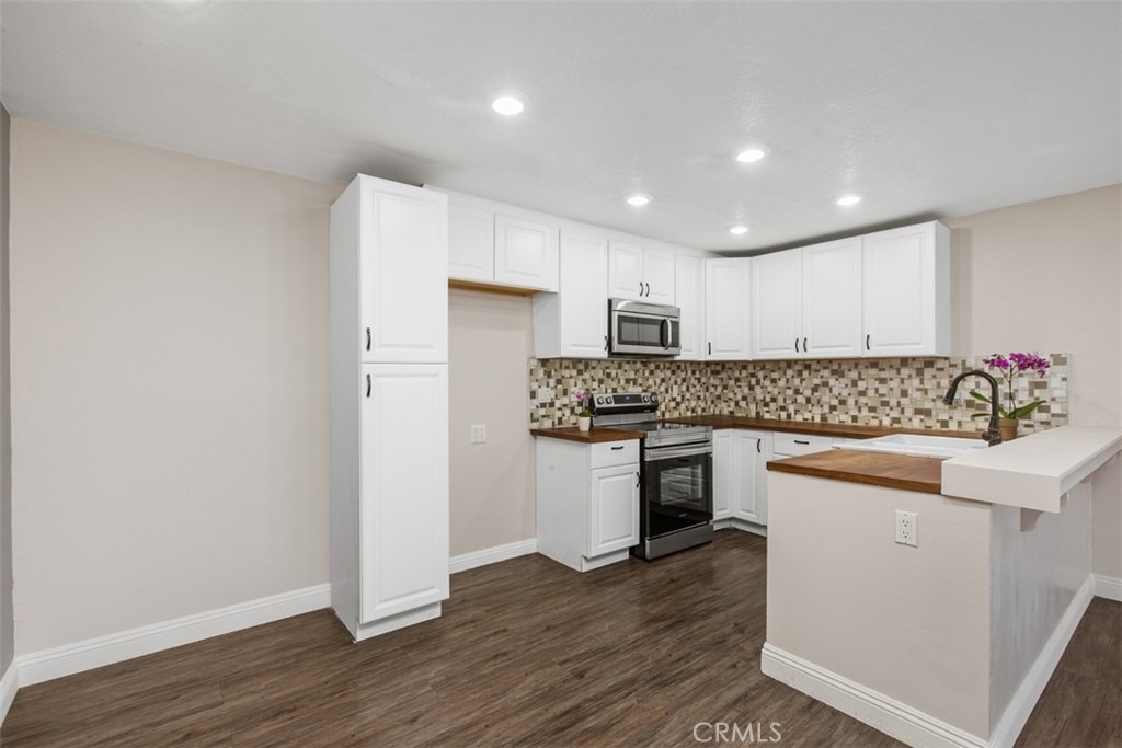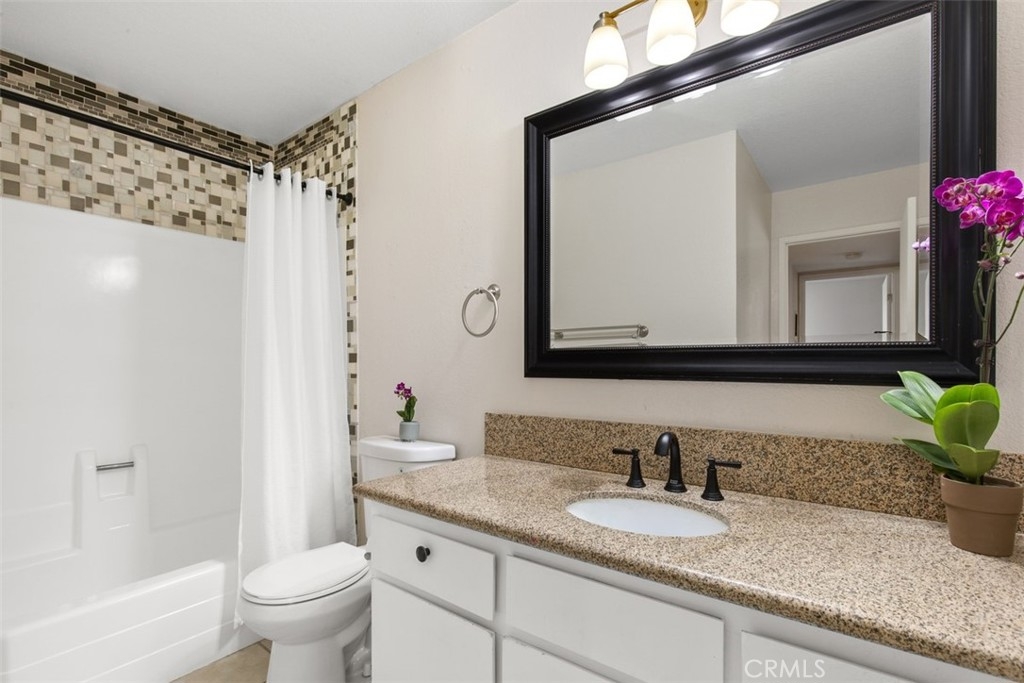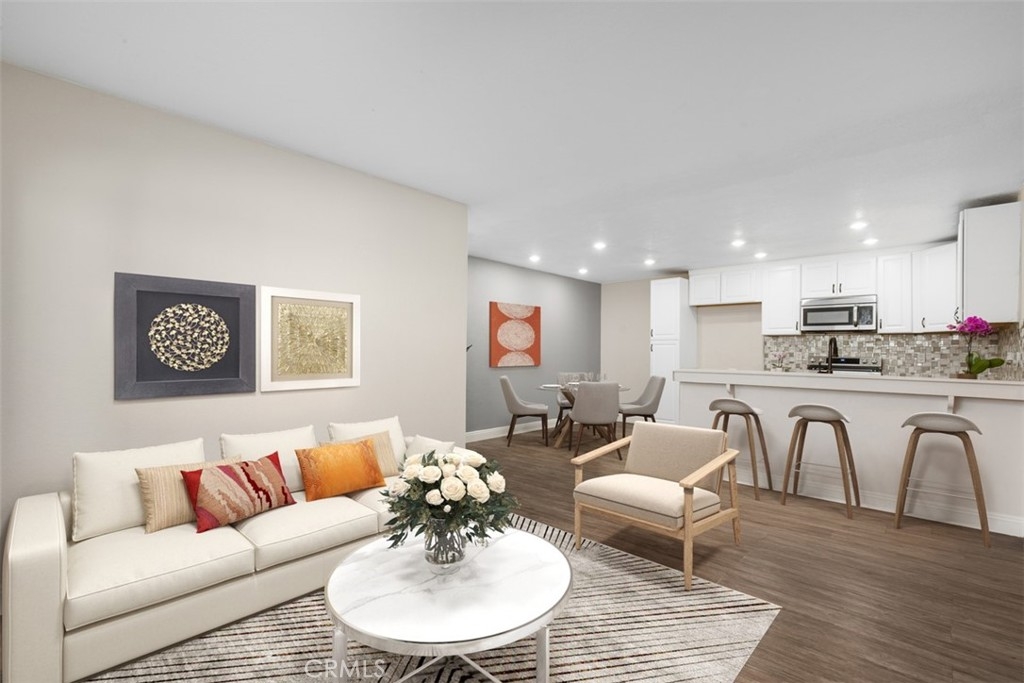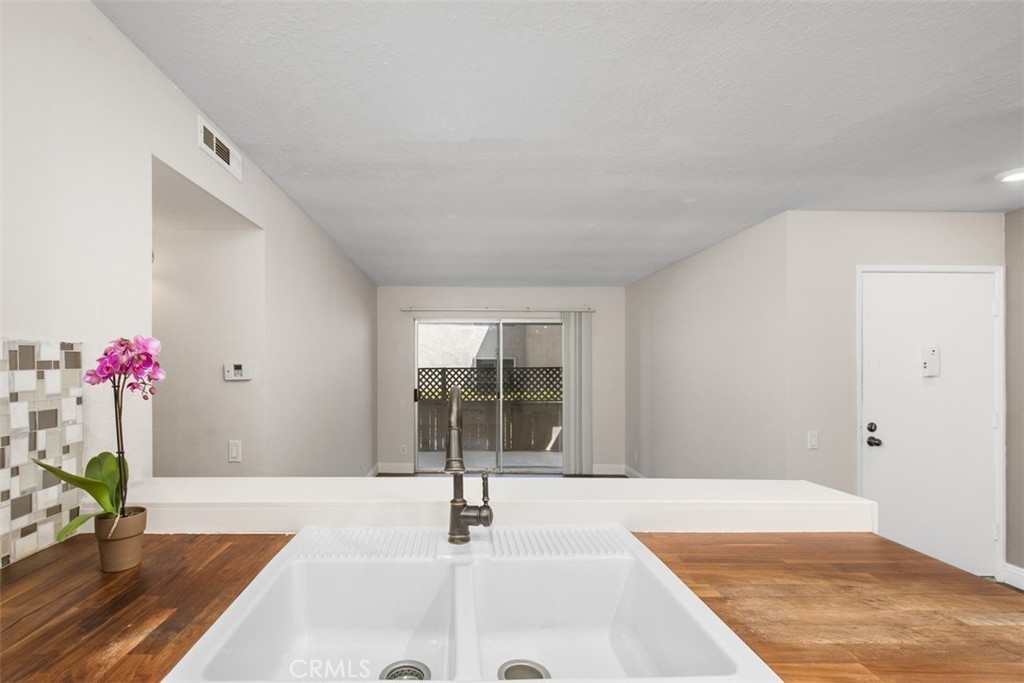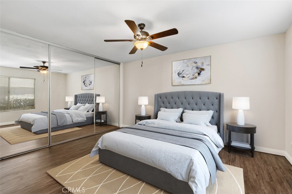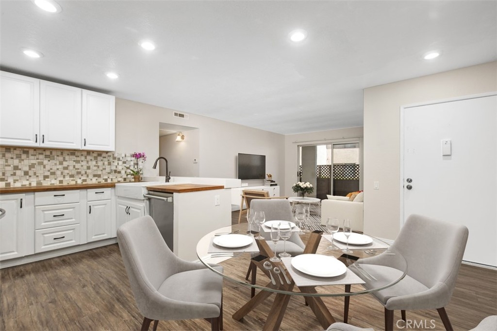 This condo qualifies for $10,000 Buyer credit or Zero down. Contact me for more information. NOT a 55+ community. This beautifully remodeled/upgraded condo is in the heart of Lake Forest. This home is on the first level and so peaceful. You are greeted by this light and airy open concept that seamlessly connects the living room, dining room, and kitchen together for a modern feel. Refrigerator is included! You have luxury laminate flooring, canned lights in the kitchen & Dinning area, AC units in the Primary room and the Living room, Butcher Block counter tops, newer Faucet, stainless steel appliances, microwave, New Stove, newer cabinets, newer backsplash, New Refrigerator, Viking Dishwasher, Farm House style sink. Both of the bedrooms you have new vinyl flooring. The sliding doors and window fills the space with natural light. The Primary bedroom has wall to wall closet space. The sliding doors from the living room and secondary bedroom each have access to the sizable balcony with the sliding door and there is a large storage closet. You have The Rimgate Park that is next to the complex. Offering ultimate convenience with the in-unit laundry space for a washer and dryer in the large hallway closet with plenty of space for linens and additional storage. This home has been updated for your leisure and comfort in this well maintained desirable community of Bench Mark Villas. Convenience is key with easy parking for your guests withing the community. This LOW HOA pays for TRASH & WATER! You have nearby these amenities of Rimgate Park with a playground, basketball courts, tennis courts, and volleyball all surrounded by the grassy area for picnics, games and just having fun and enjoy the peaceful area. There are walking rails nearby. Close by are restaurants, shopping, stores, grocery stores, fast food, take out, movie theaters, The Spectrum, schools, 5 & 405 freeways to the toll road and Orange County Airport, South Coast Plaza, The Great Park, Laguna Beach and a short drive to the World Famous Beaches in San Clemente and Dana Point. Location, Location, Location! Don't let this opportunity pass you by to own one of the best situated units in the community approved for FHA & VA financing. Schedule a showing Today and experience the serene charm of this Lake Forest Gem! I have digitally staged photos for the Primary bedroom, Living room and the Dining room. ** There is currently a re-pipe project in progess in the community**