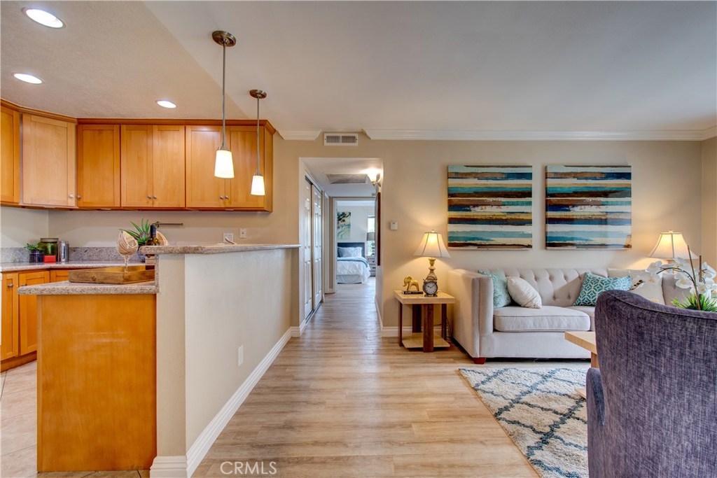 This is a fantastic ground level end unit. The open floor plan features a spacious living room, dining area, inside laundry, and a remodeled kitchen with granite counter tops, recessed lighting, and a breakfast bar. Upgrades include crown molding, six panel doors, decorative baseboards, mirror closet doors, re-textured ceilings, and water resistant vinyl flooring. The Bench Mark Villas has a tot lot and direct access to Rimgate Park that includes tennis and basketball courts, playground, and picnic areas. This unit has two parking permits and there is plenty of street parking for guests on the nearby street. The HOA fee includes water and trash. This community is centrally located close to schools, shopping, and restaurants.