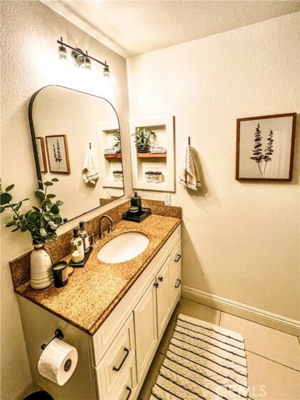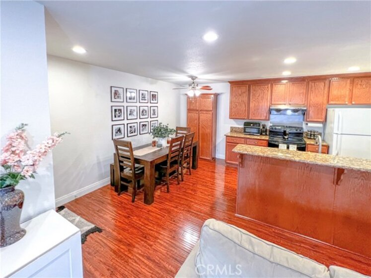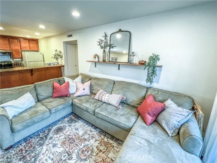 Perfect starter home in the highly desirable Bench Mark Villas community! Spacious floor plan with tons of natural light. Large open kitchen, dining room and living room with sliding glass door leading to a private balcony with storage closet. Kitchen features granite peninsula bar with room for barstools, ample storage, pantry and new dishwasher. Large double doors open to the generously sized primary bedroom. Bathroom features new fixtures and open shelving. Ultra convenient closet laundry with newer stacked washer & dryer and plenty of storage space. Adjacent to Rimgate Park, this quiet and pet friendly neighborhood features tennis & basketball courts, playgrounds and picnic areas and the beautiful green space of El Toro Memorial Park. Located conveniently near schools, shopping and freeway access.